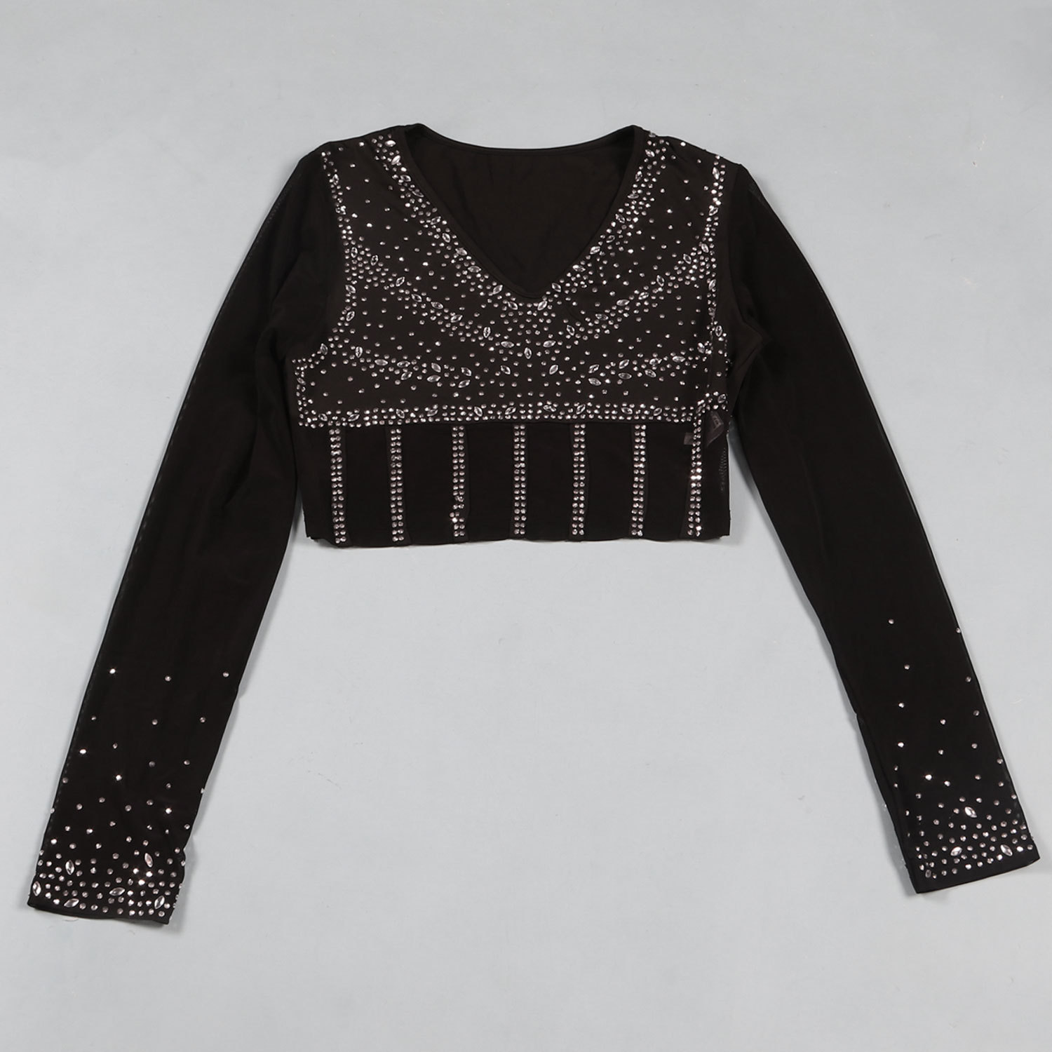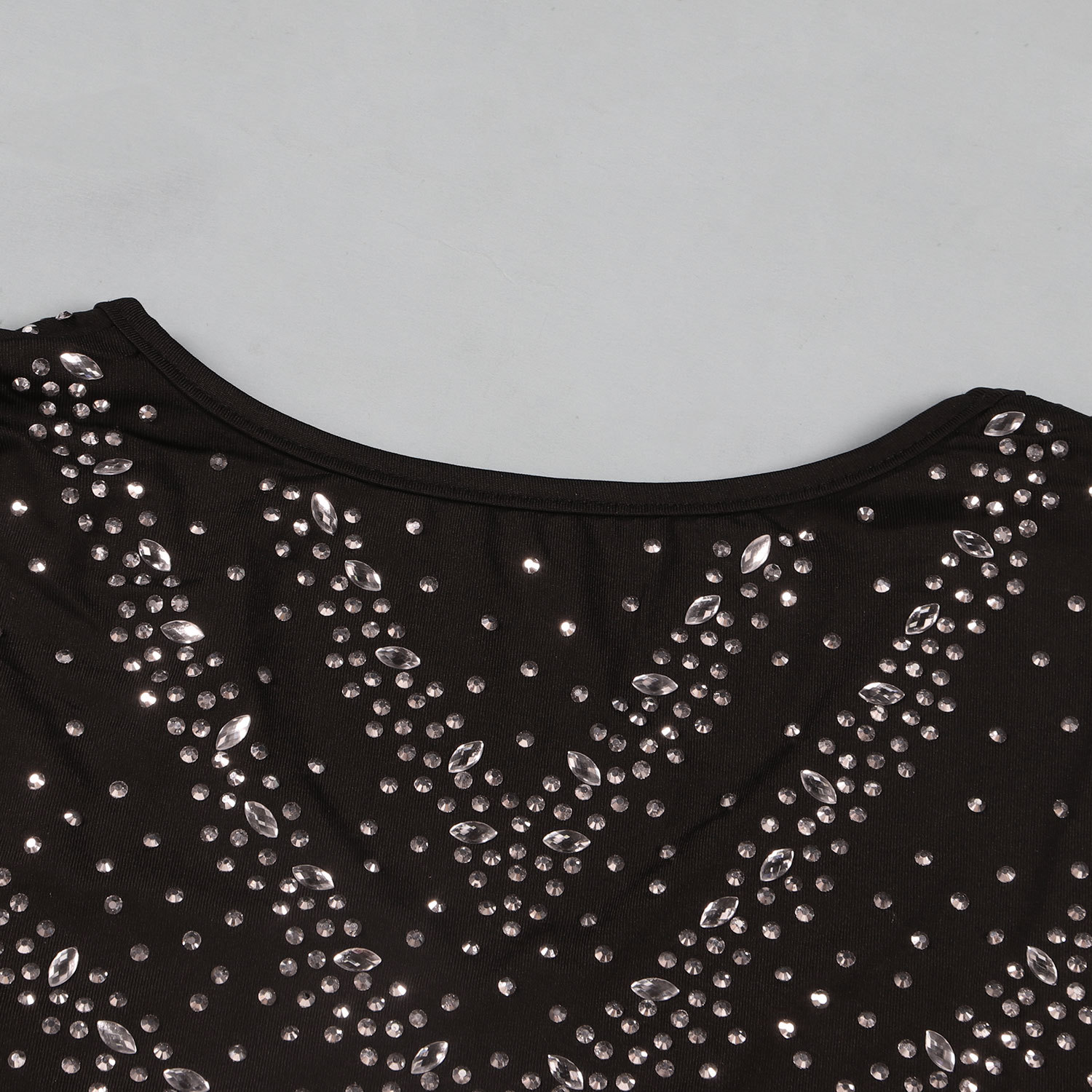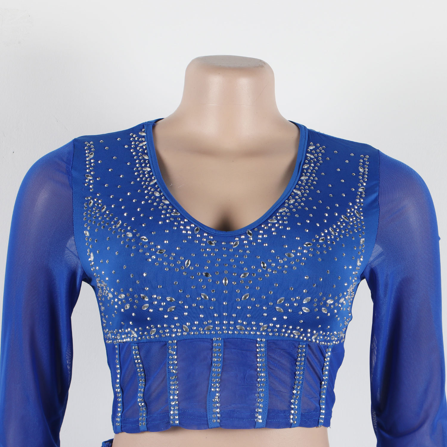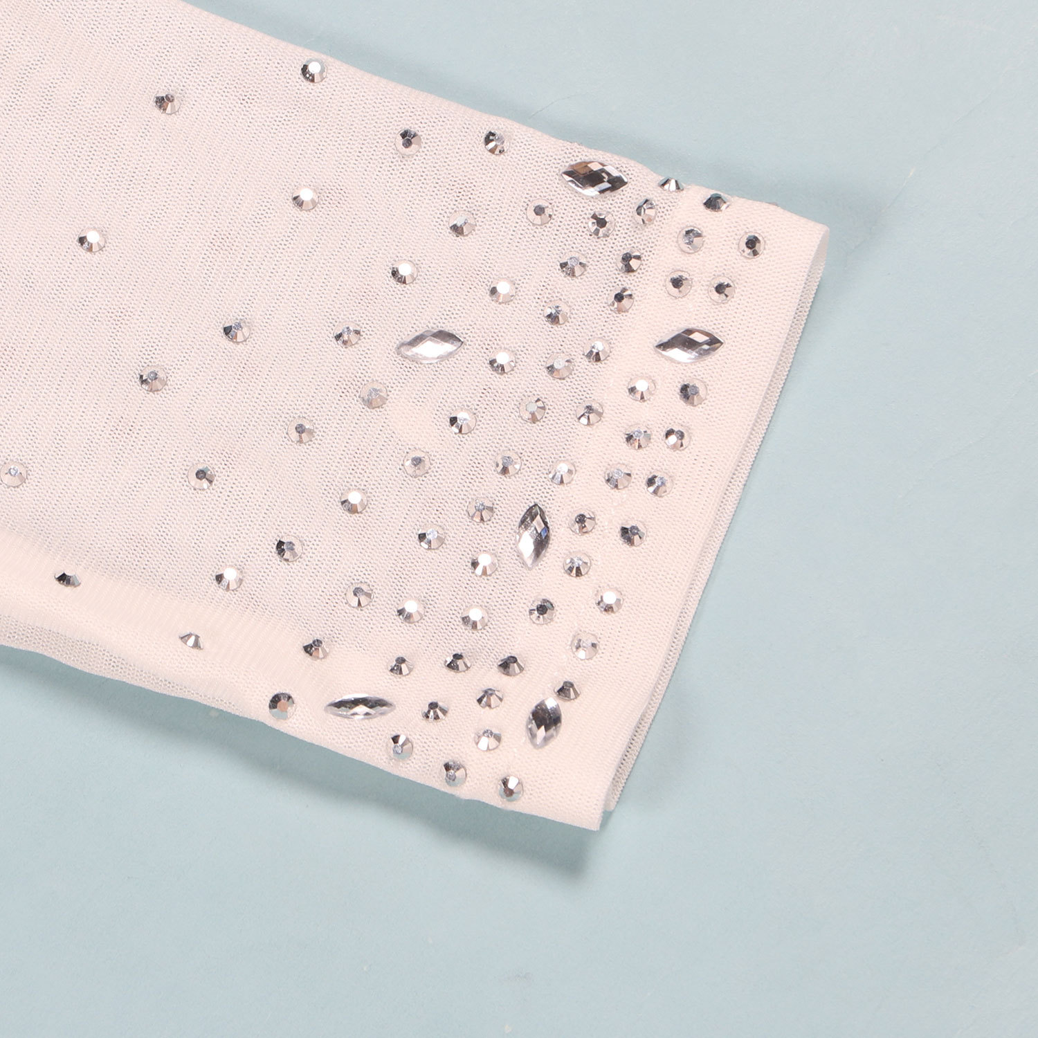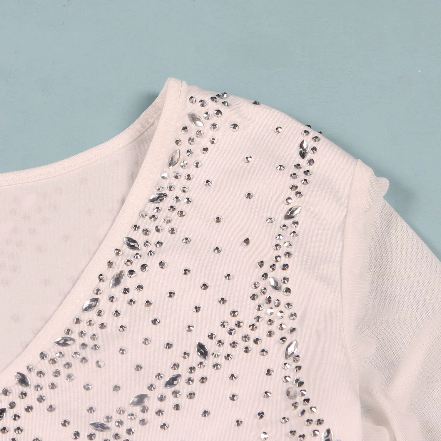 CM.YAYA Sexy Party Women’s Set Mesh Long Sleeve Dimonds Hot Drill Tee Top + Tassel Shortst 2023 Two 2 Piece Set Outfit Tracksuit