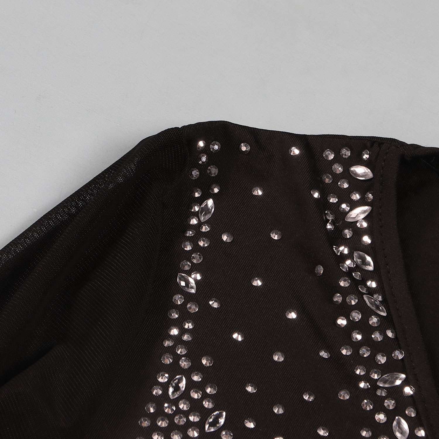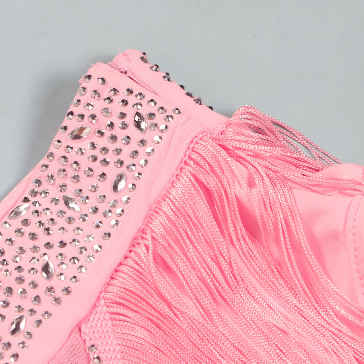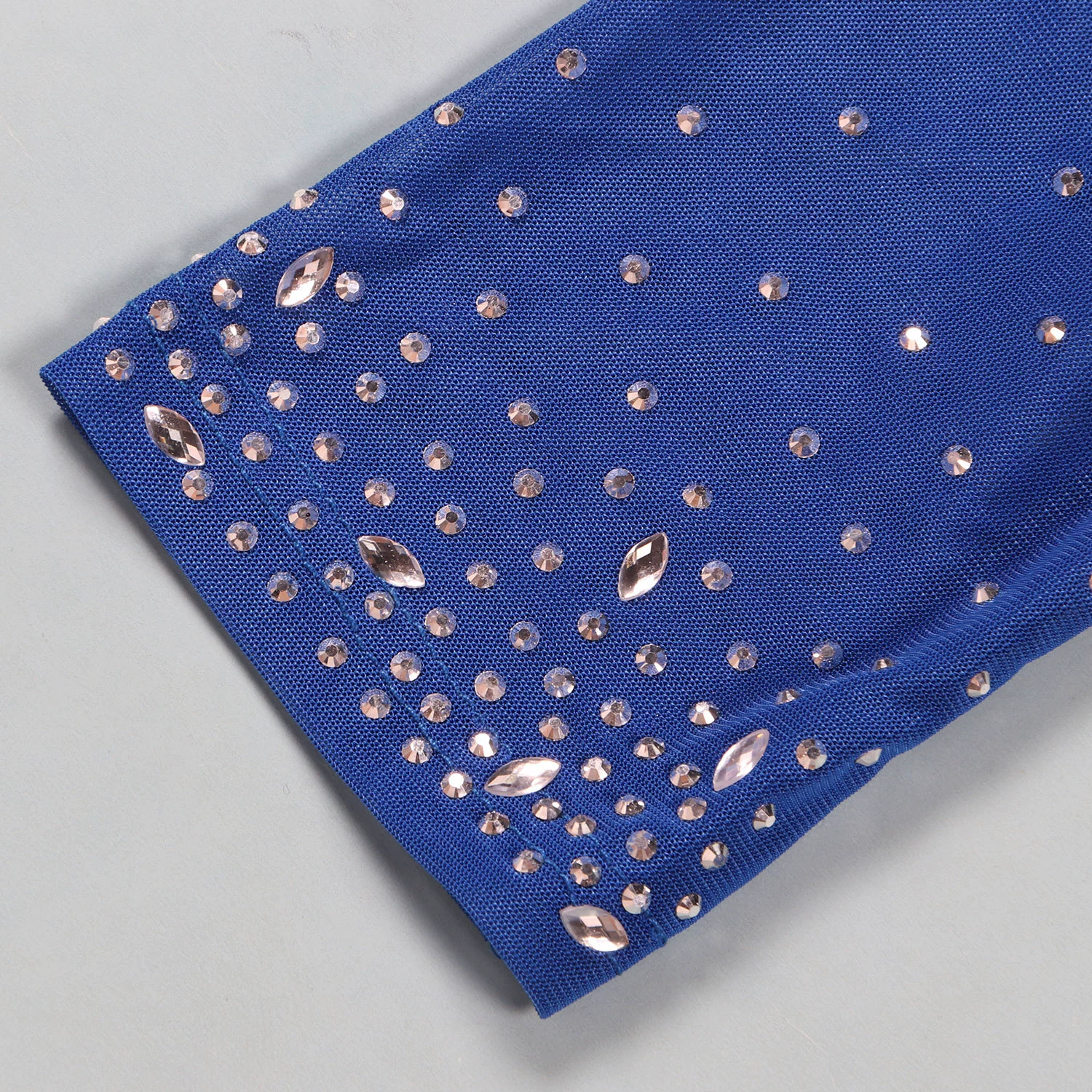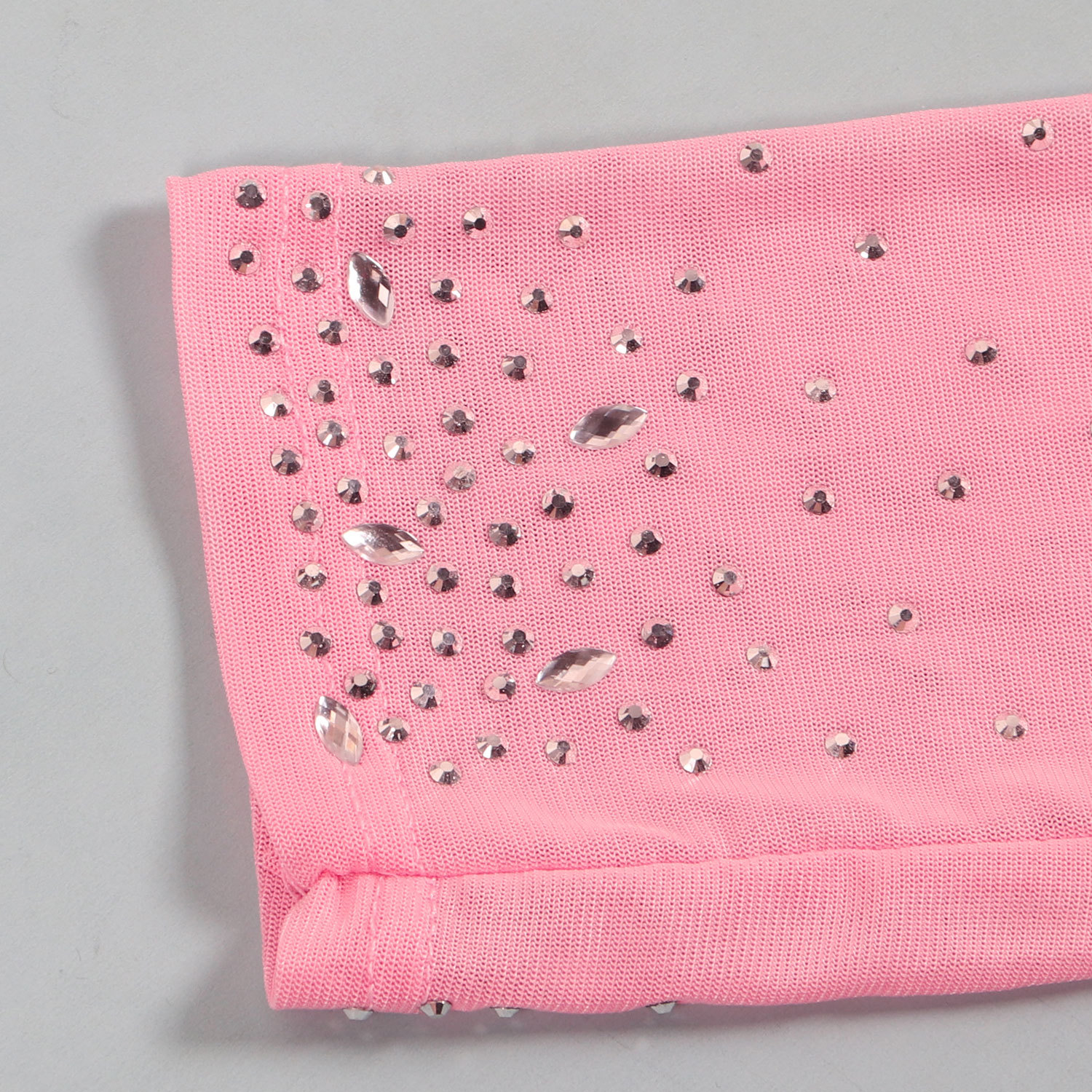 CM.YAYA Sexy Party Women’s Set Mesh Long Sleeve Dimonds Hot Drill Tee Top + Tassel Shortst 2023 Two 2 Piece Set Outfit Tracksuit
