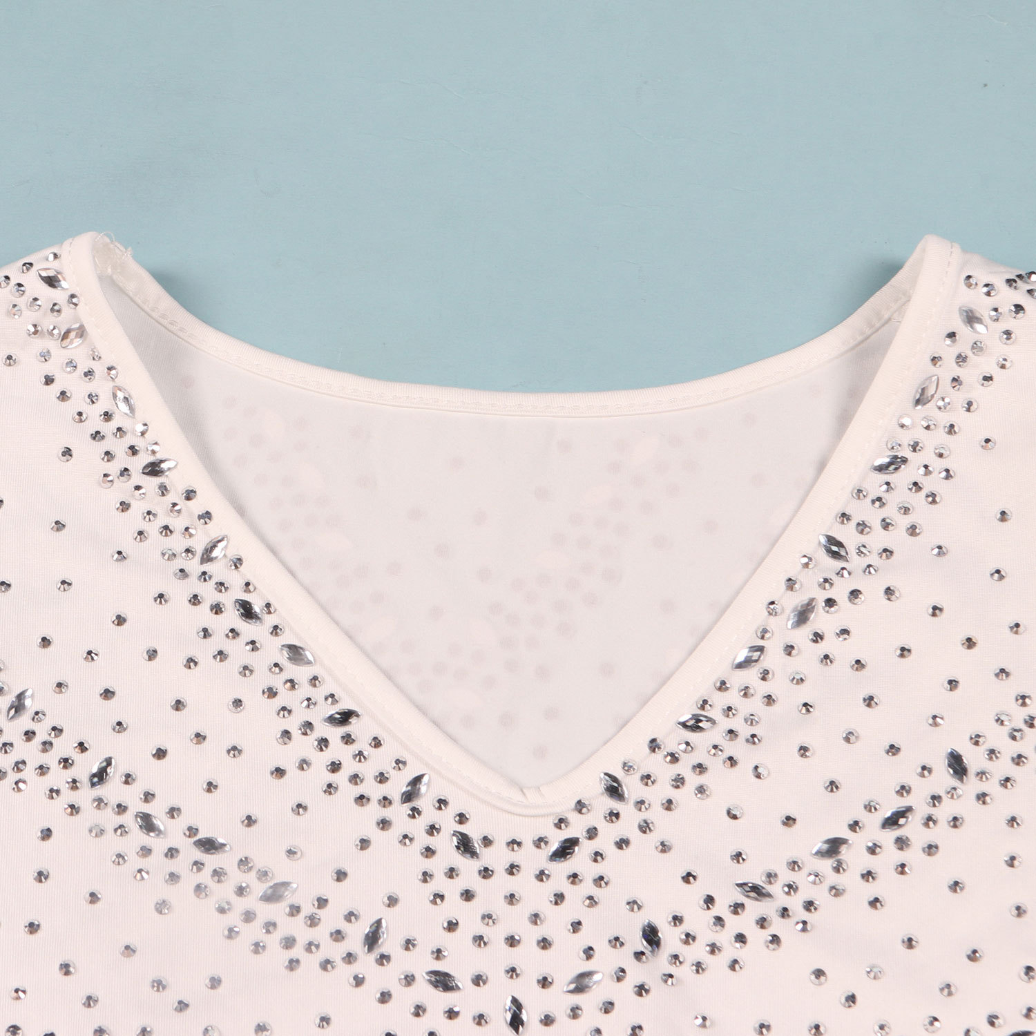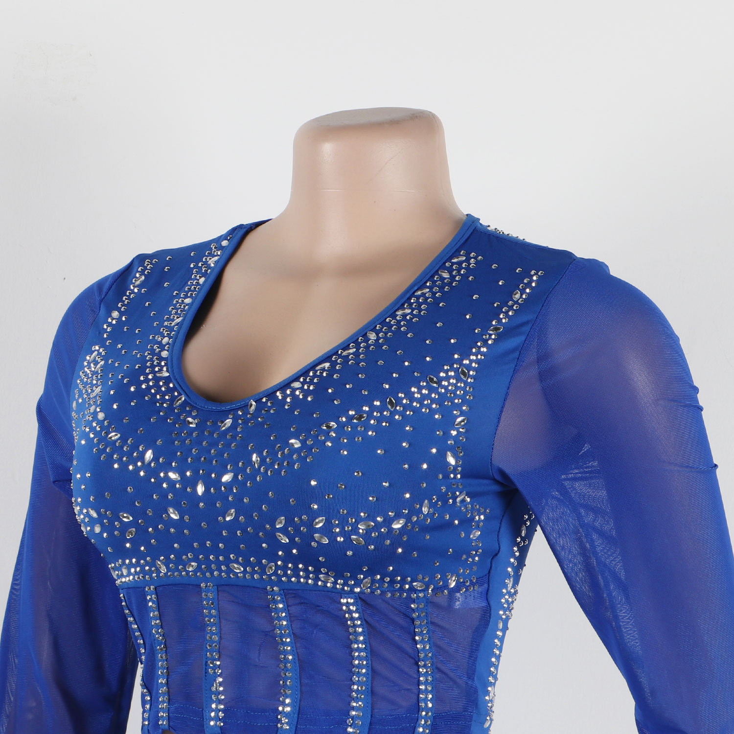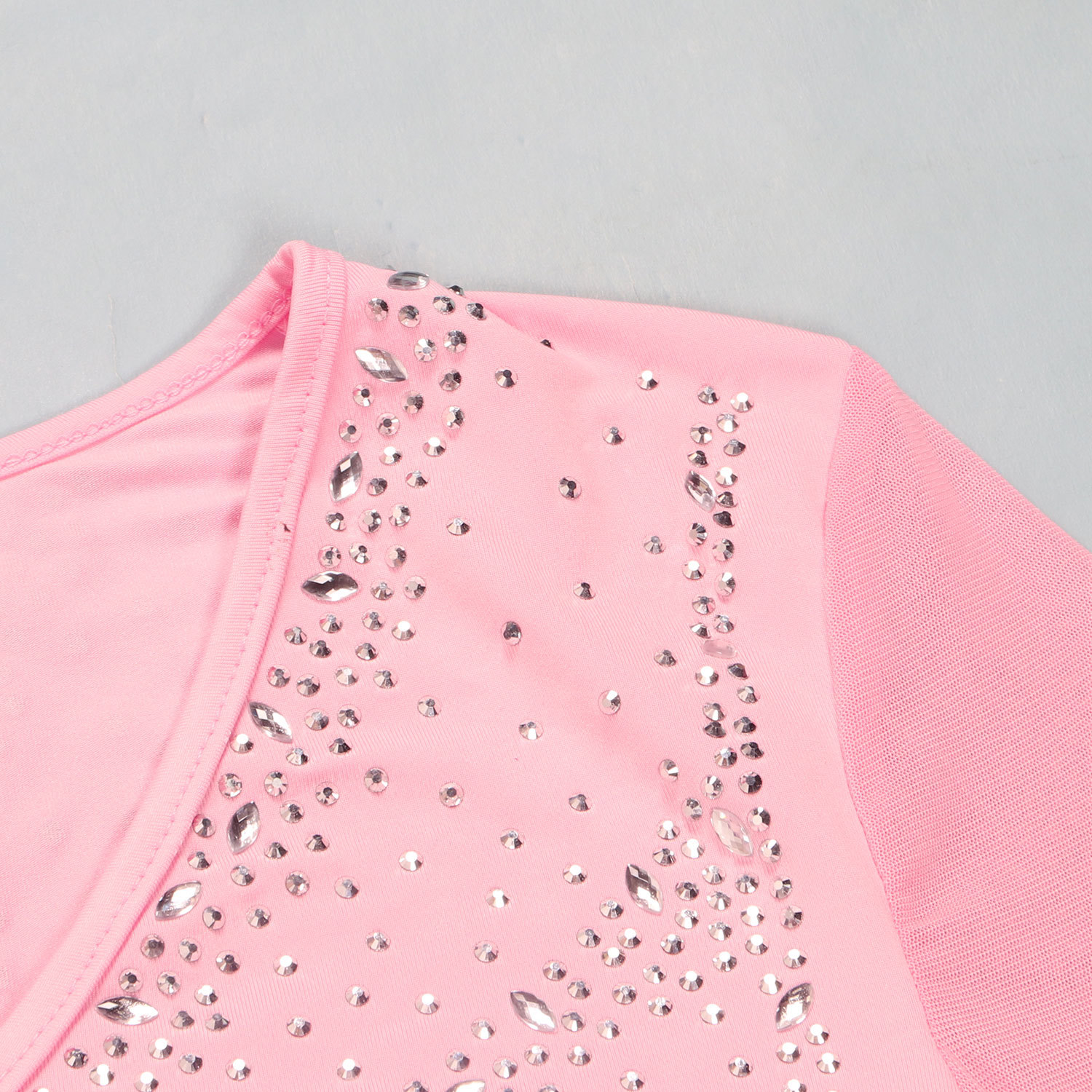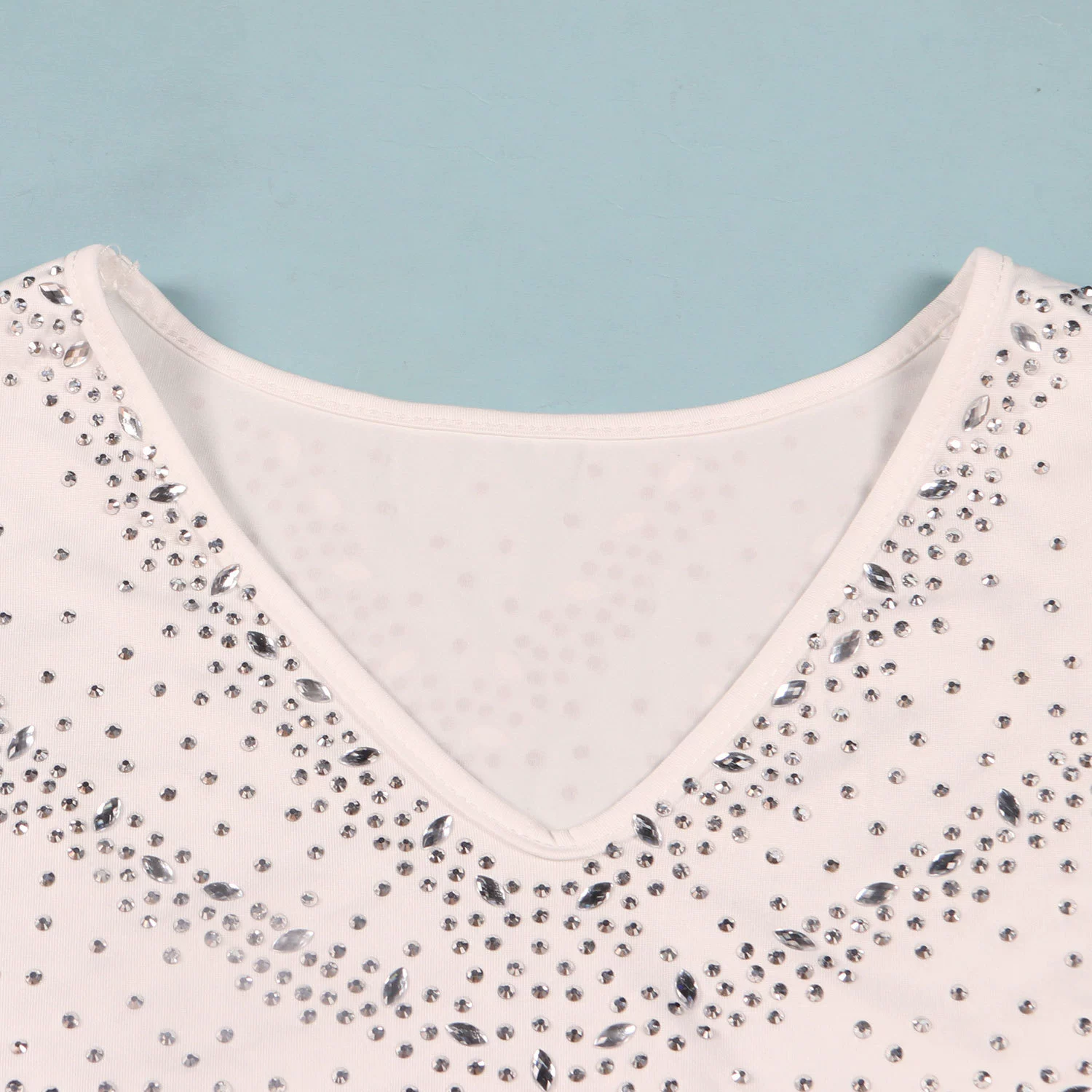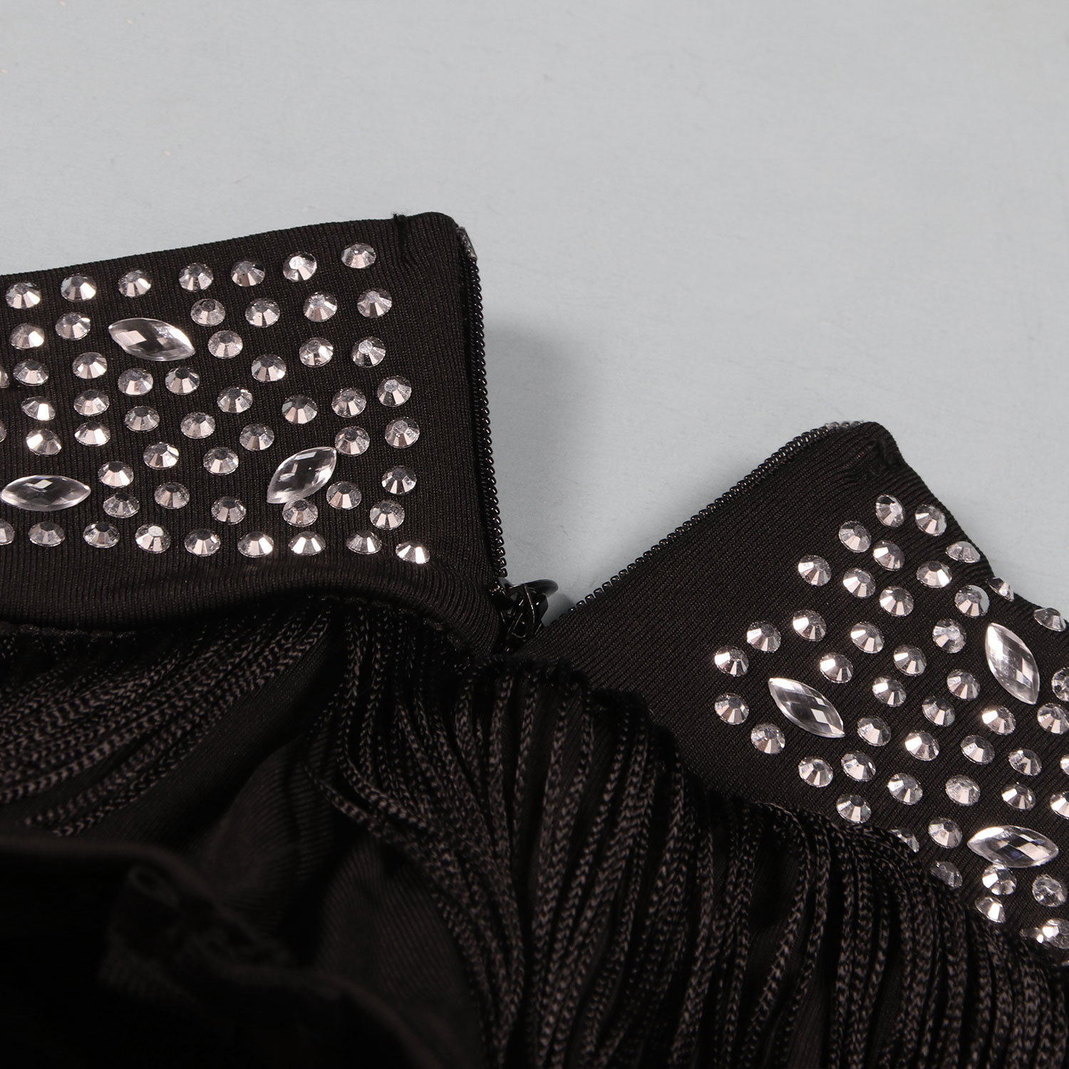 CM.YAYA Sexy Party Women’s Set Mesh Long Sleeve Dimonds Hot Drill Tee Top + Tassel Shortst 2023 Two 2 Piece Set Outfit Tracksuit