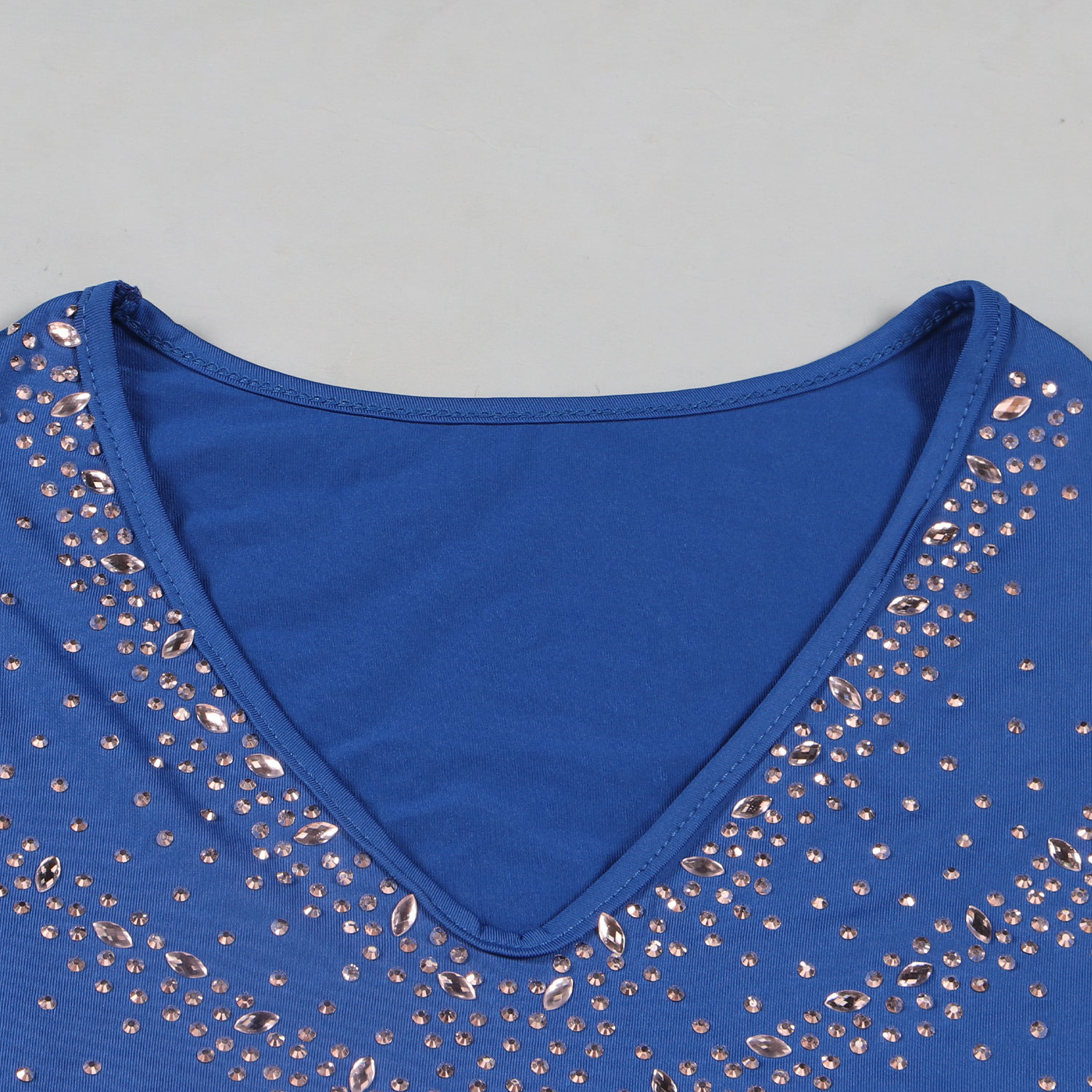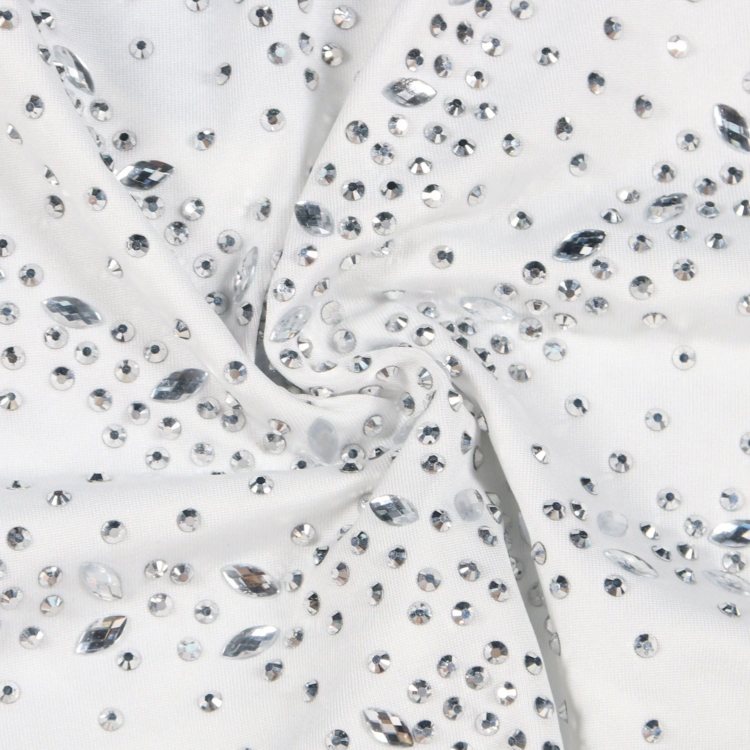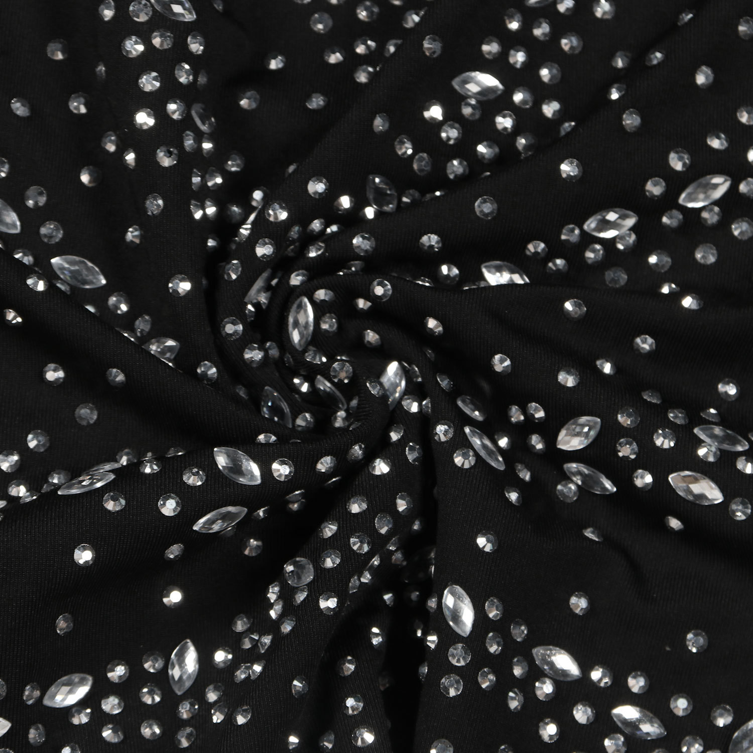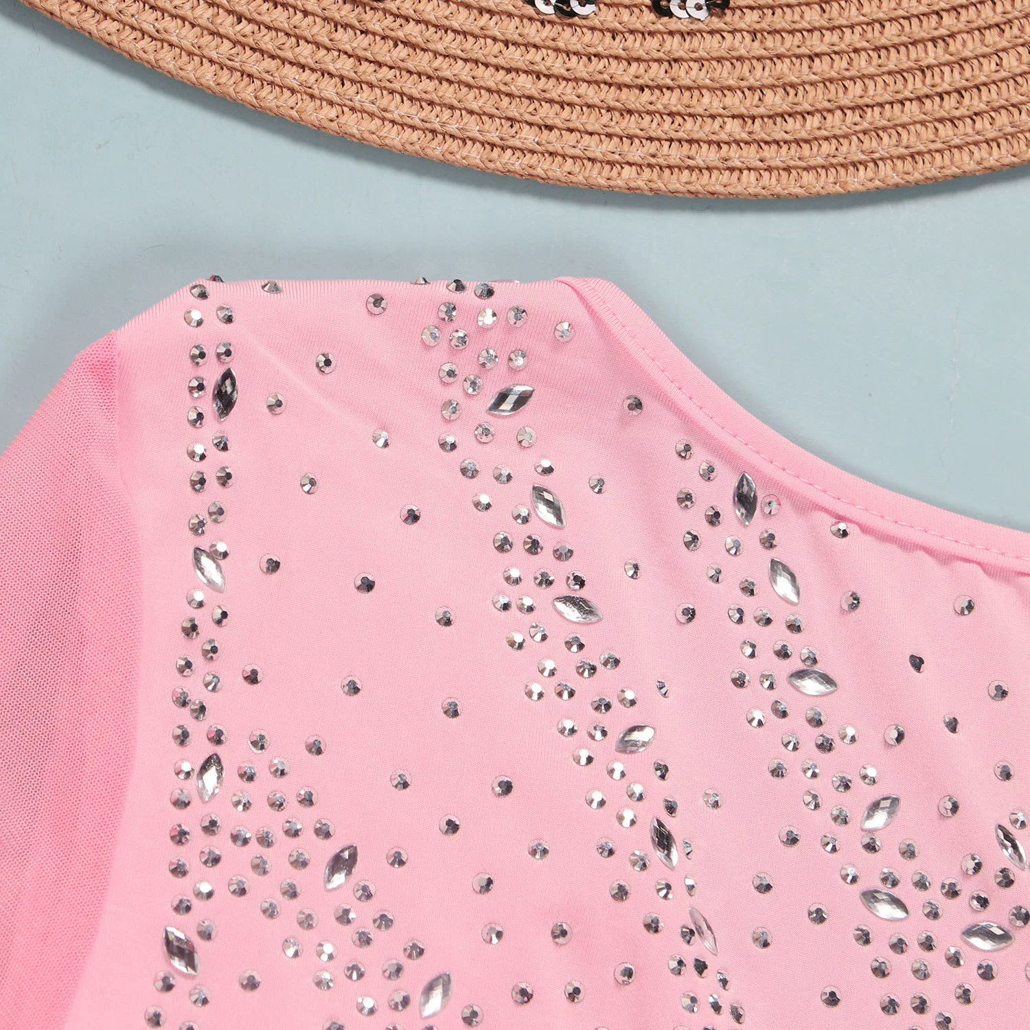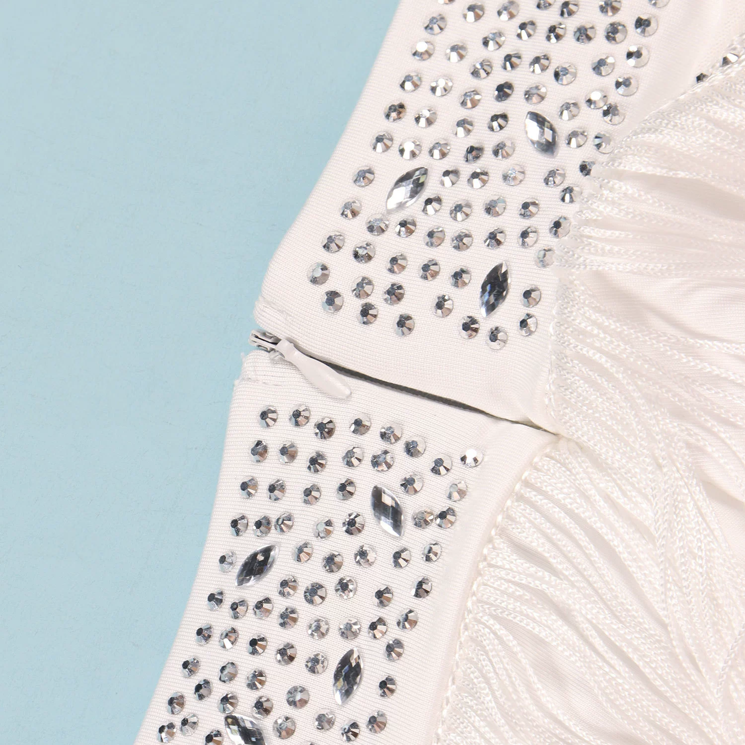 CM.YAYA Sexy Party Women’s Set Mesh Long Sleeve Dimonds Hot Drill Tee Top + Tassel Shortst 2023 Two 2 Piece Set Outfit Tracksuit