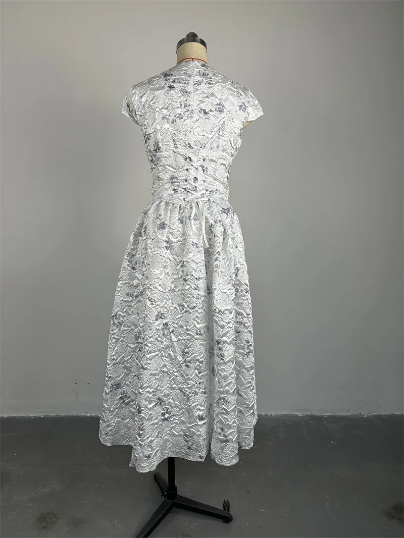 CM.YAYA Short Sleeve Elegant Women Long Dress Pockets O-neck A-Line Mid-Length Dresses 2024 Summer Beach Party Streetwear