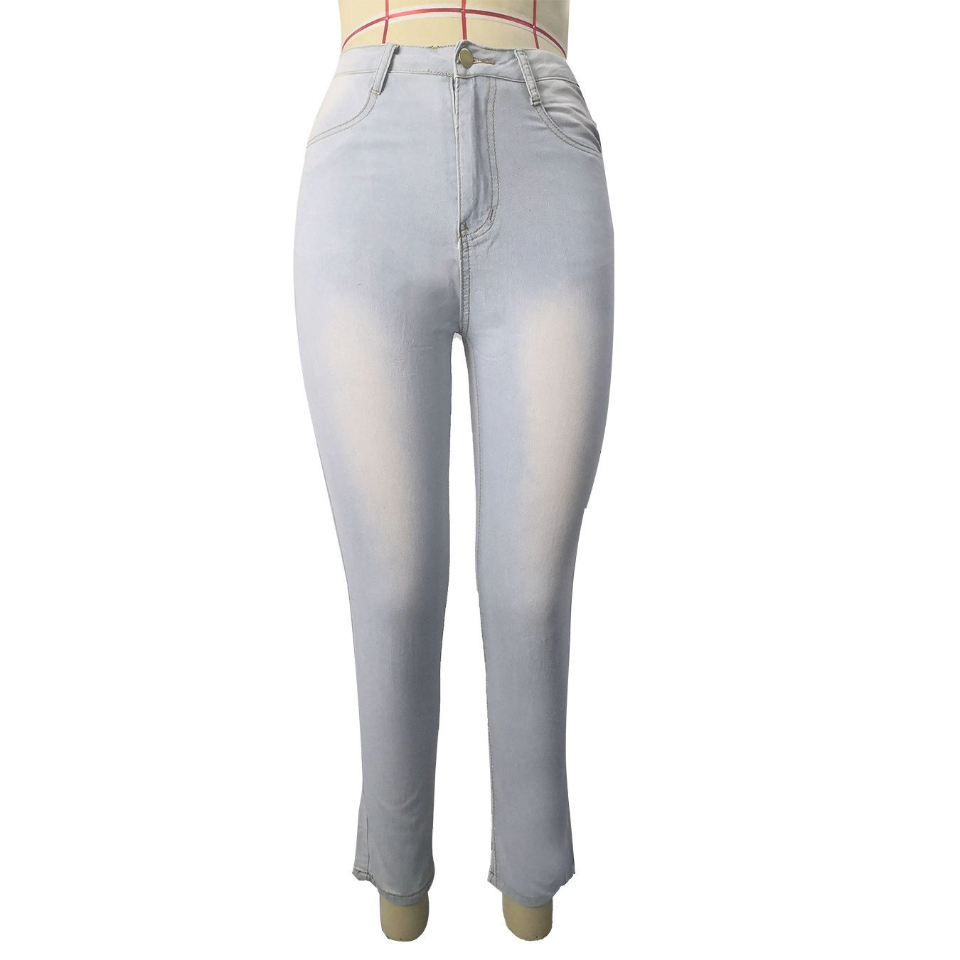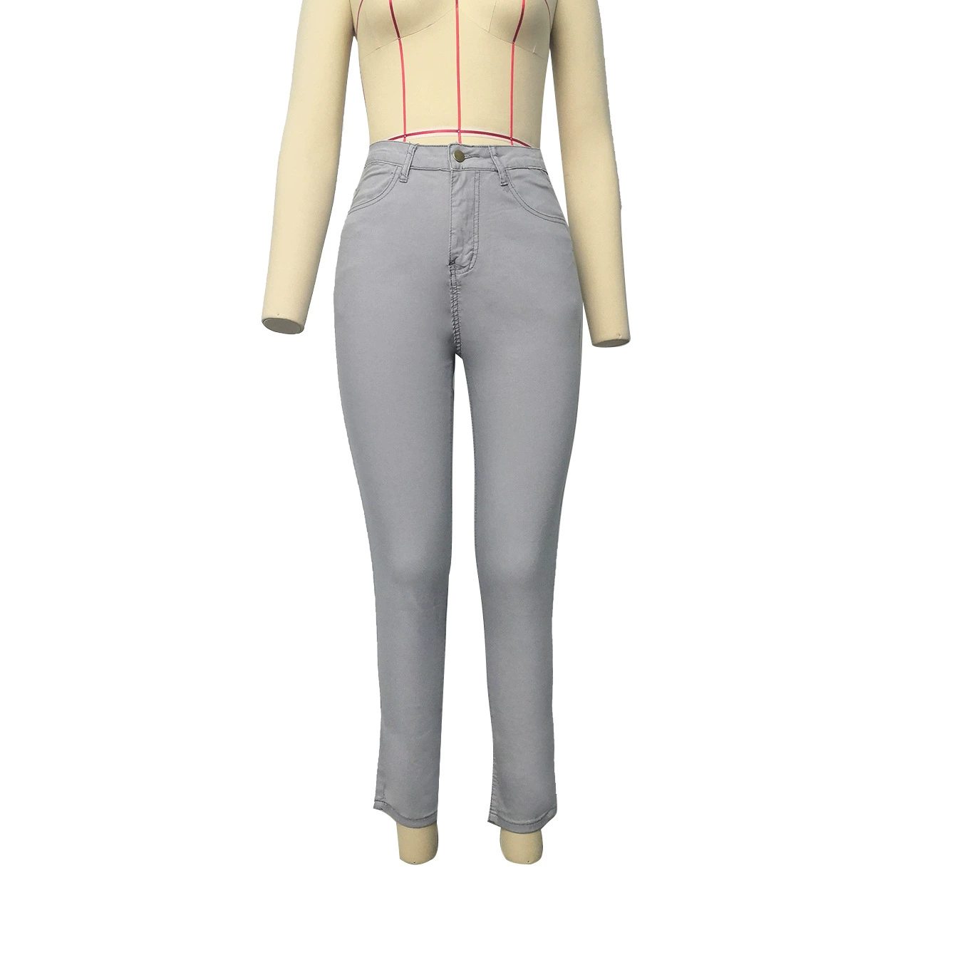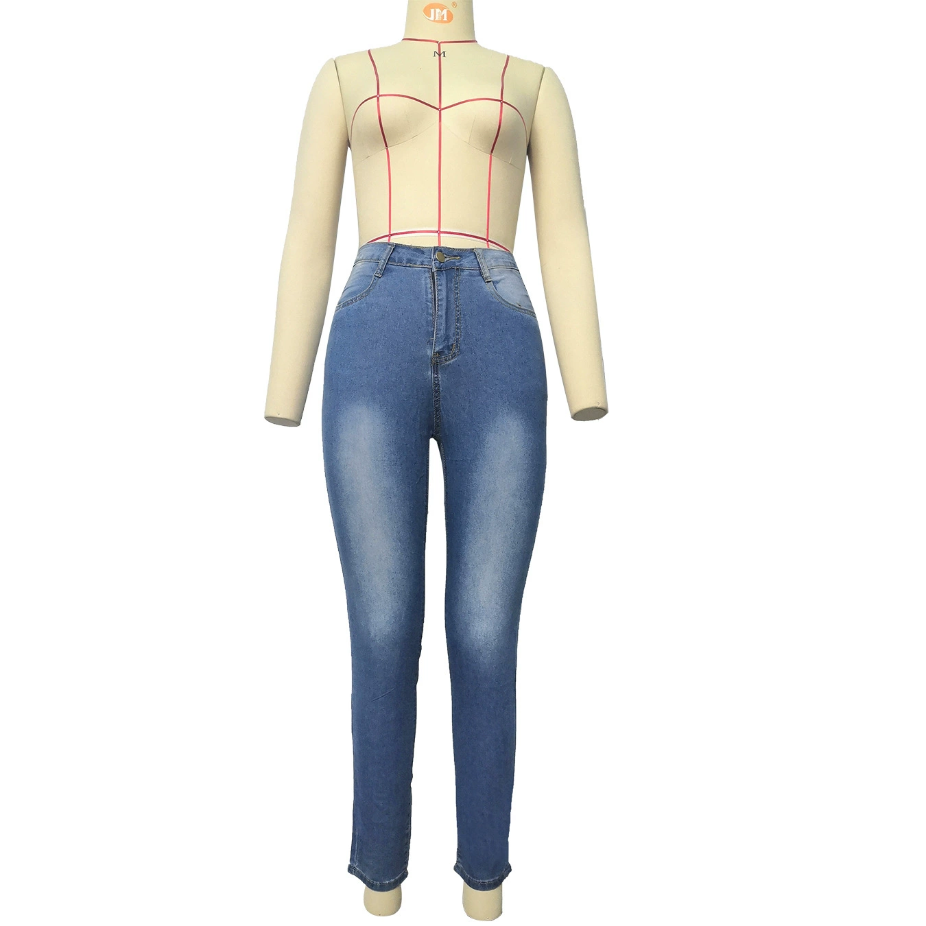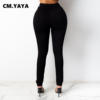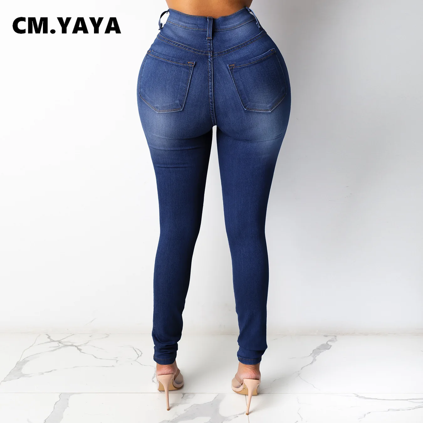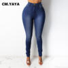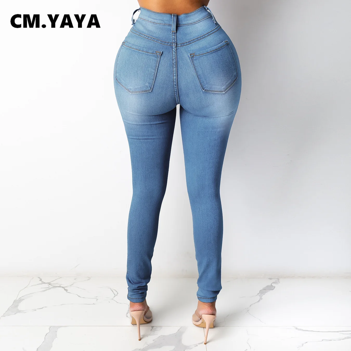 CM.YAYA Solid Full Length Women Jeans Fake Zippers Skinny Elastic High Waist Jeans with Pockets Women High Street Pencil Pants