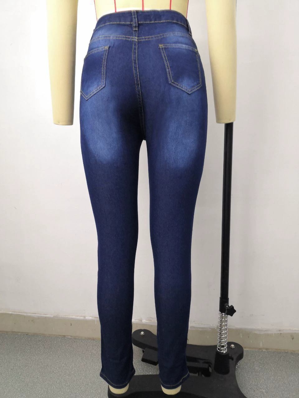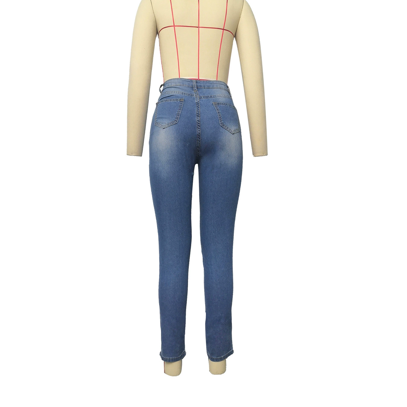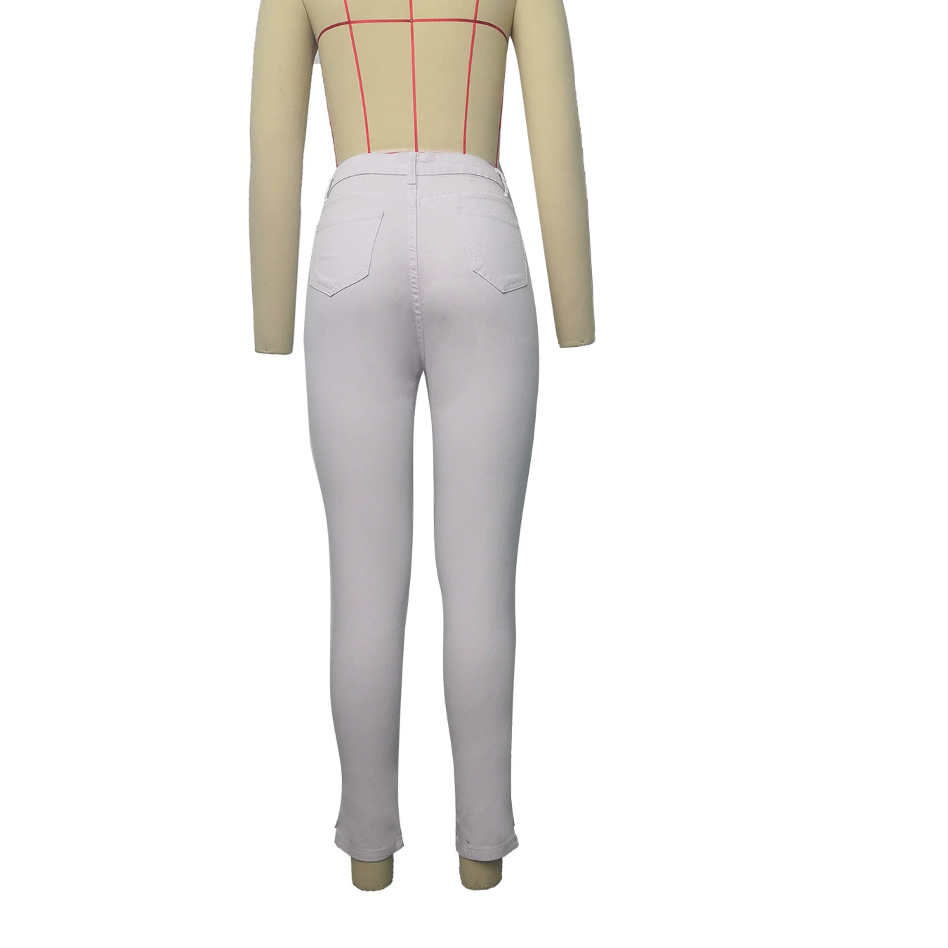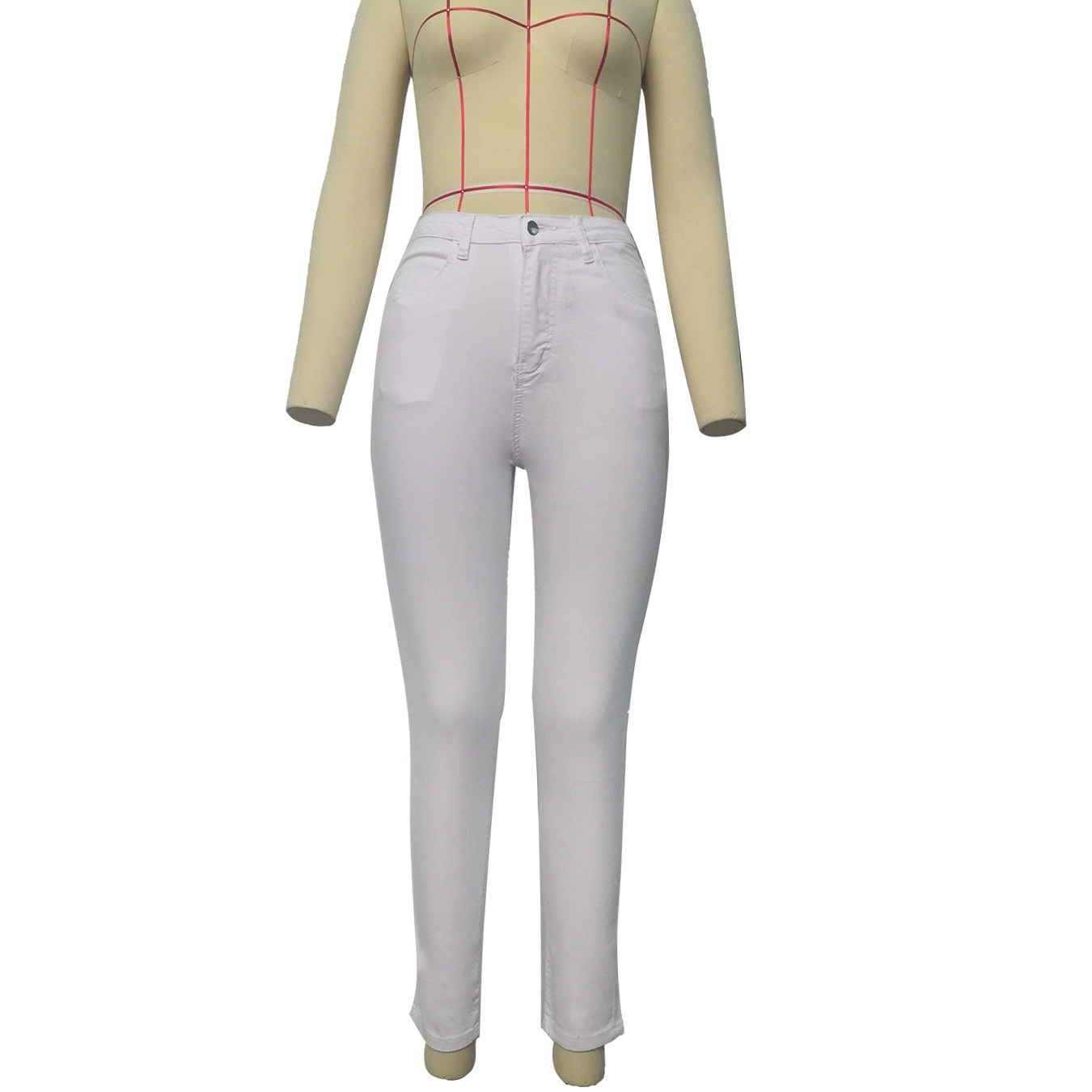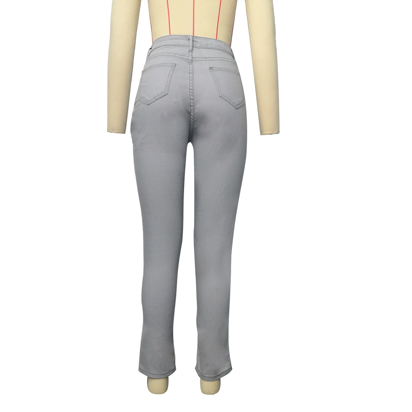 CM.YAYA Solid Full Length Women Jeans Fake Zippers Skinny Elastic High Waist Jeans with Pockets Women High Street Pencil Pants