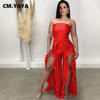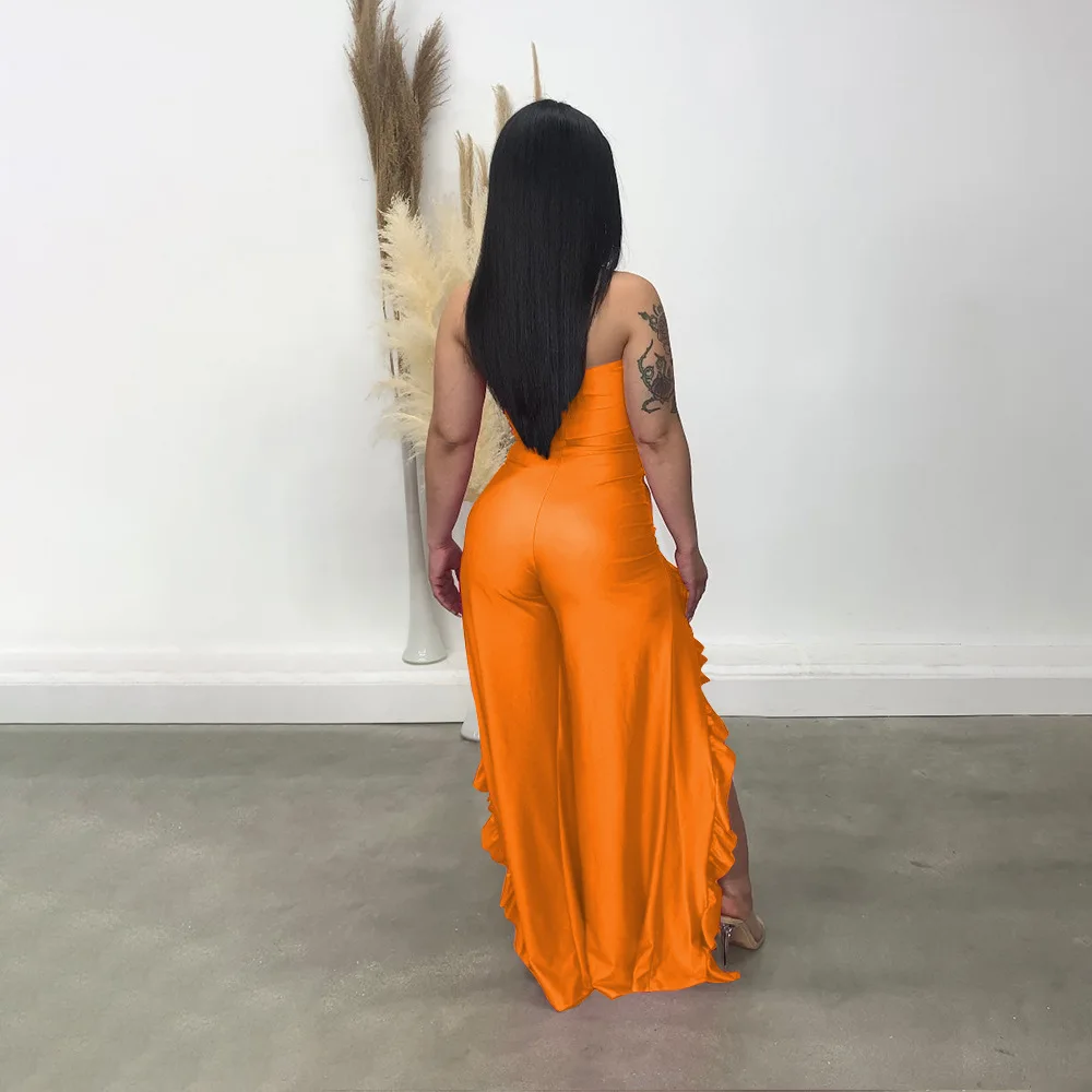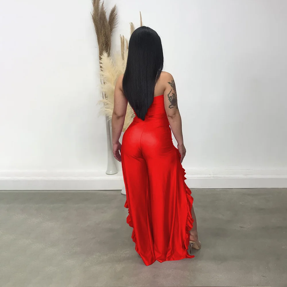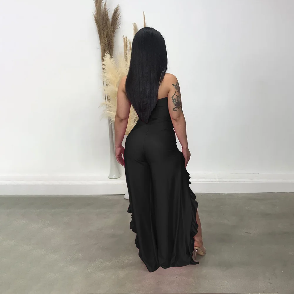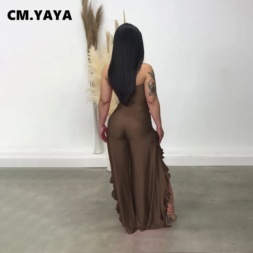 CM.YAYA Strapless Ruffles Edible Tree Fungus High Split Sexy Party Jumpsuit for Women 2022 Summer Elastic Overall Romper