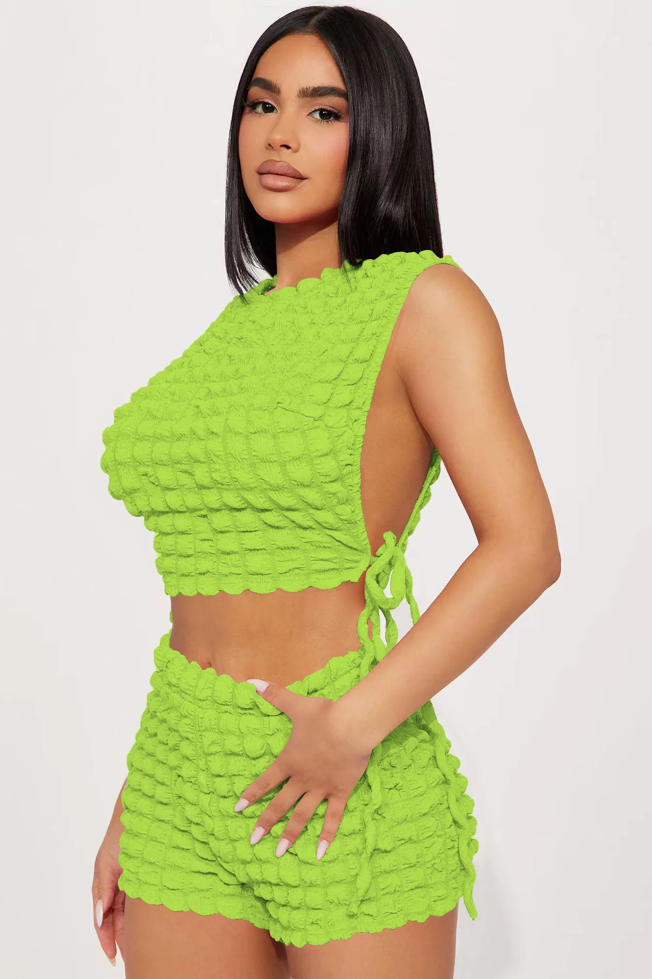 CM.YAYA Street Elastic Women’s Set Tie Up Open Side T-shirt and Shorts Suit 2023 Summer Active Two 2 Piece Set Outfit Tracksuit