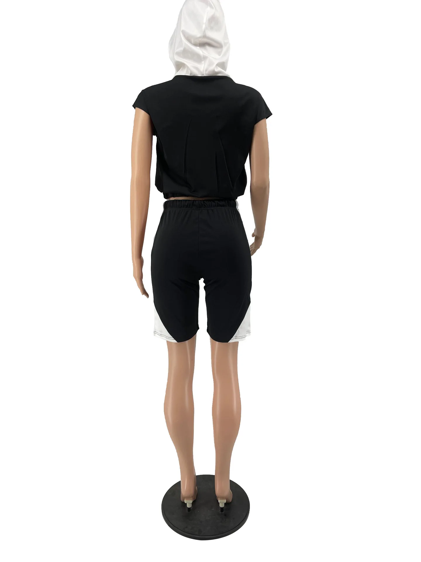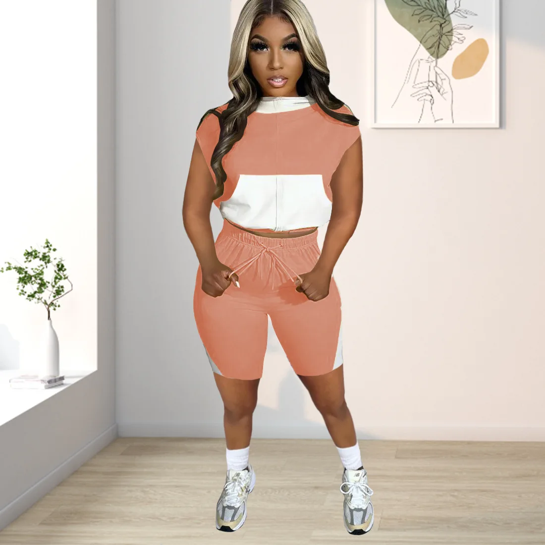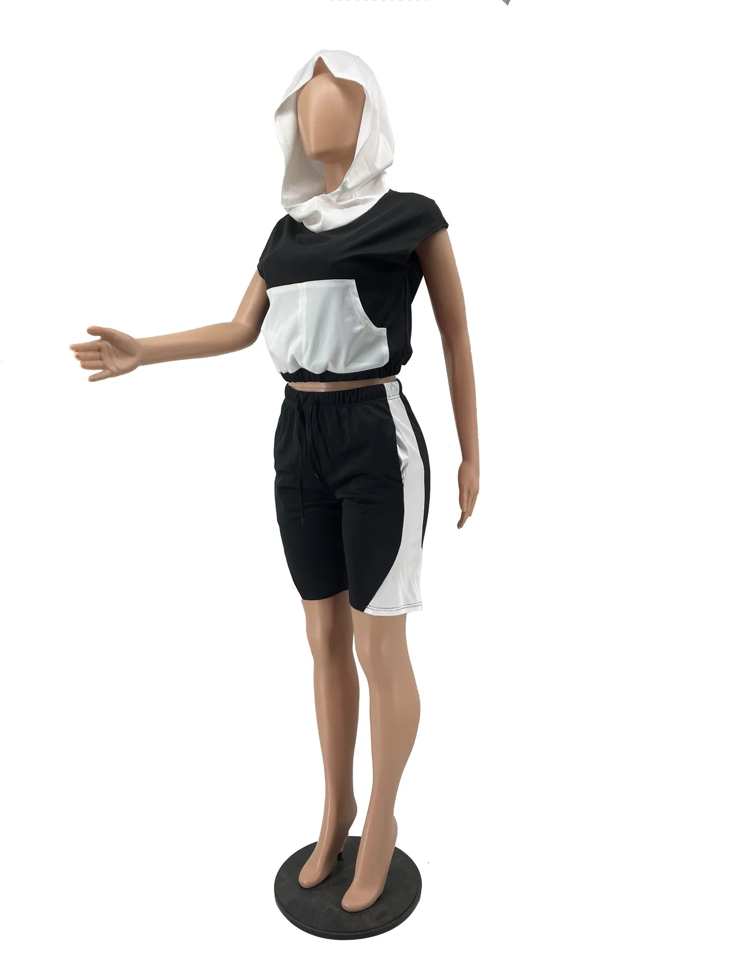 CM.YAYA Street Patchwork Women’s Set Hooded Sleeveless Sweatshirt + Knee Length Pants INS 2023 Two 2 Piece Set Outfit Tracksuit