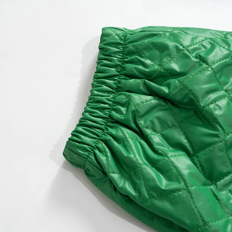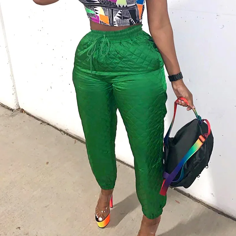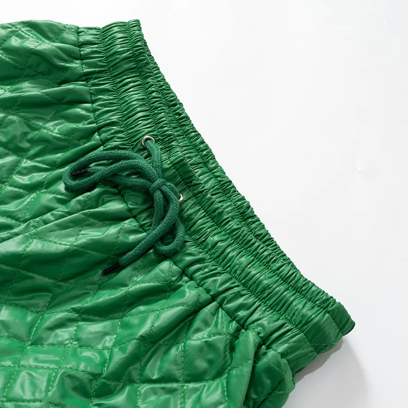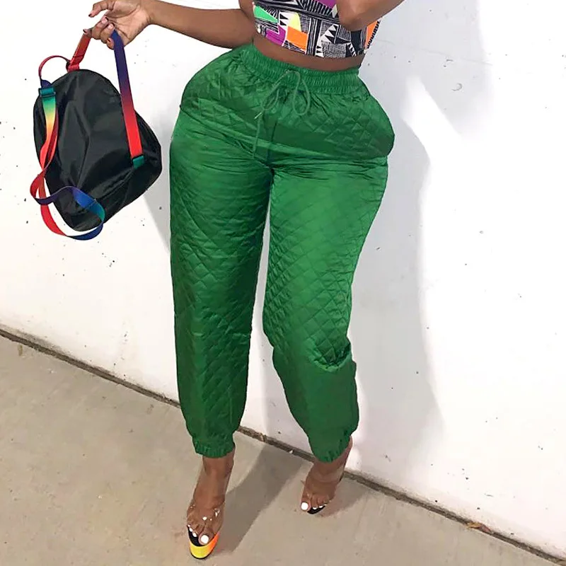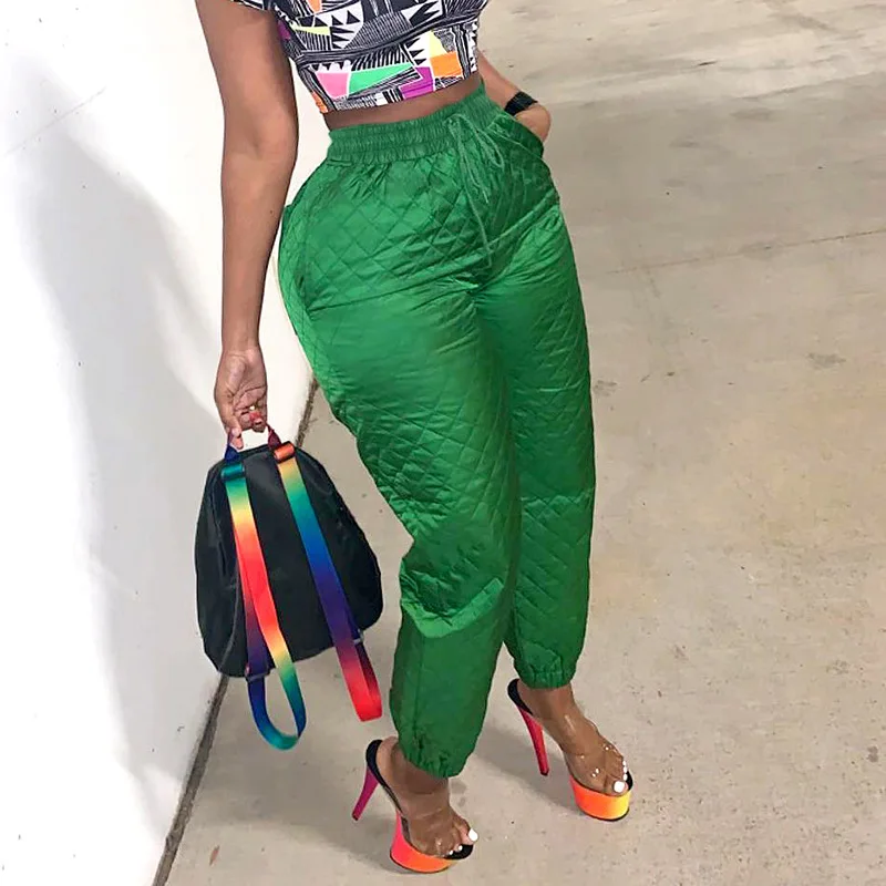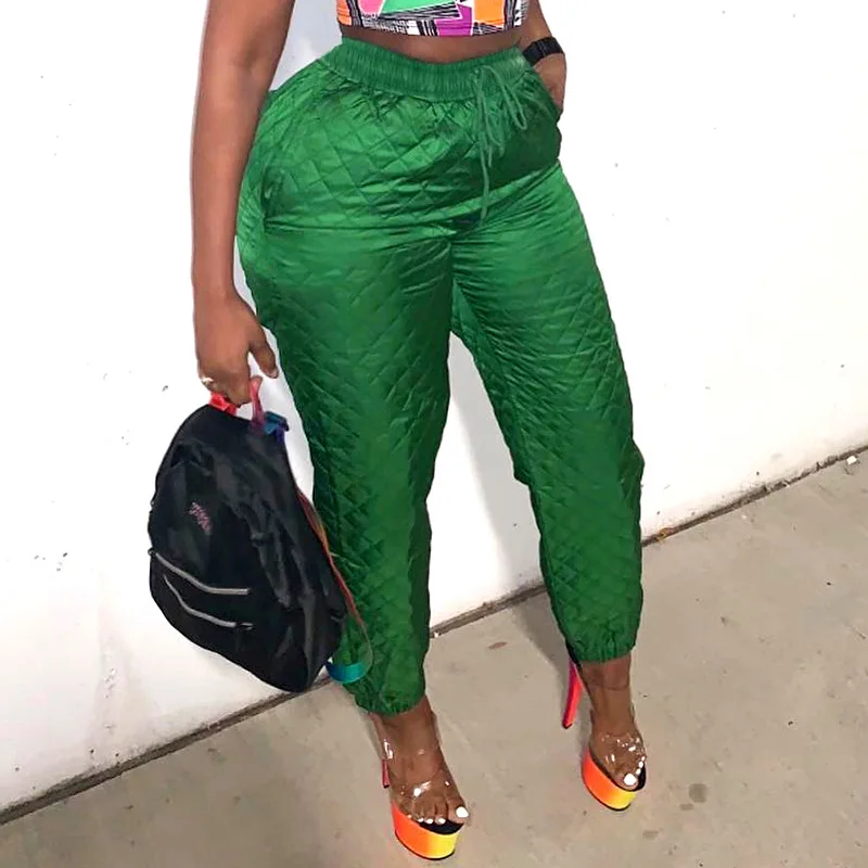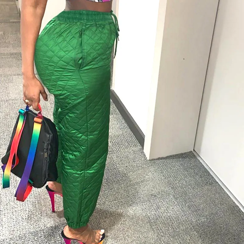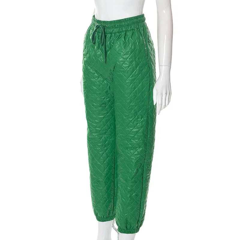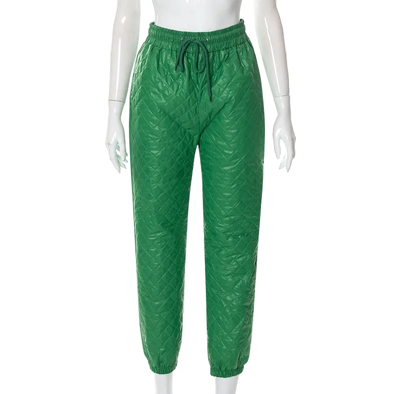 CM.YAYA Street Women High Waist Plaid Cotton-padded Trousers Fashion Winter Green Jogger Casual Pants