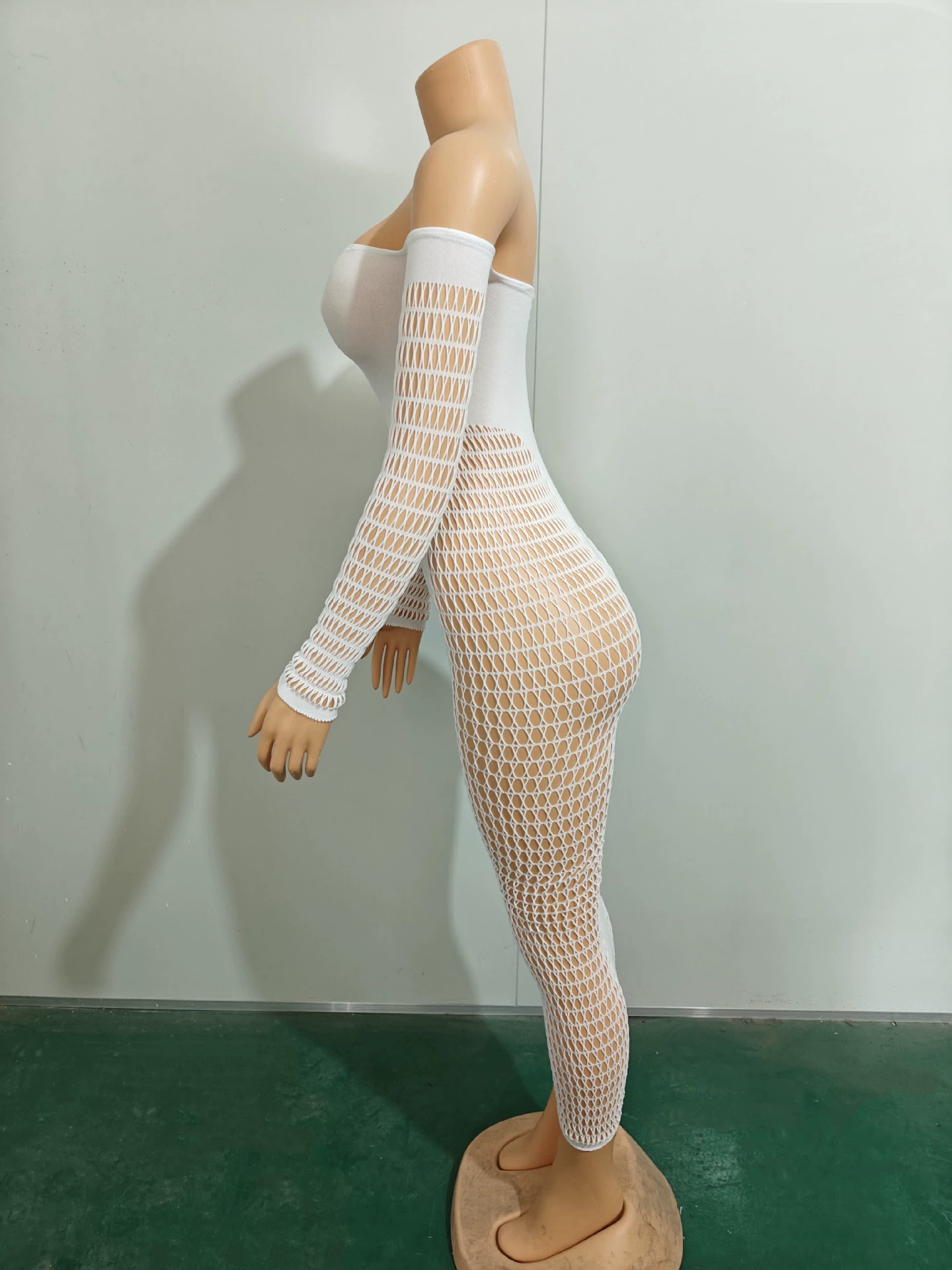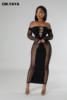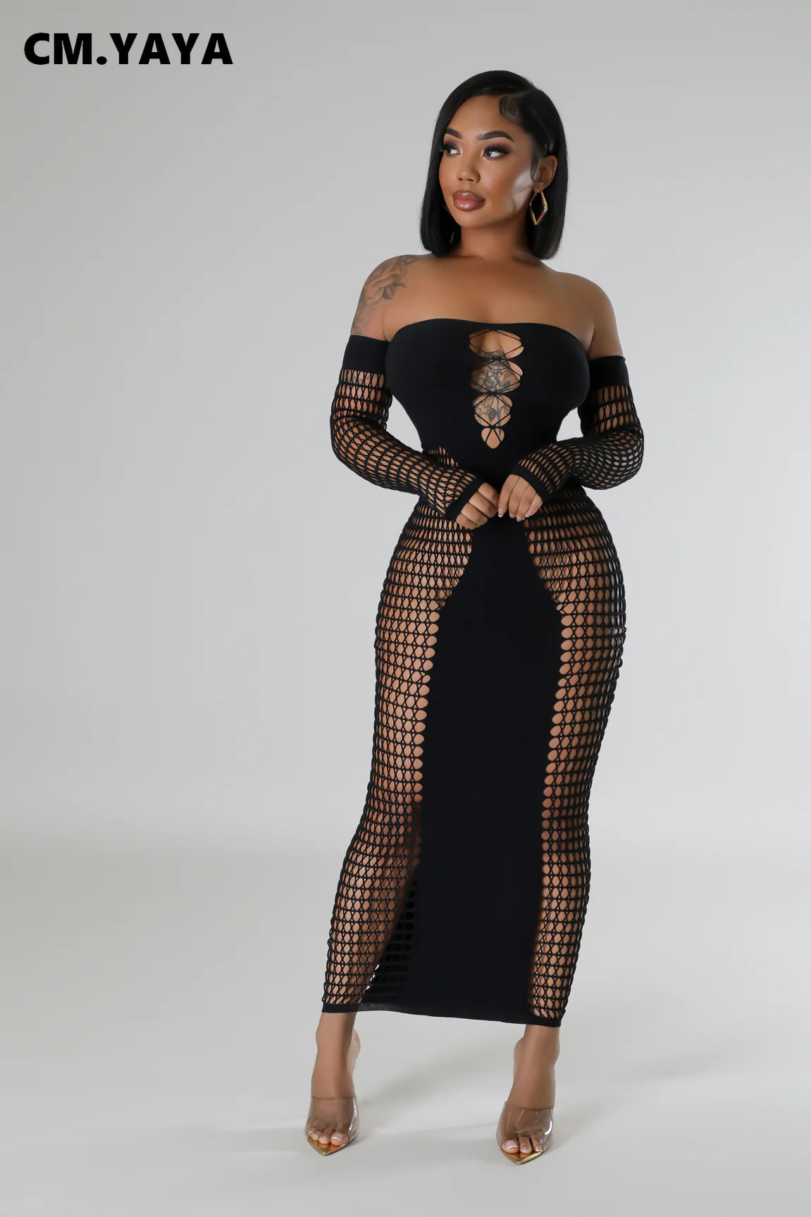 CM.YAYA Summer Full Sleeve Long Dress Mesh Hollow Out 2024 Strapless Evening Vestidos Sexy Party Club Maxi Dresses Vestidos