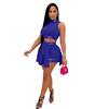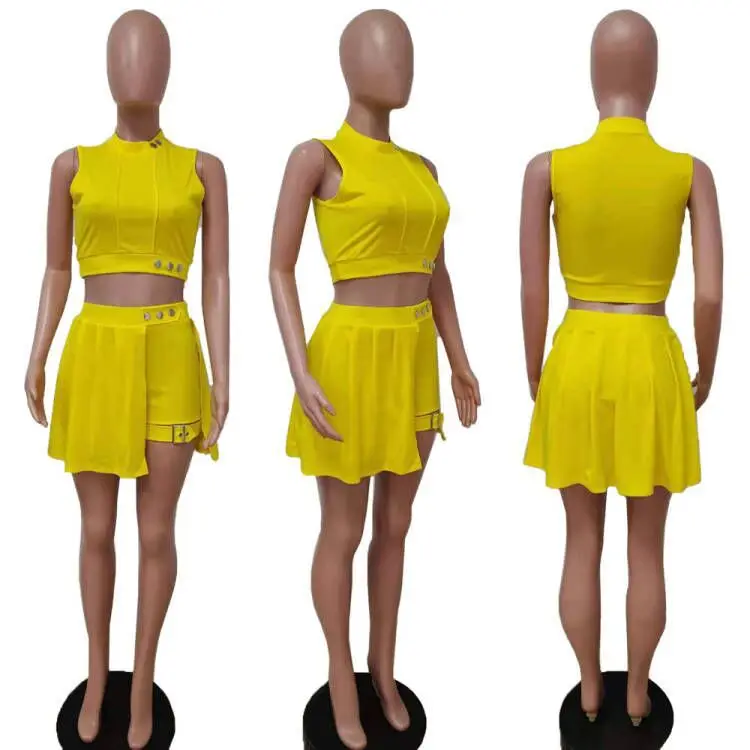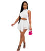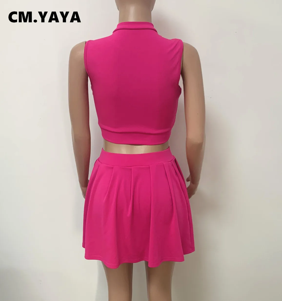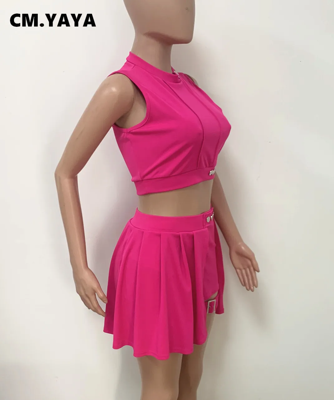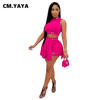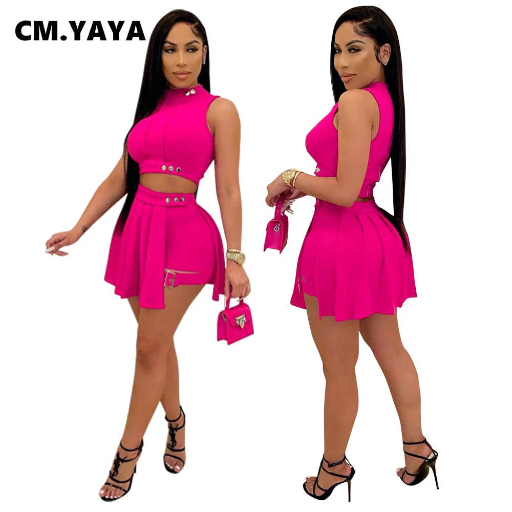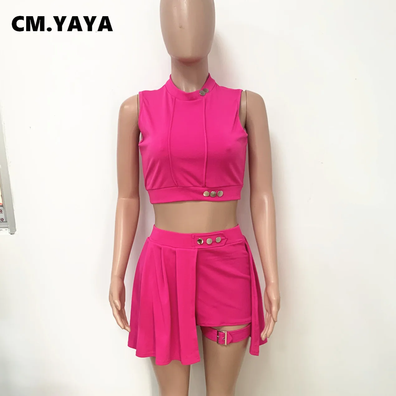CM.YAYA Summer Women Solid Color Two Piece Set O-neck Crop Tank Tops Shorts Suits Jogger Tracksuit Matching Set Button Outfit