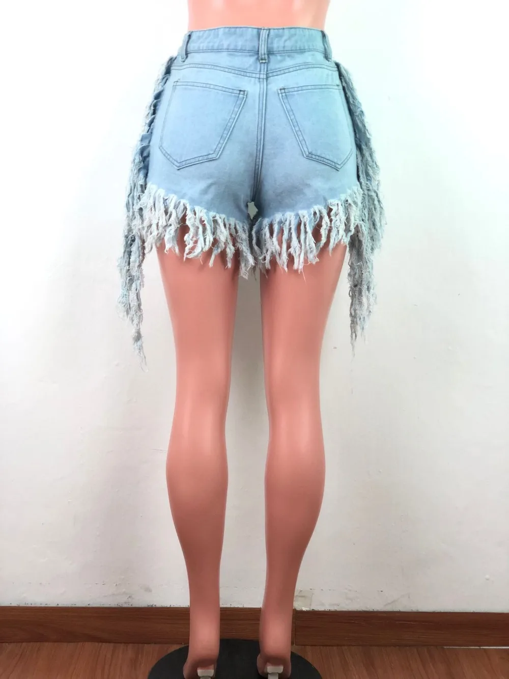 CM.YAYA Summer Women Zipper Fly Washed Tassel Hem Regular Denim Short Pants Classic Streetwear Fashion Shorts Jeans