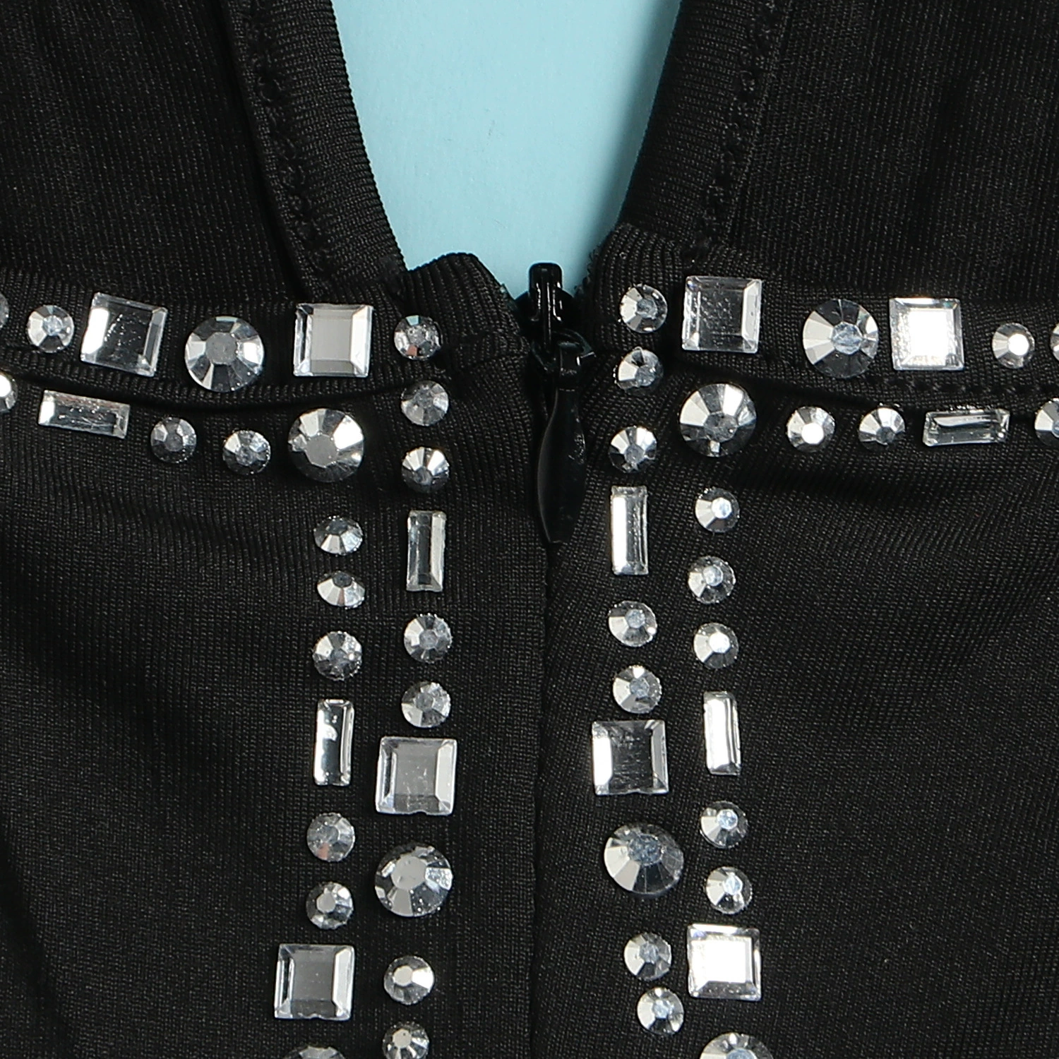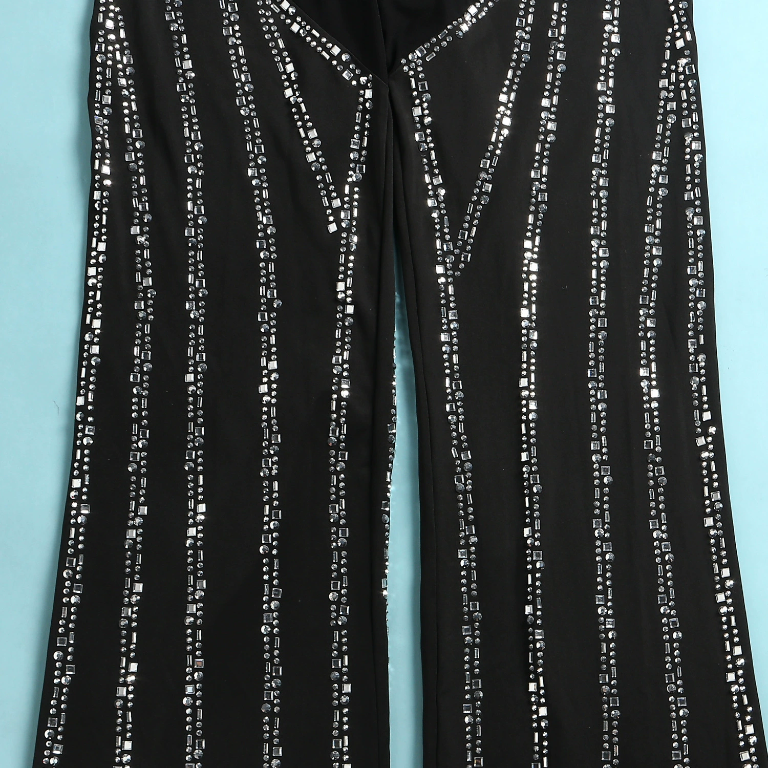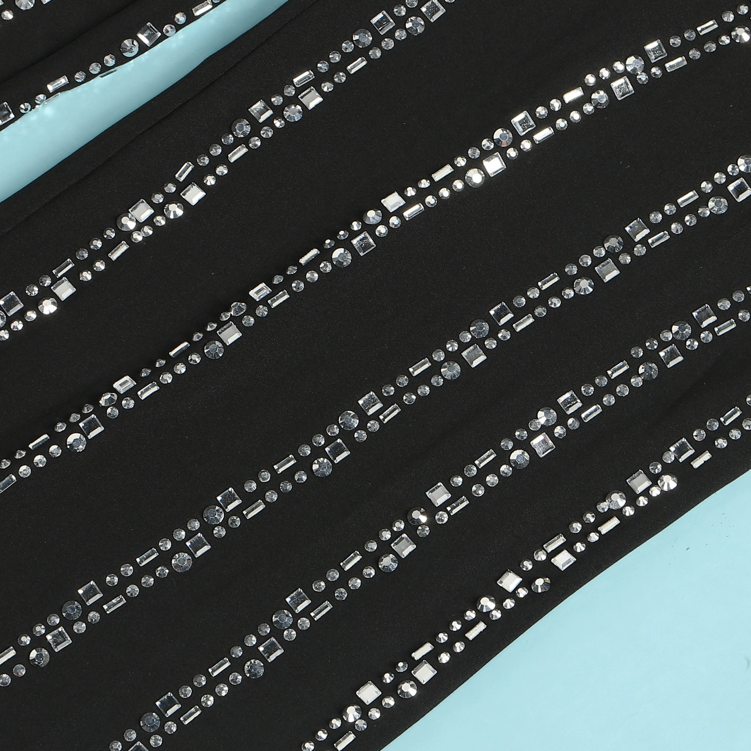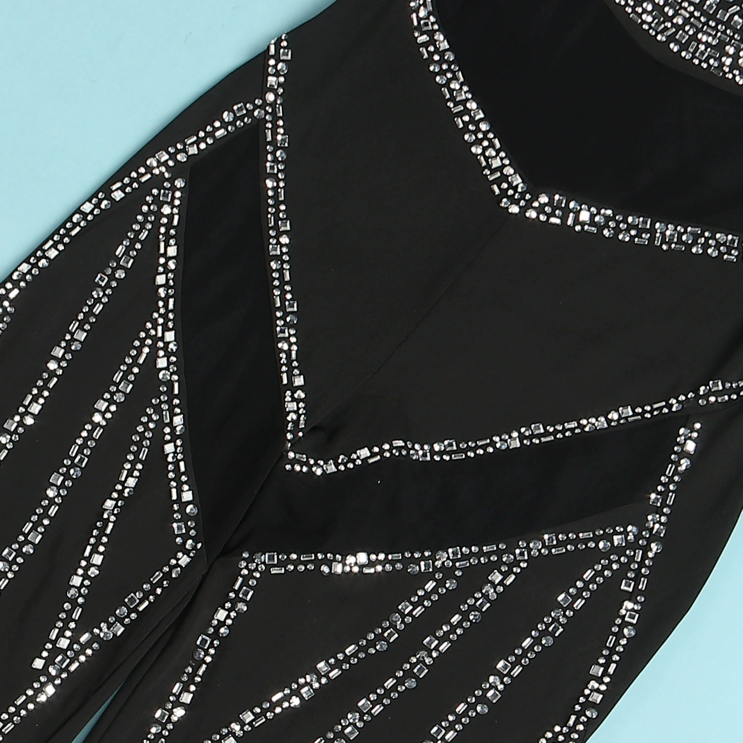 CM.YAYA Vintage Women Diamonds Hot Rhinestones Spaghetti Strap V-neck Mesh Patchwork Straight Jumpsuit Sexy Party Club Romper