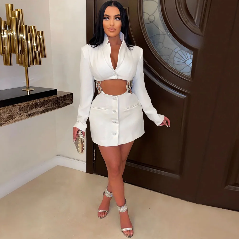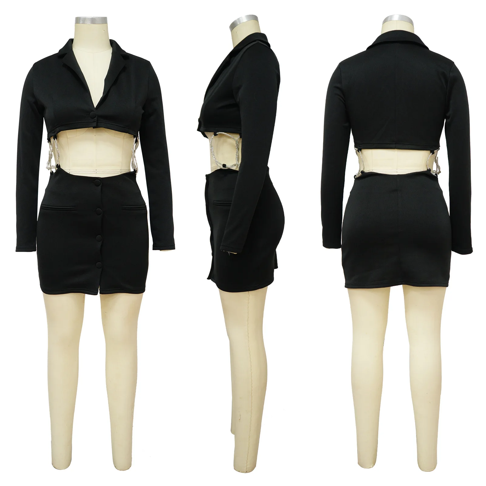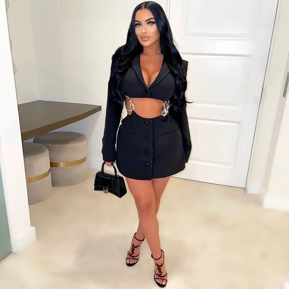 CM.YAYA Vintage Women Drawstring Patchwork Long Sleeve Notched Neck Sinlge Breasted Blazer Style Dress Sexy Party Club Dresses