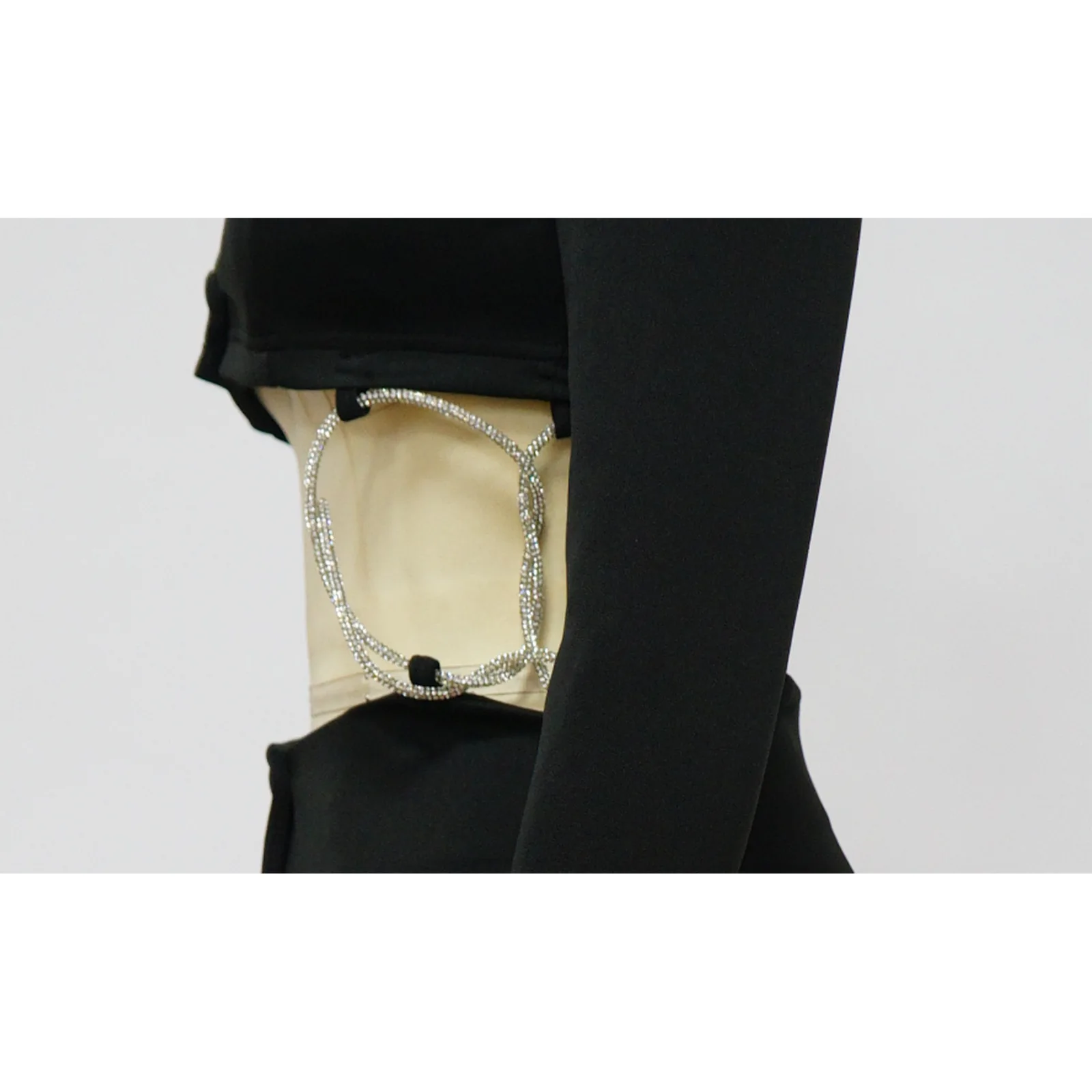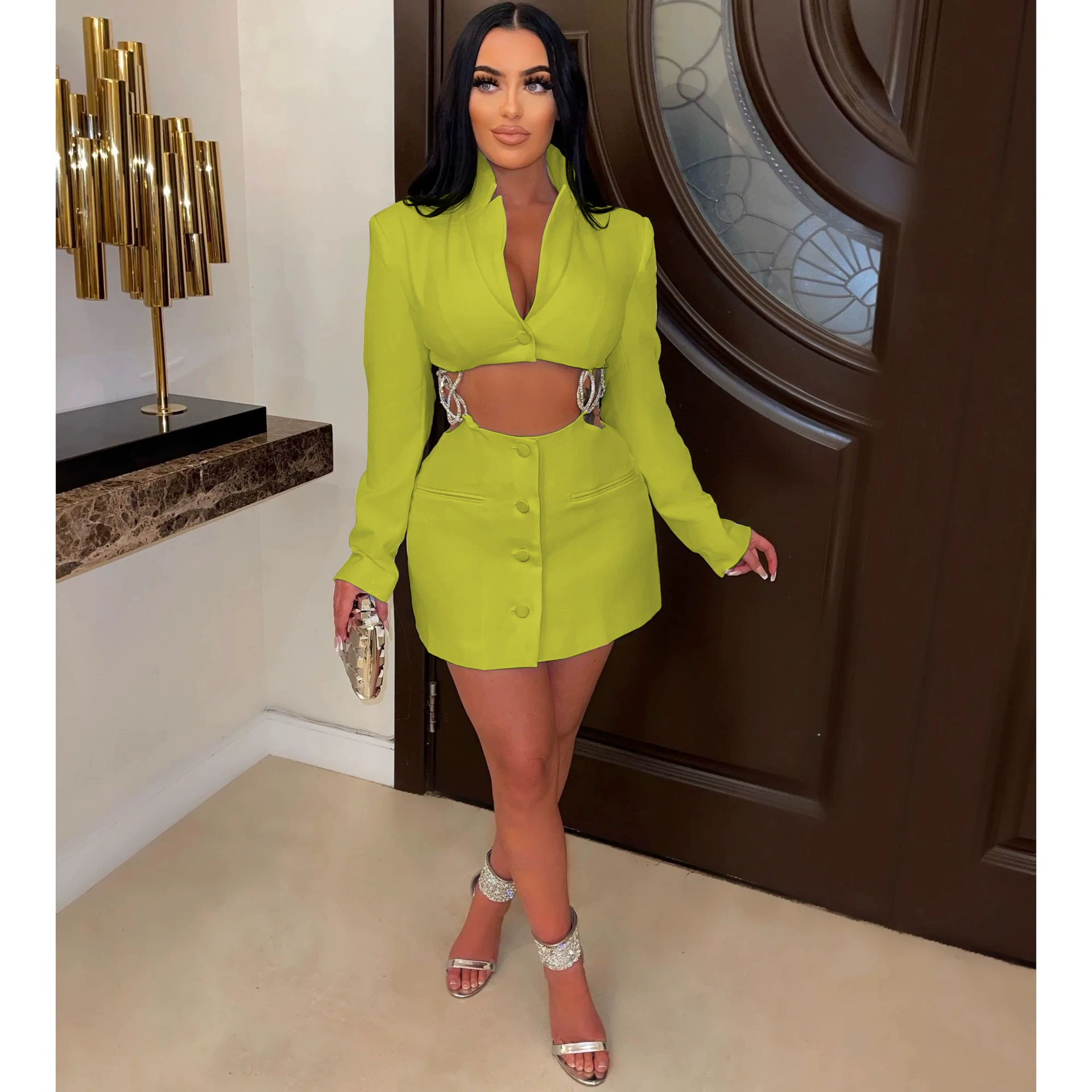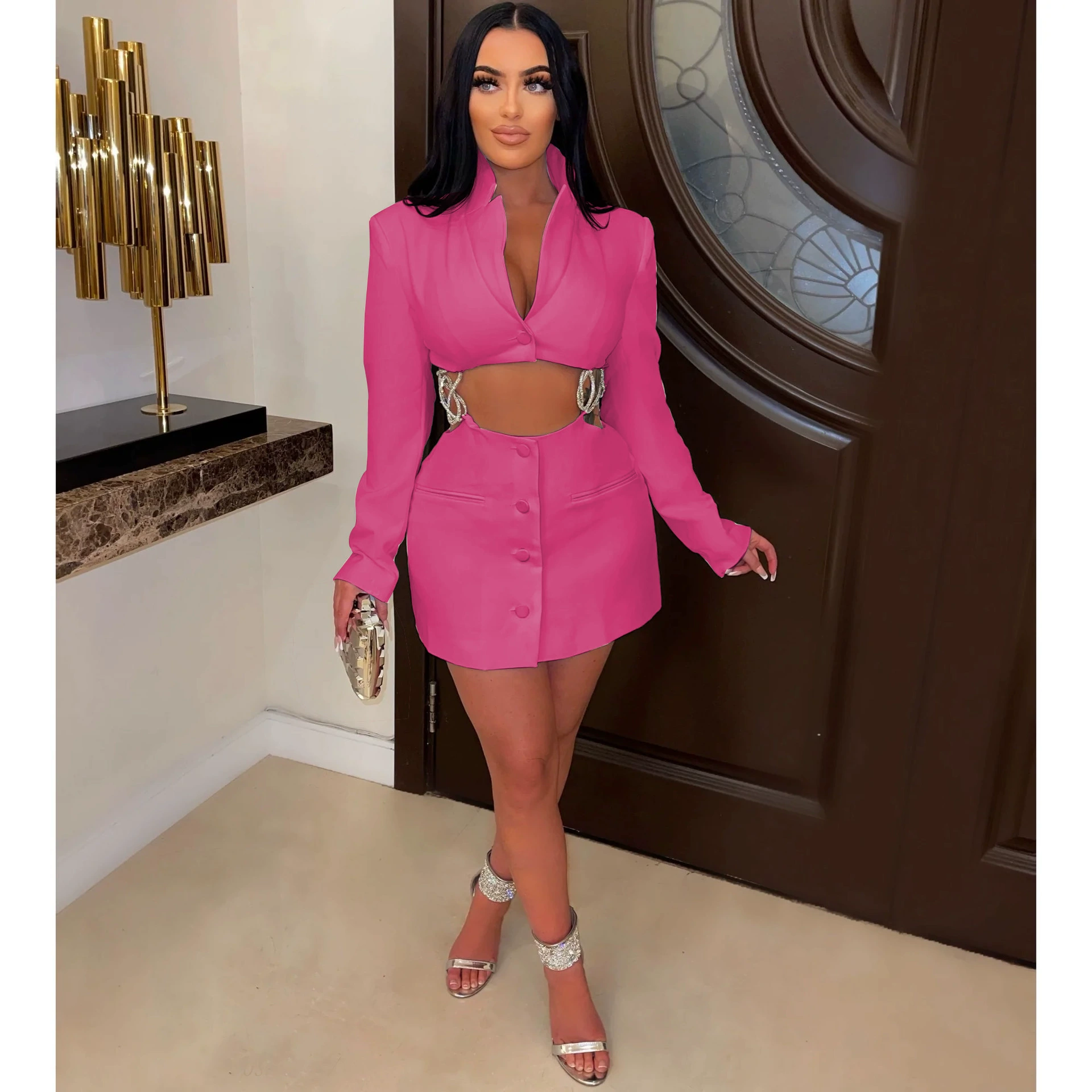 CM.YAYA Vintage Women Drawstring Patchwork Long Sleeve Notched Neck Sinlge Breasted Blazer Style Dress Sexy Party Club Dresses