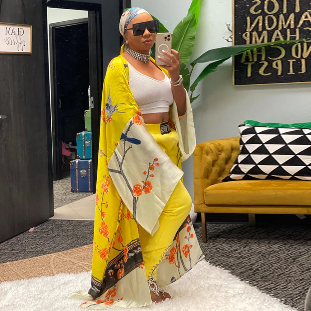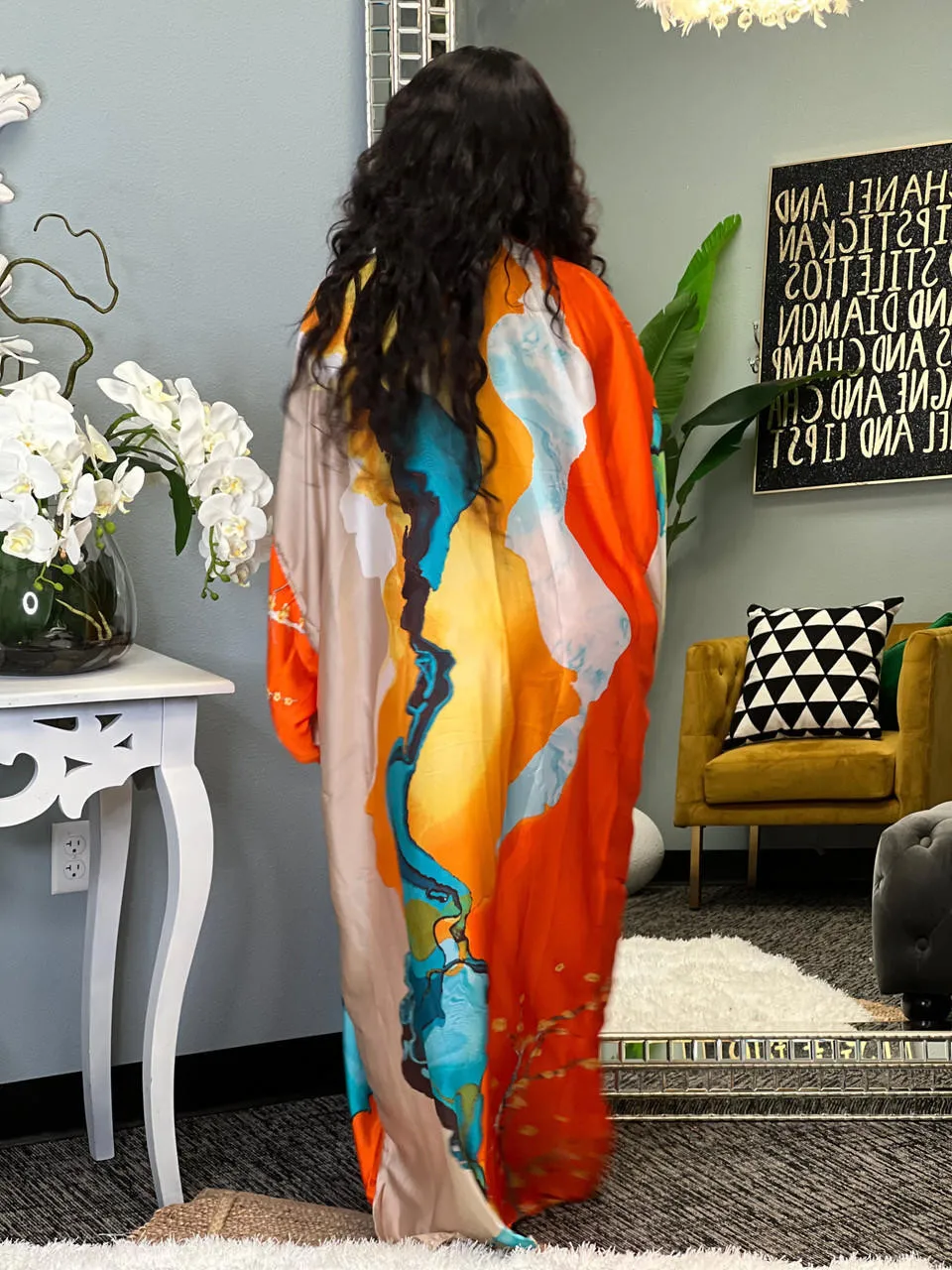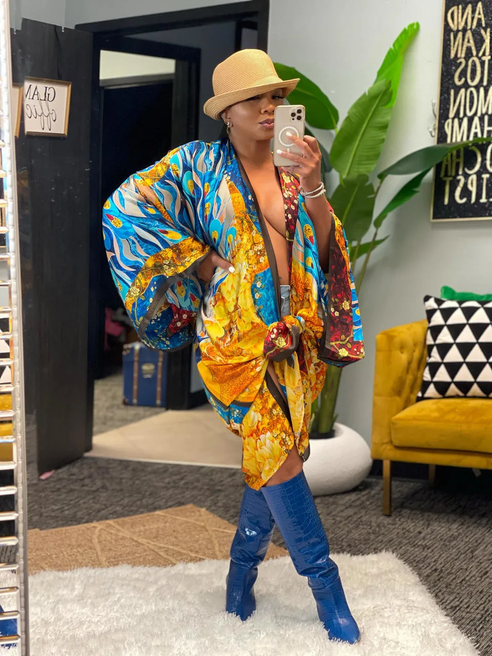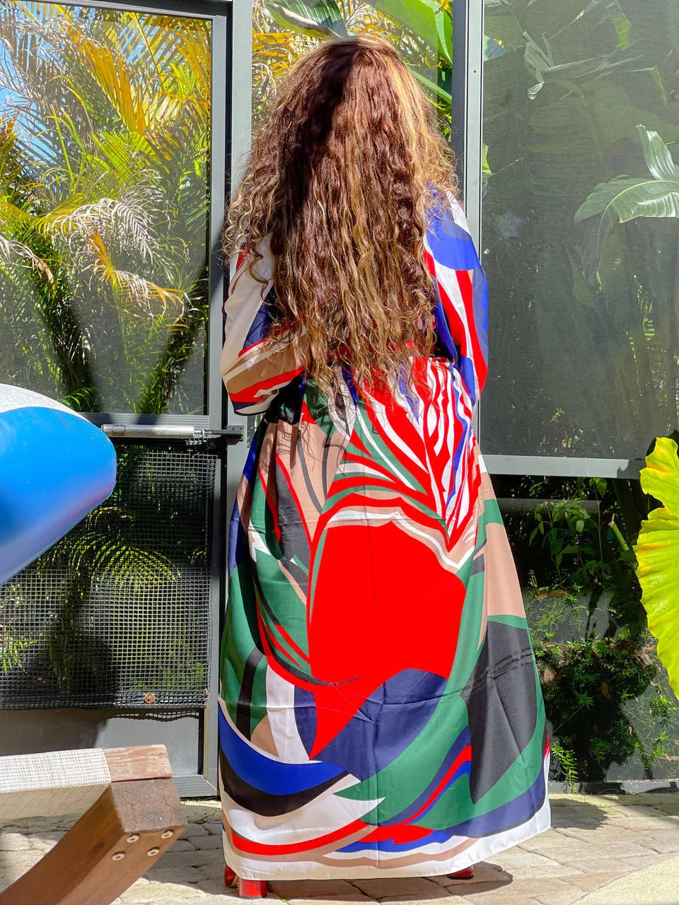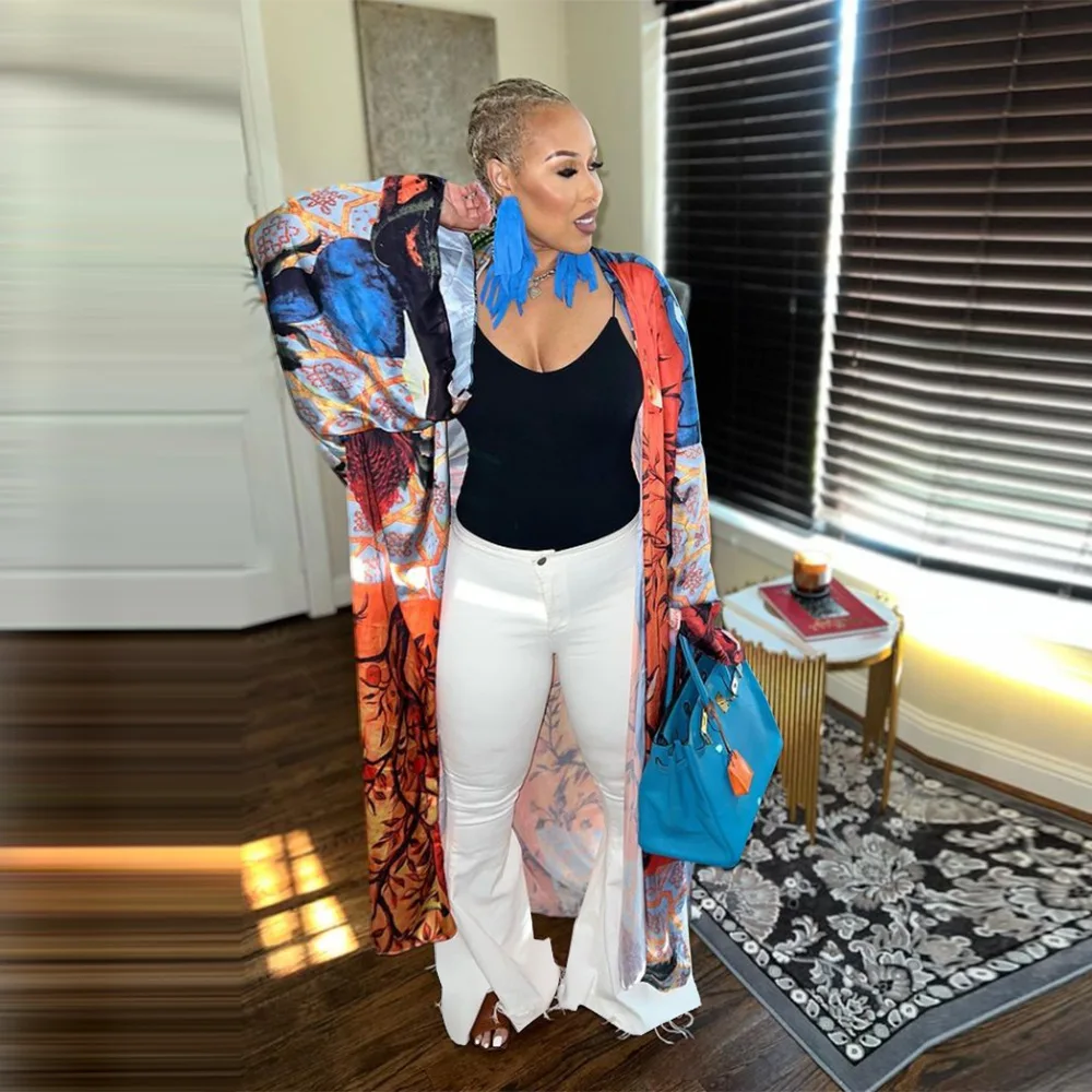 CM.YAYA Vintage Women Floral Printed Fake Silk Open Stitch Long Sleeve Loose Maxi Cover Up 2023 Summer Beach Long Robe Dresses