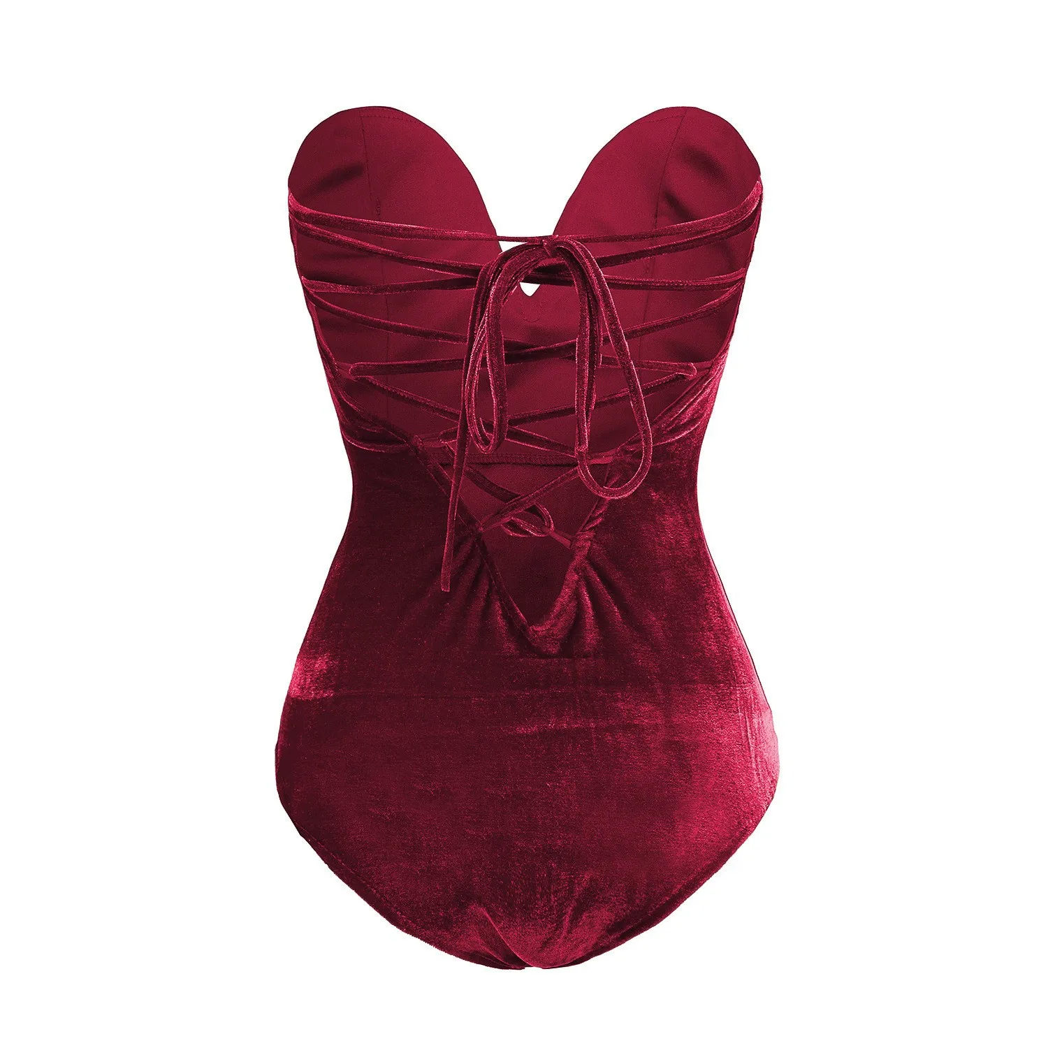 CM.YAYA Vintage Women Velvet Strapless Sleeveless Bodycon Bodysuits 2025 Spring Basic Sexy Party Evening Club Tops One Piece
