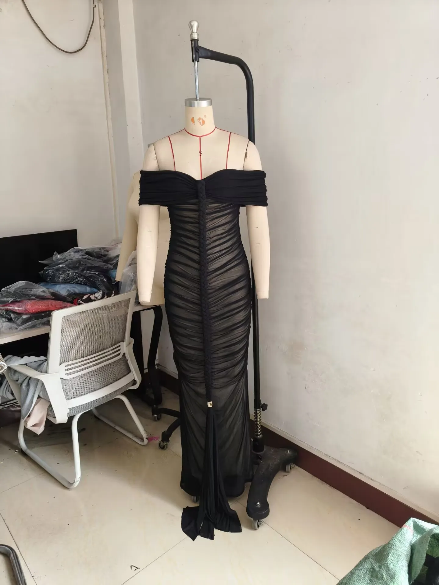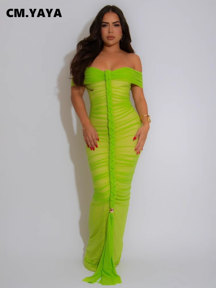 CM.YAYA Women Braid Ruched Sleeveless Slash Neck Bodycon Long Maxi Dress 2025 Summer Party Birthday Sweet Vestido Sexy Dresses