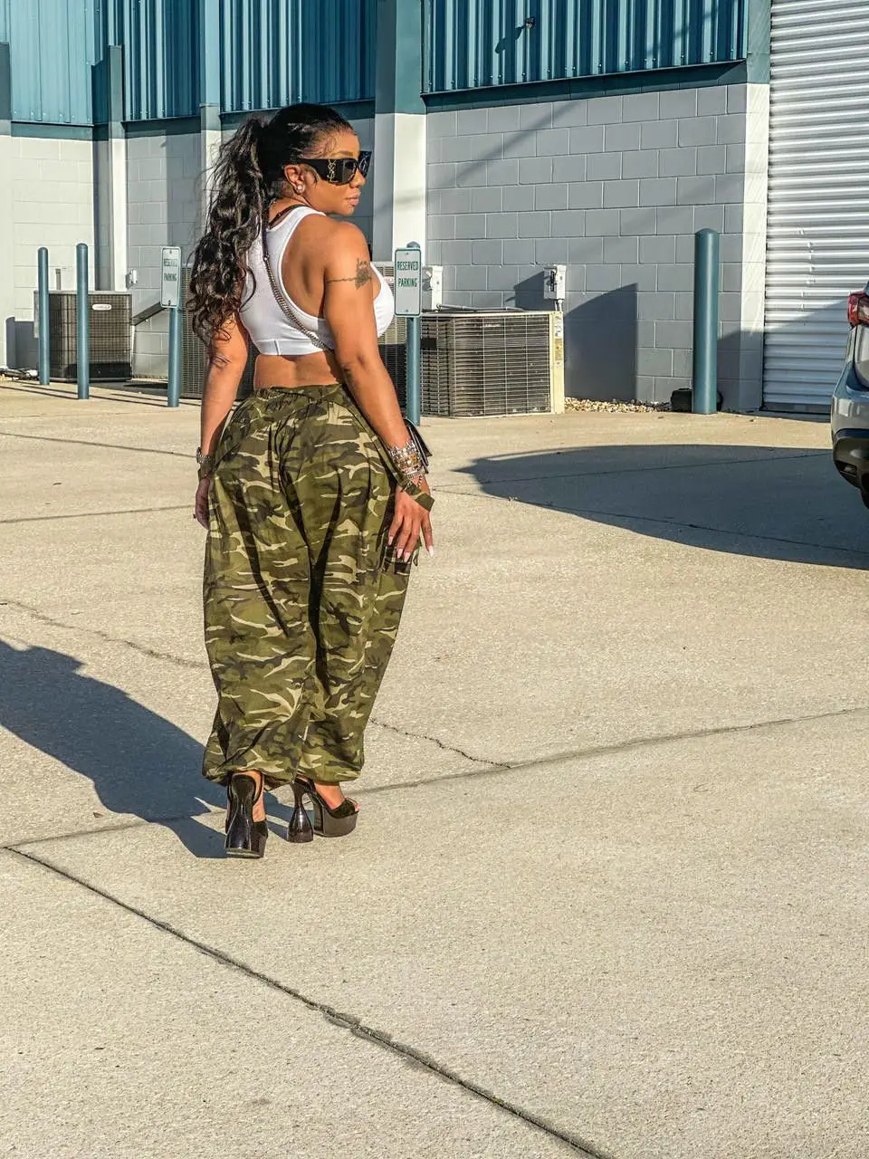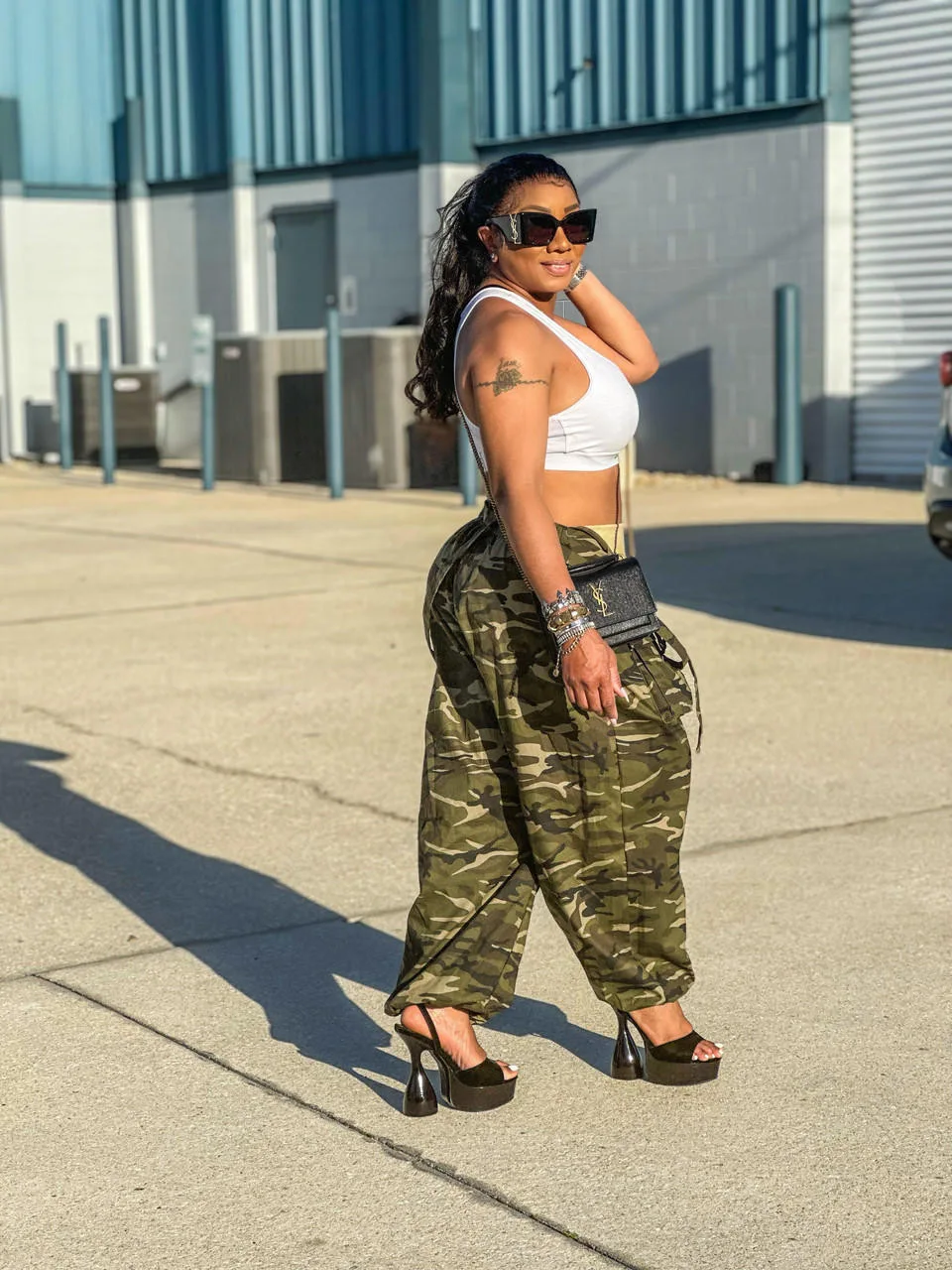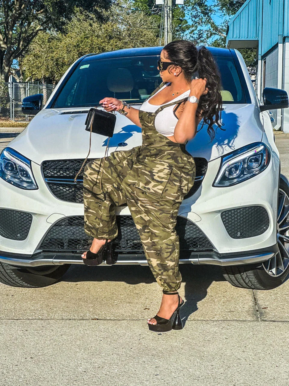 CM.YAYA Women Camouflage Spaghetti Strap Pocket Front Cargo Romper Pants Sleeveless Jumpsuit Street INS Playsuit One Piece Set