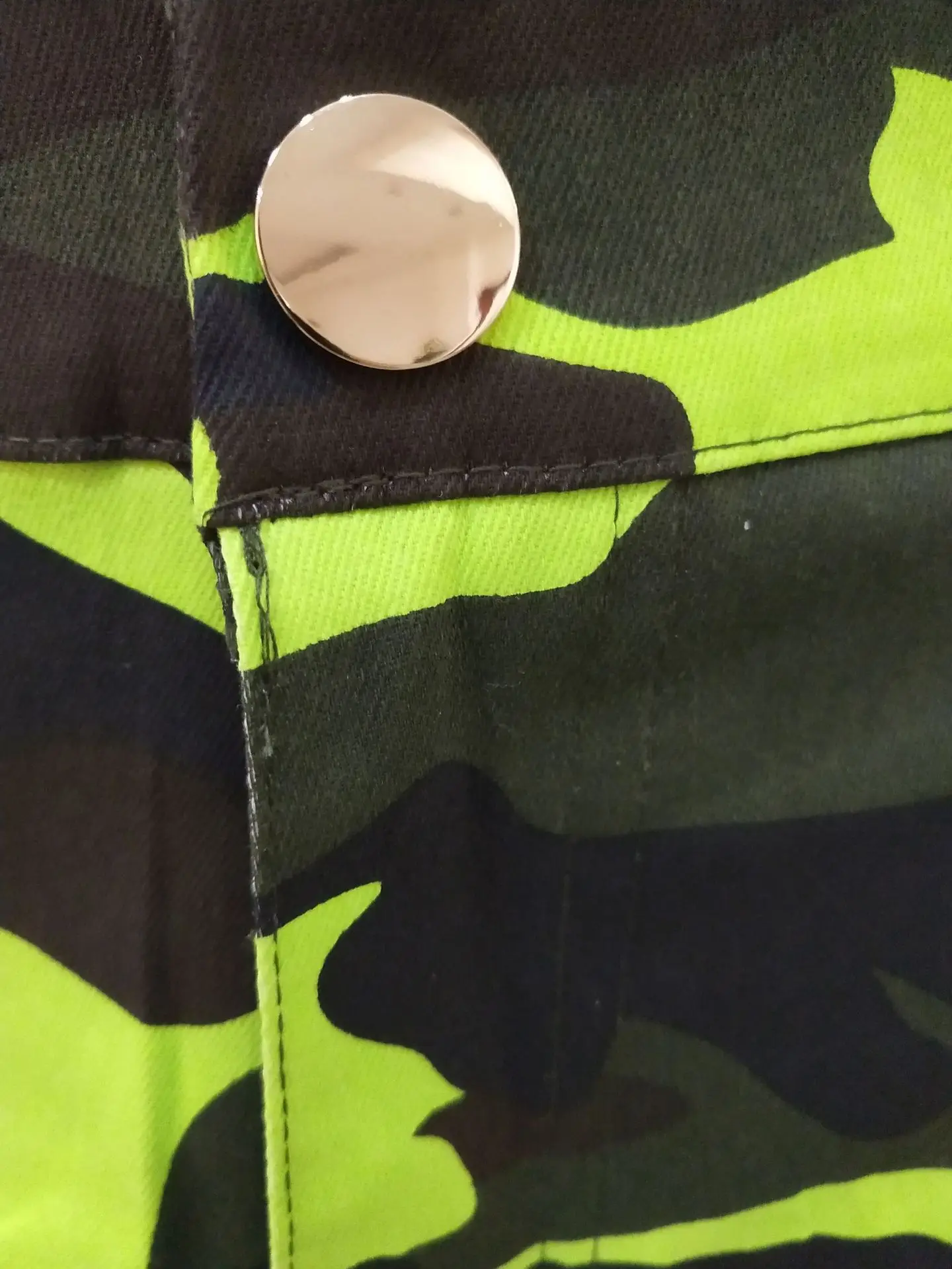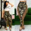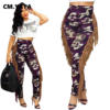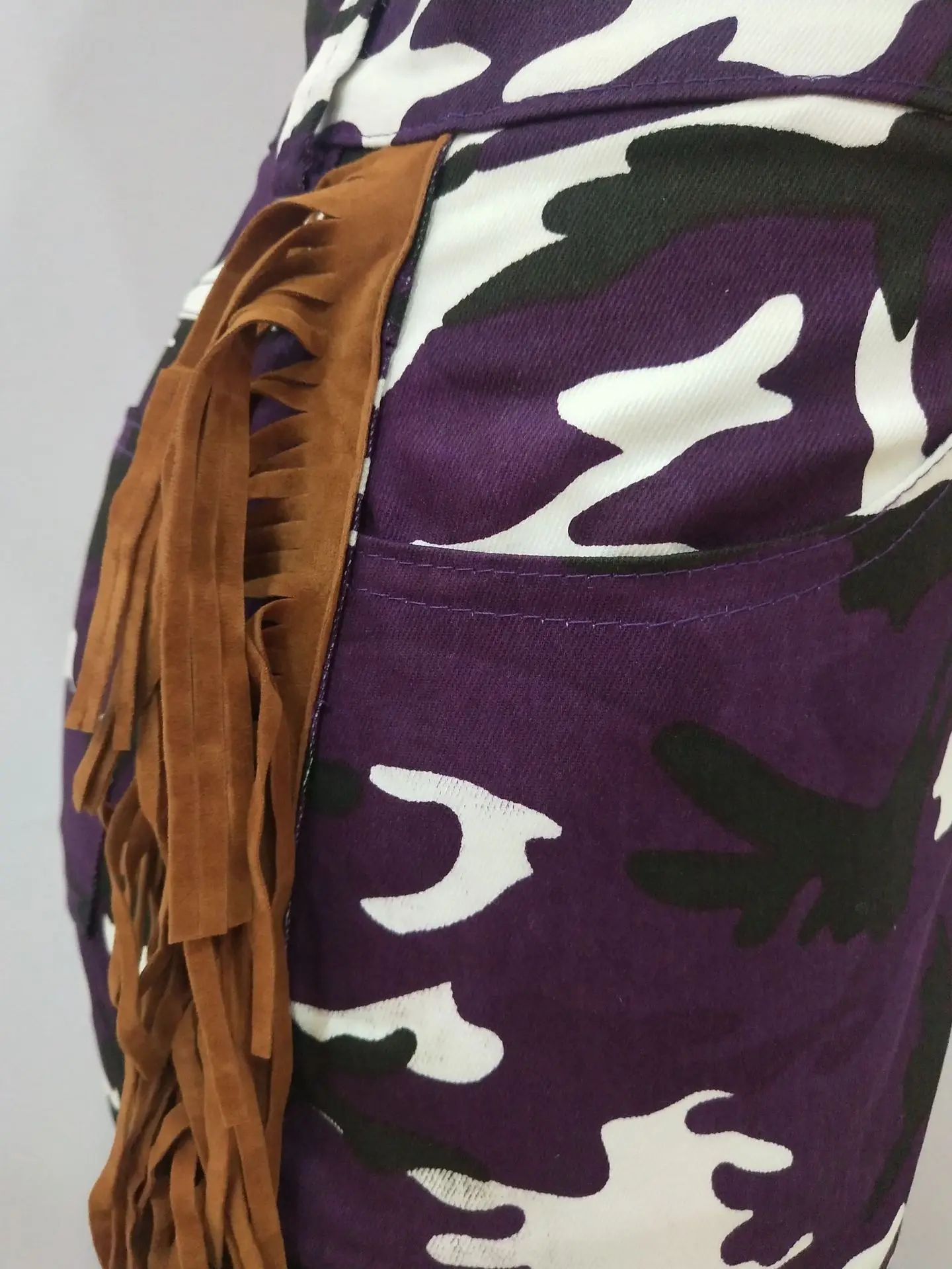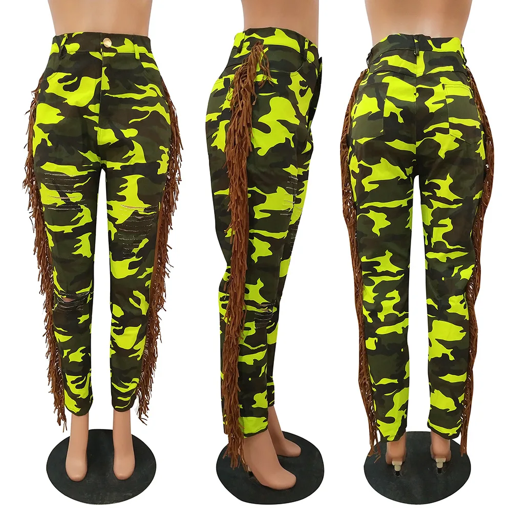 CM.YAYA Women Camouflage Tassel Side Splicing Zipper Fly Ripped Jeans Elegant Fashion High Waist Denim Trousers Pants