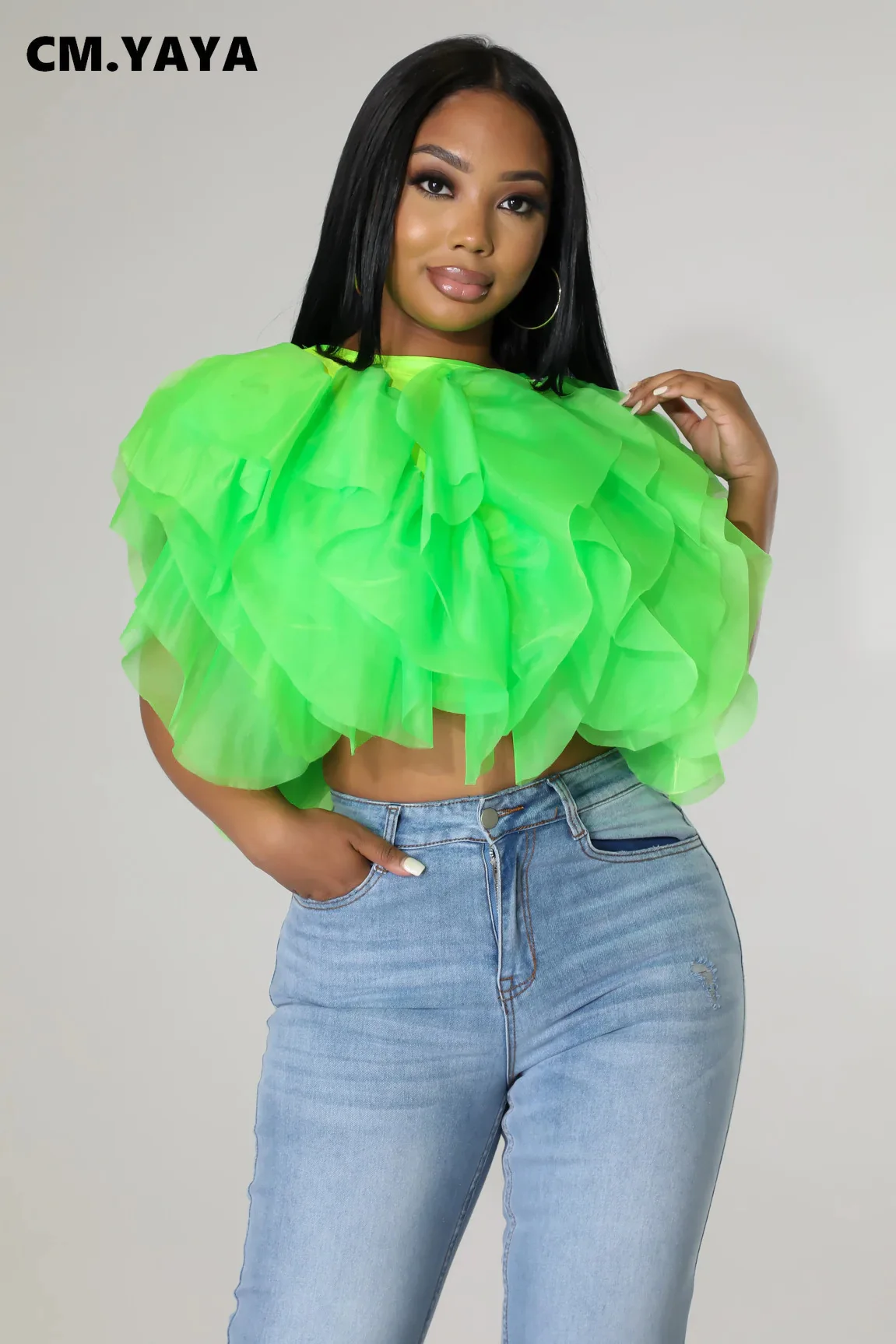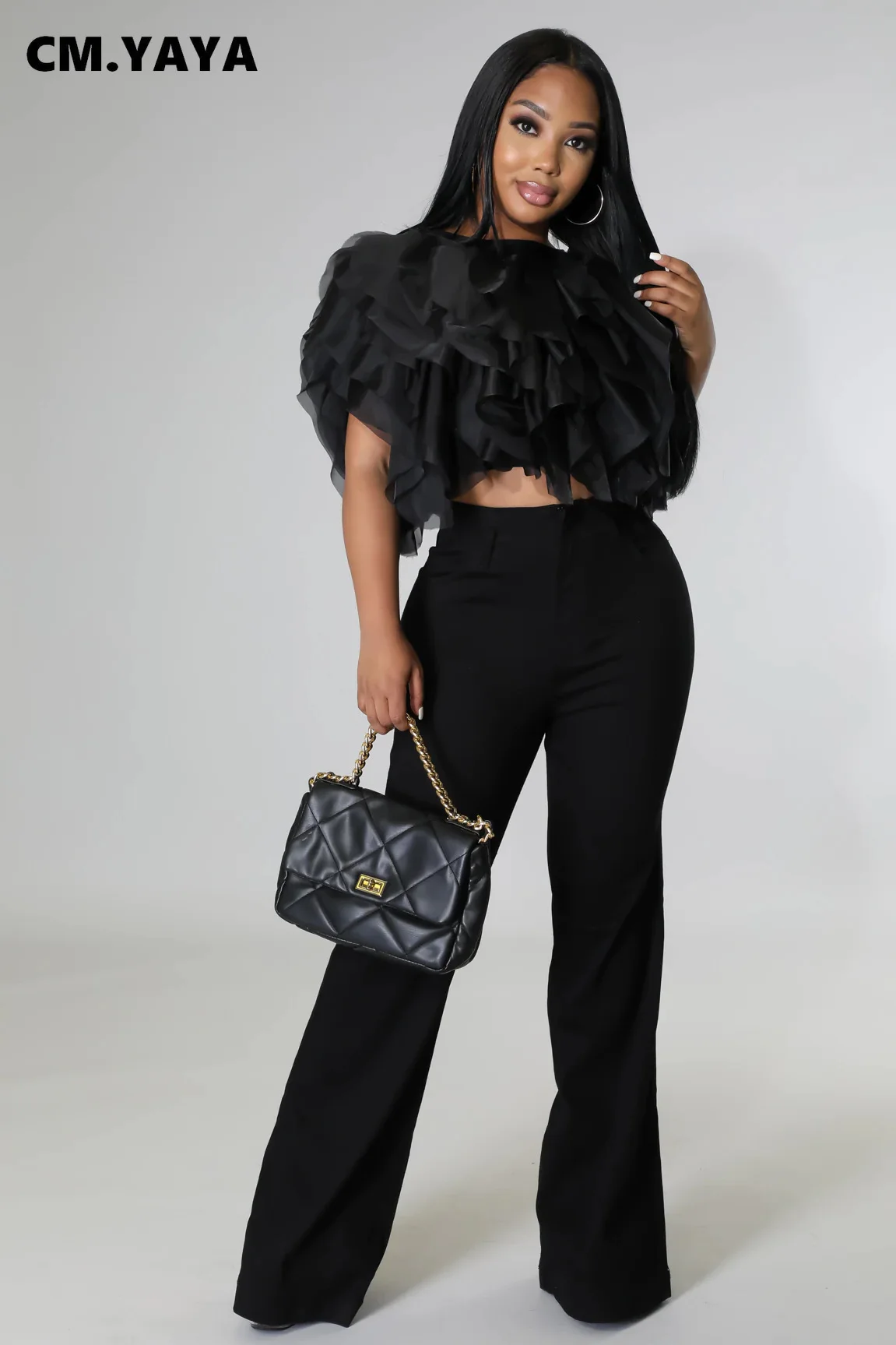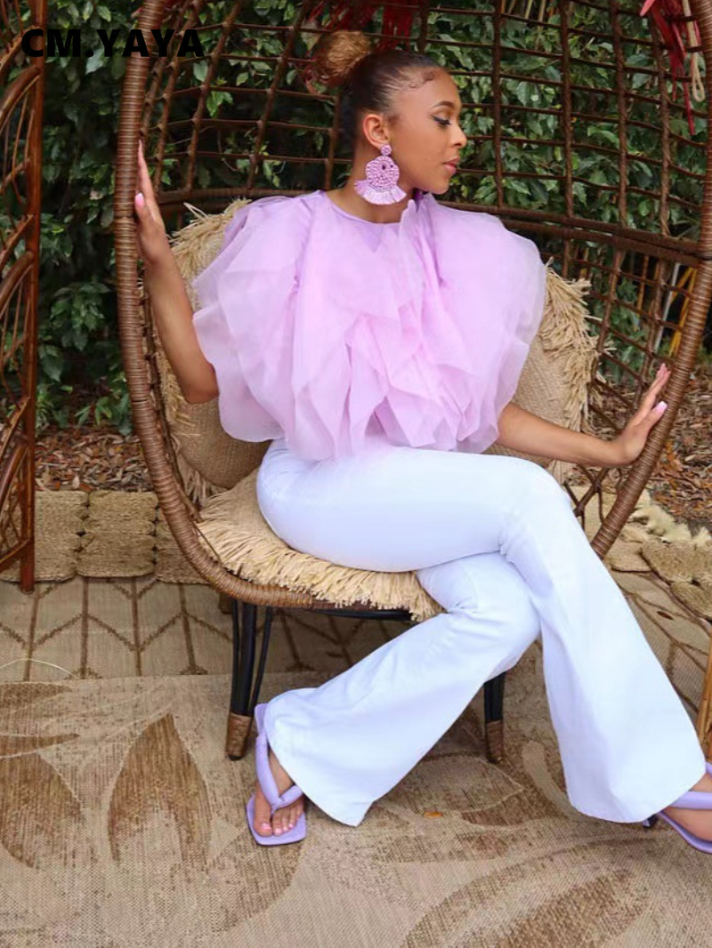 CM.YAYA Women Chiffon Cape Style Shirt Top 2022 Summer Streetwear Elegant Chic Blouse