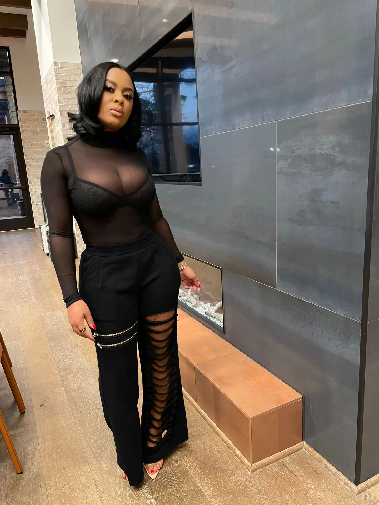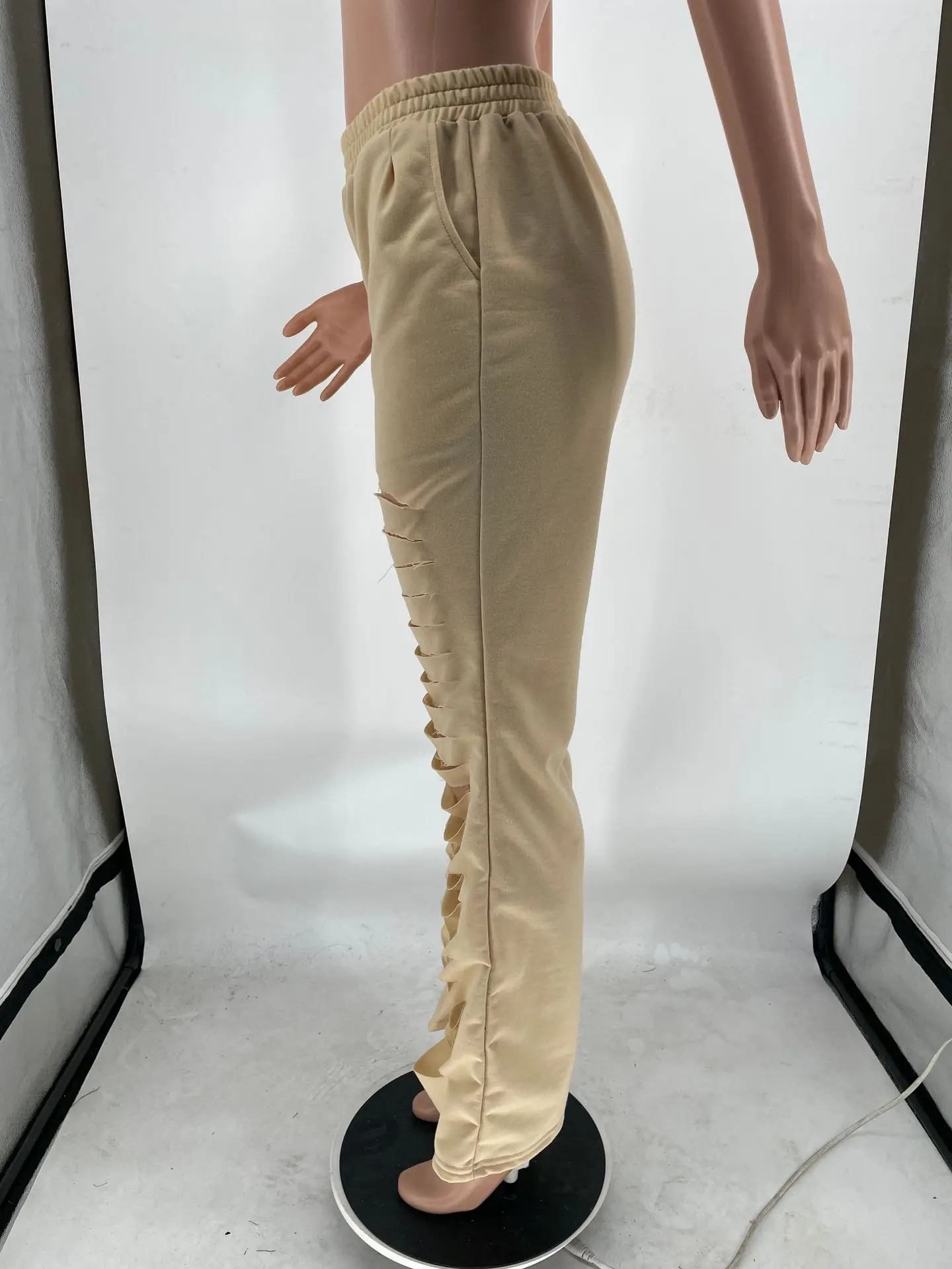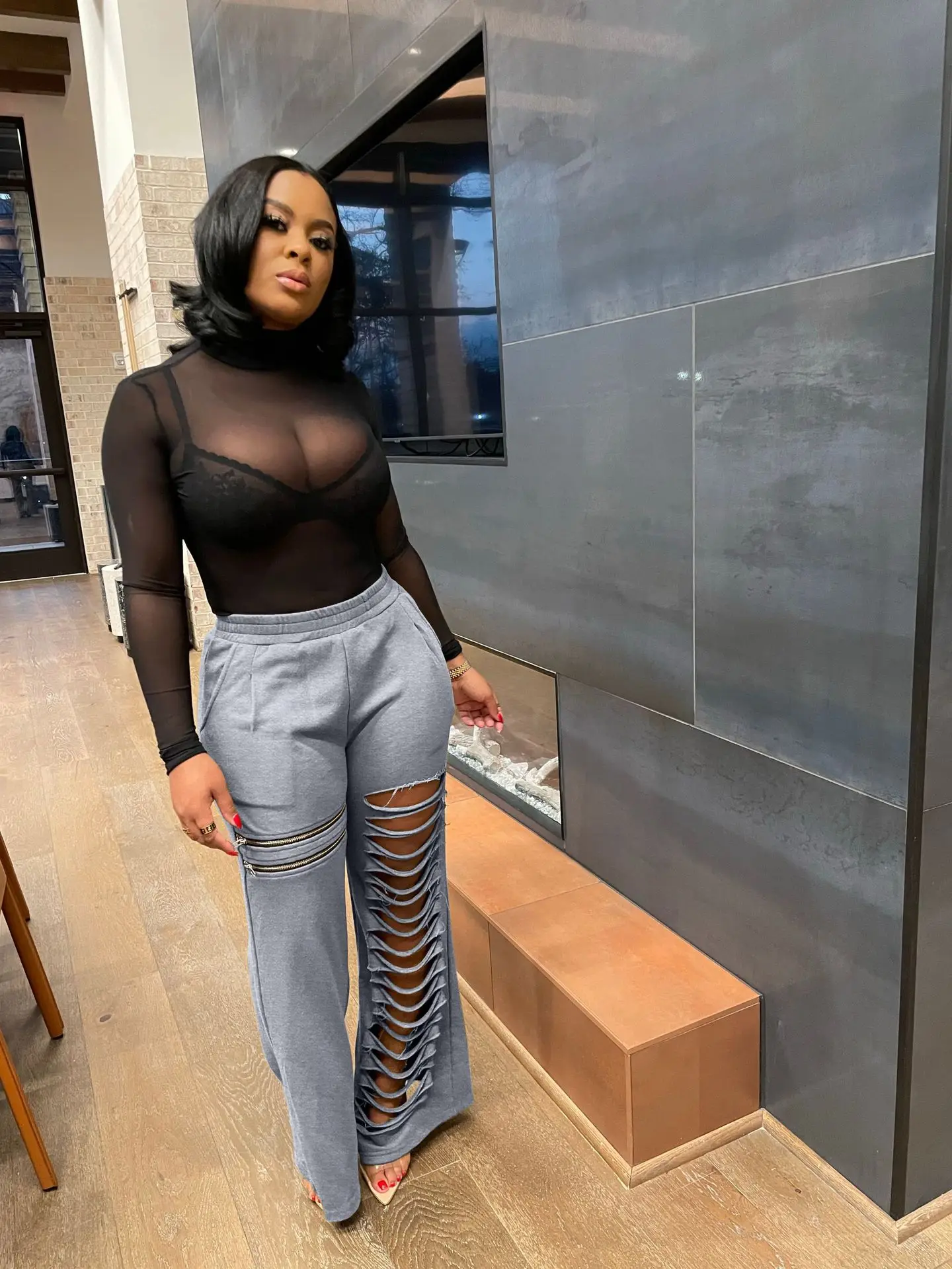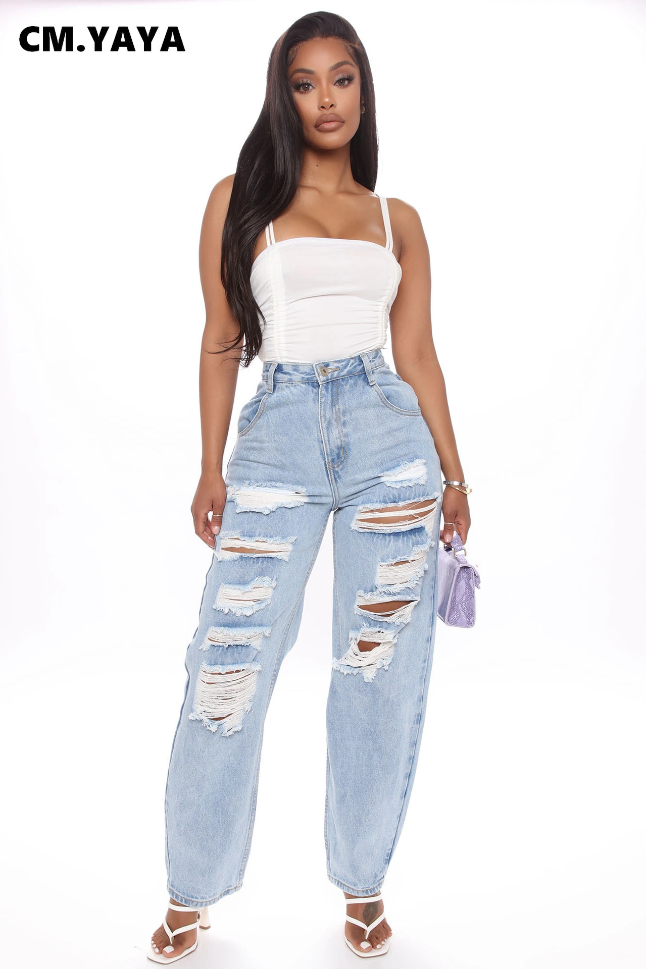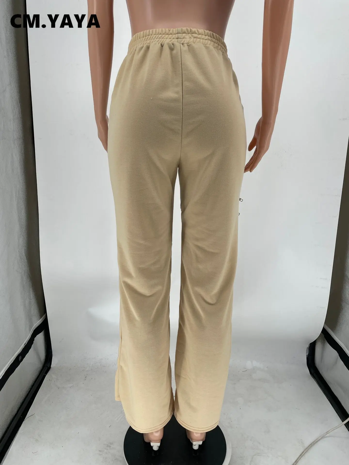 CM.YAYA Women Cut Out Hole Ripped Zipper Patchwork Straight Pants 2022 Summer Spring Streetwear Sport Basic Fashion Trousers