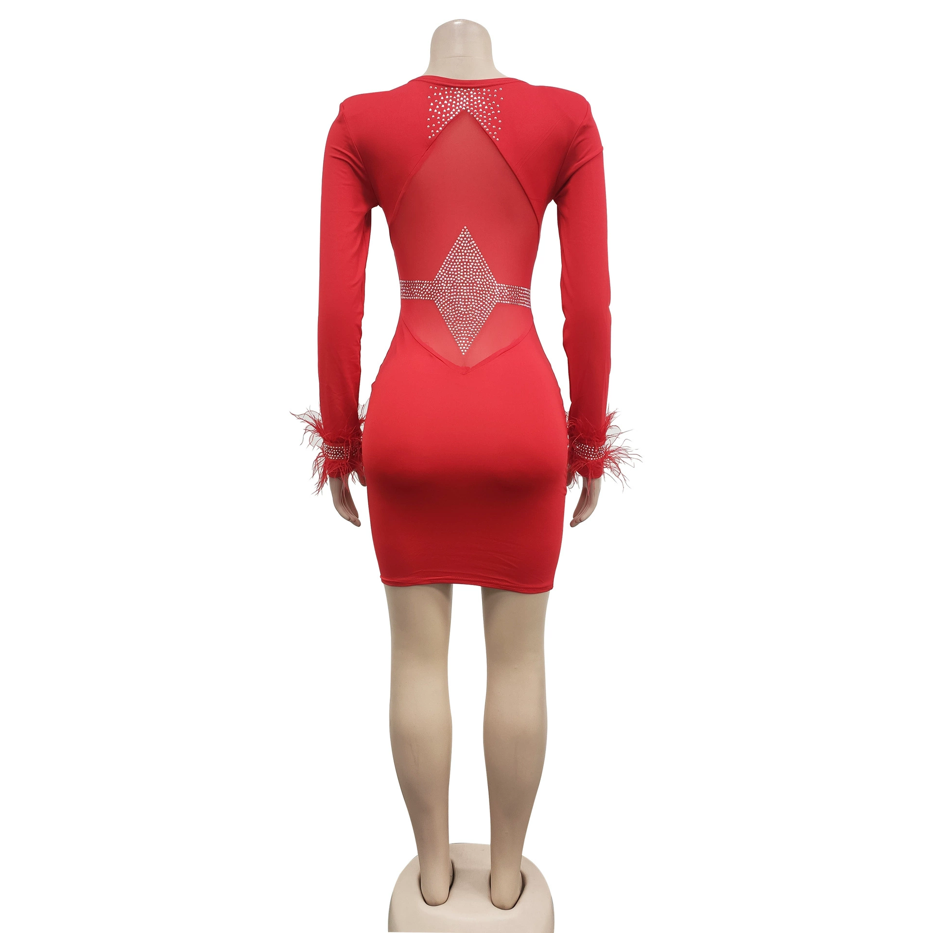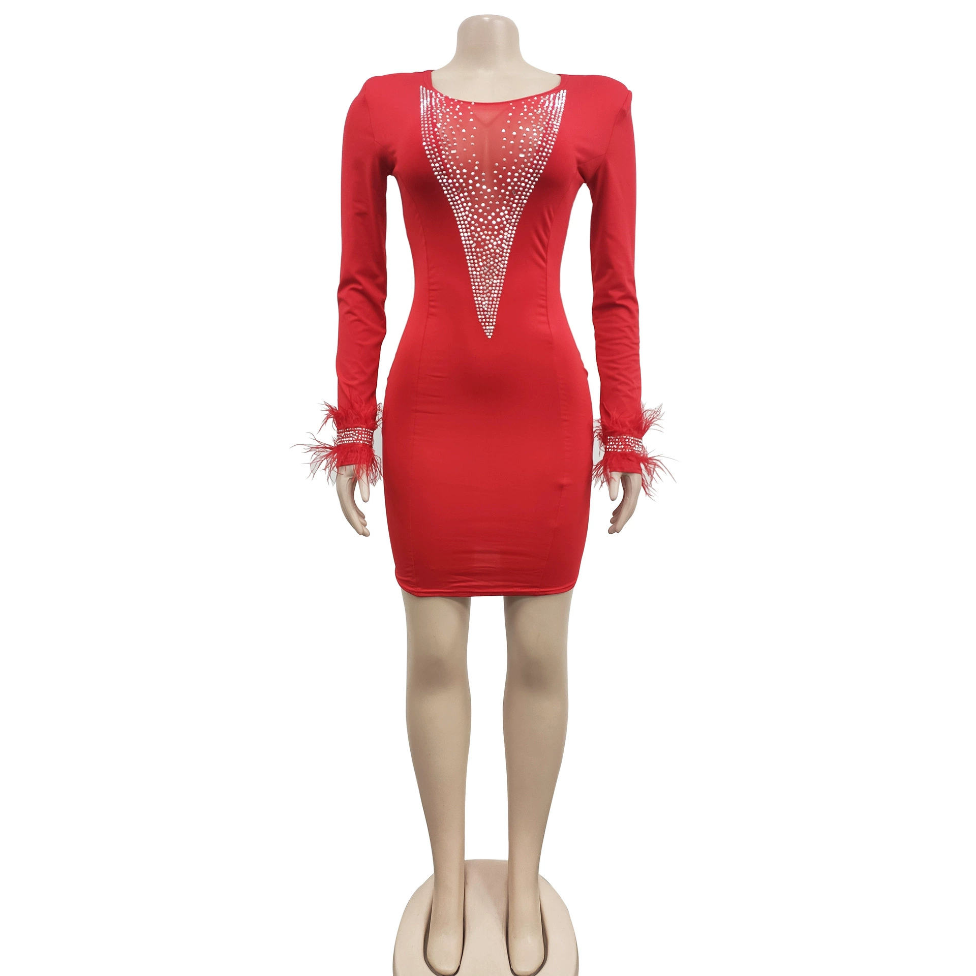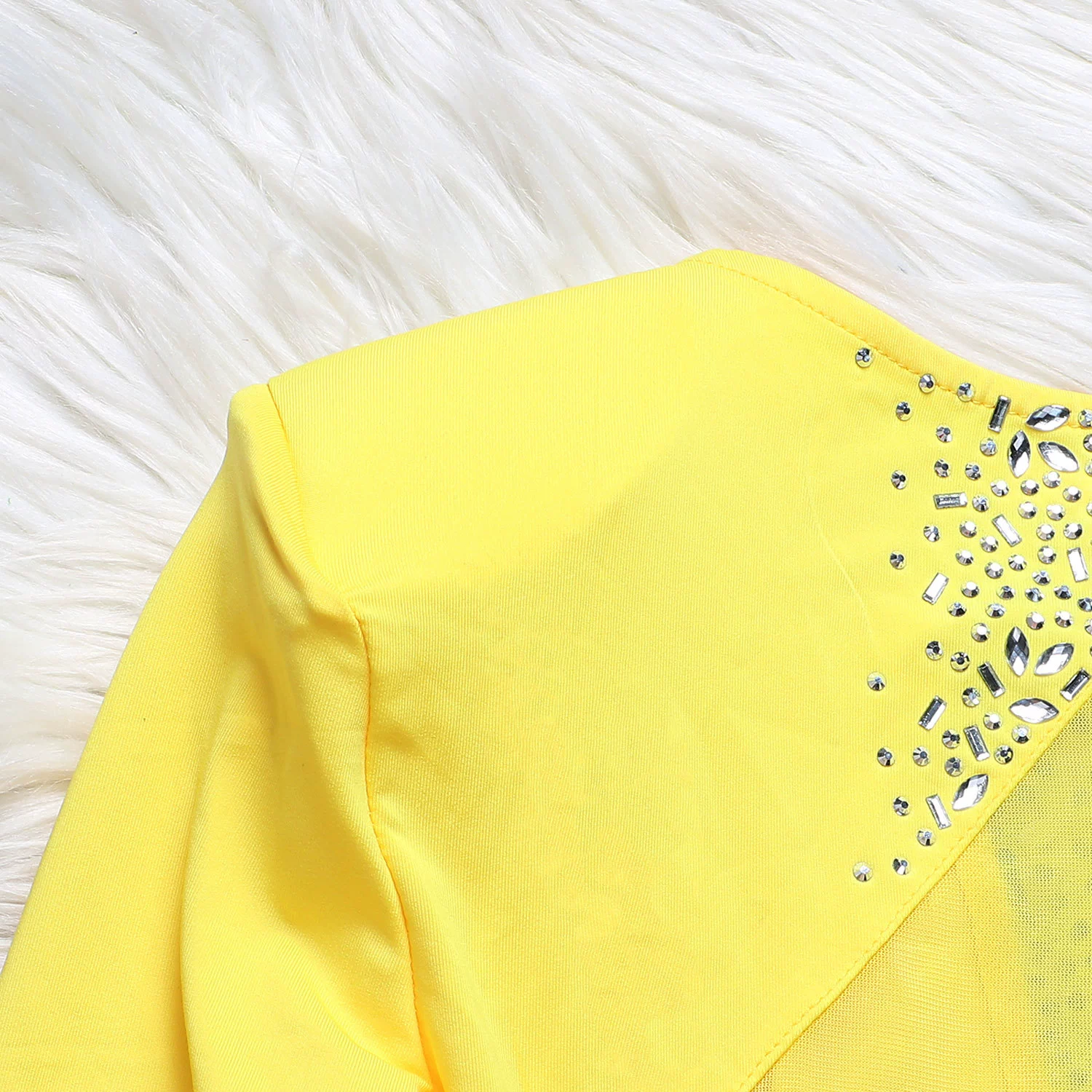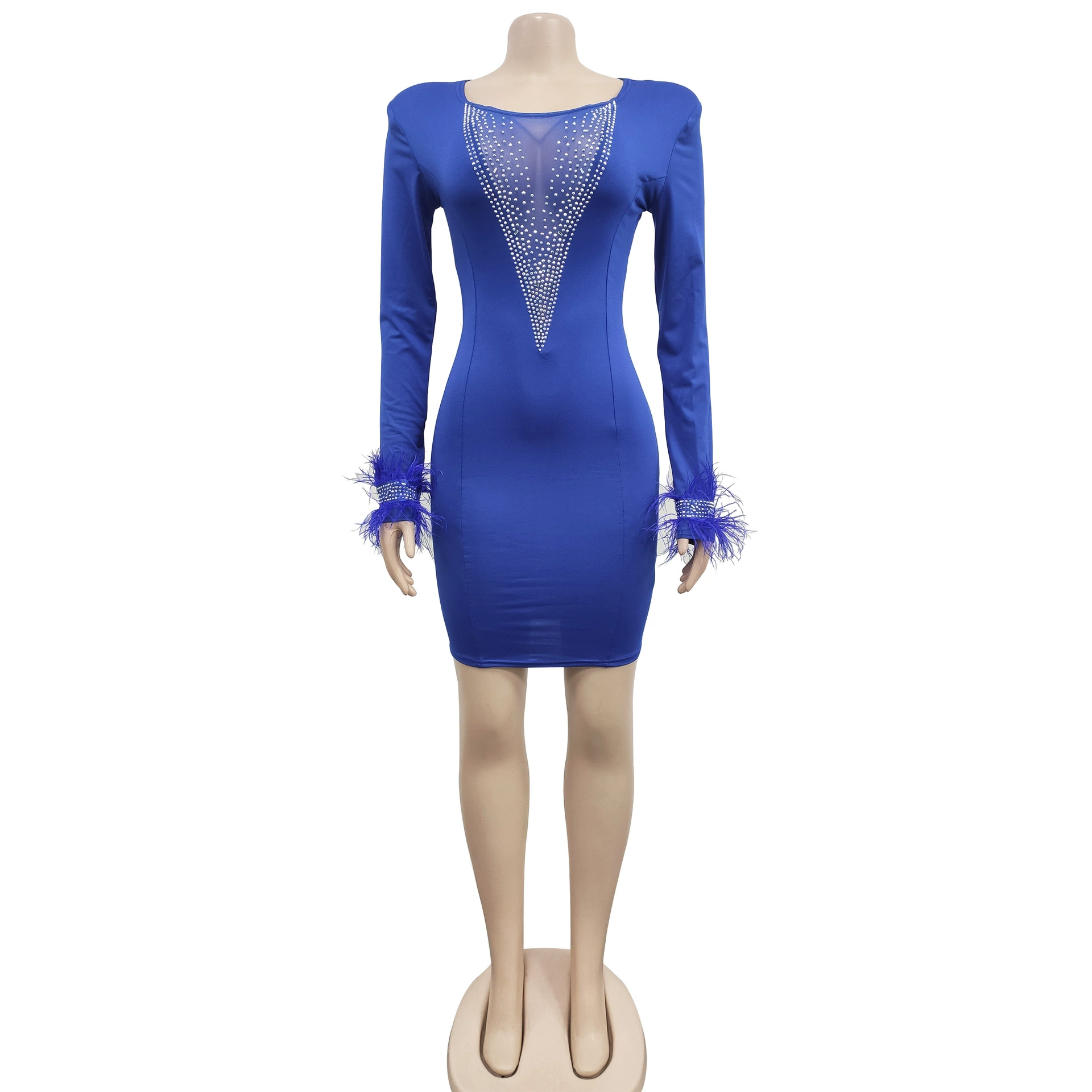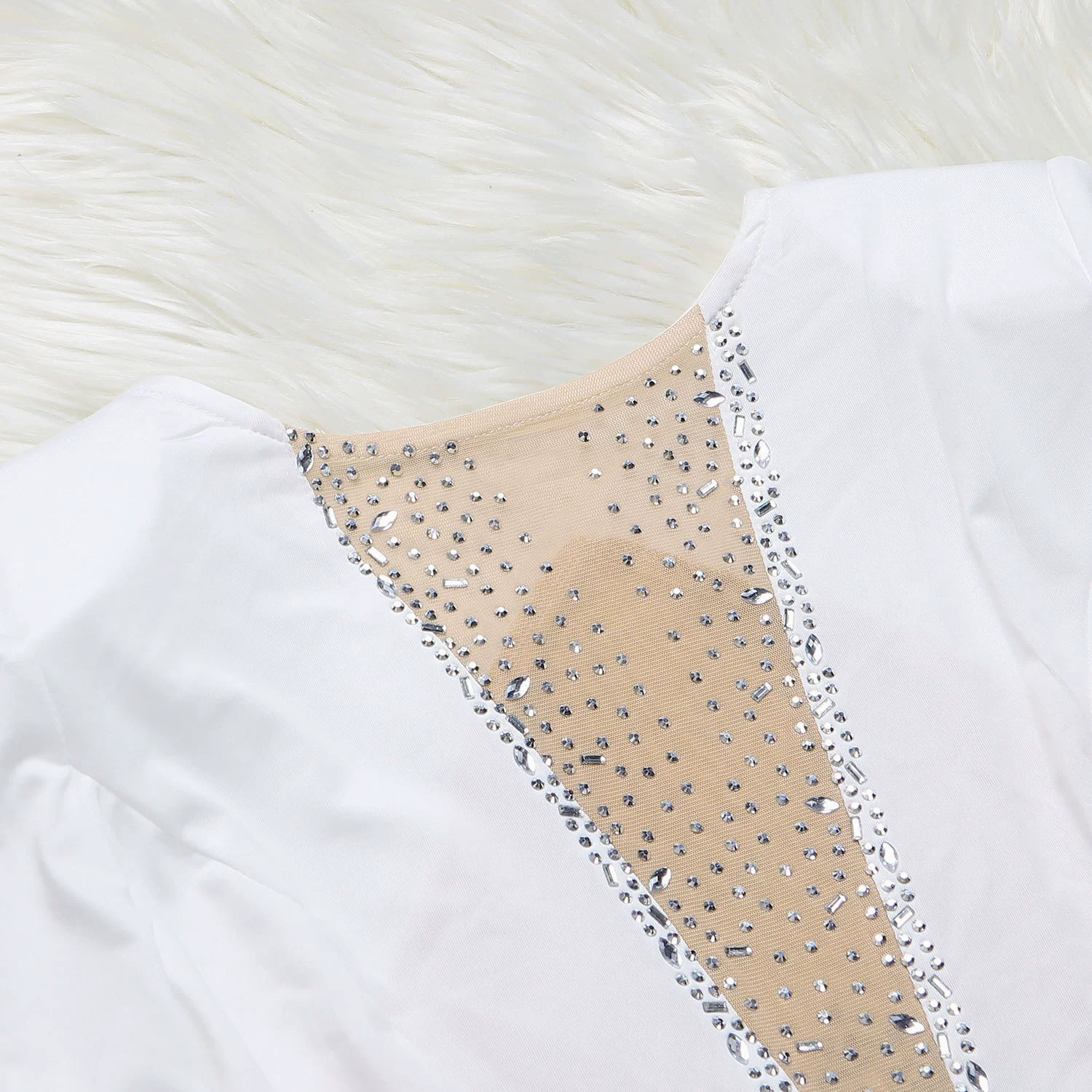 CM.YAYA Women Diamonds Hot Drill Mesh See Though Patchwork Long Sleeve Bodycon Midi Mini Dress Sexy Party Evening Prom Dresses