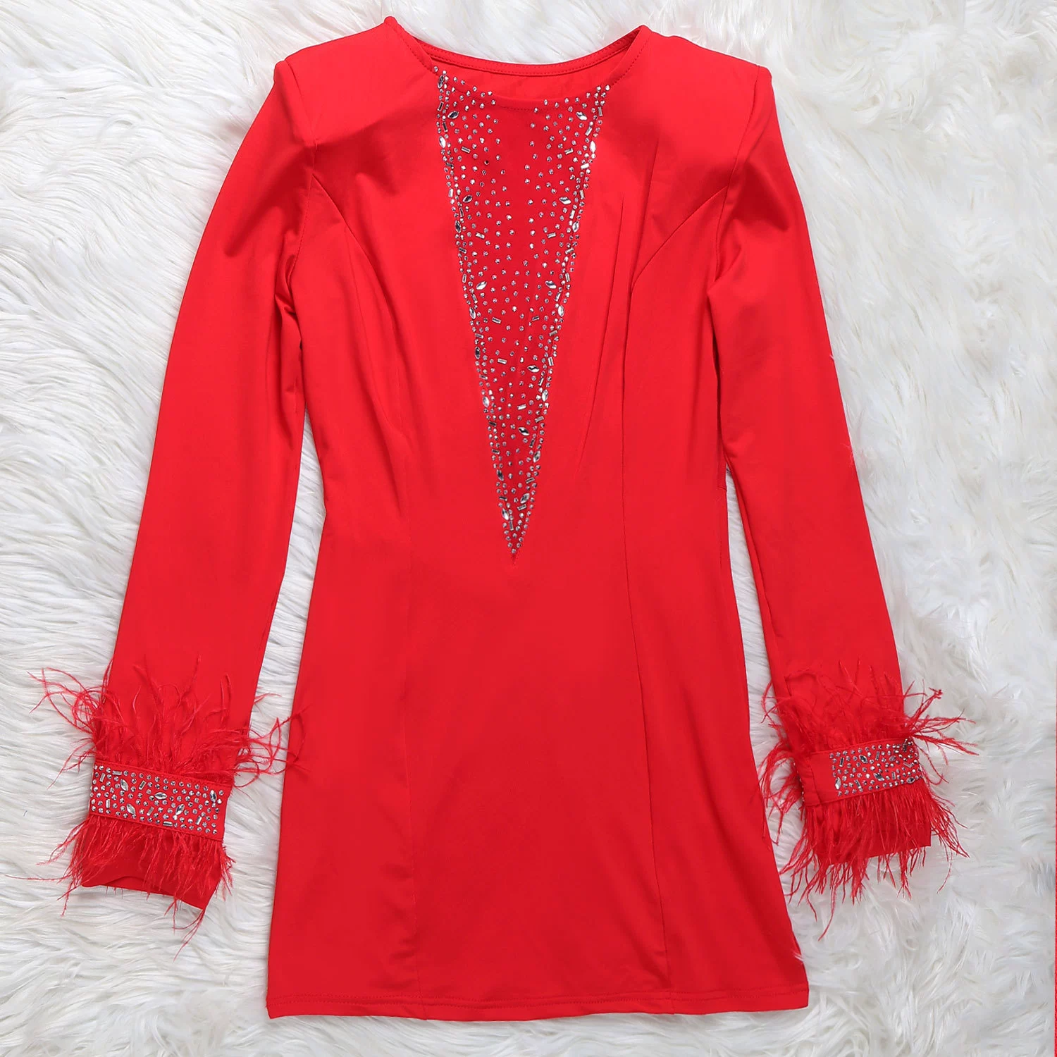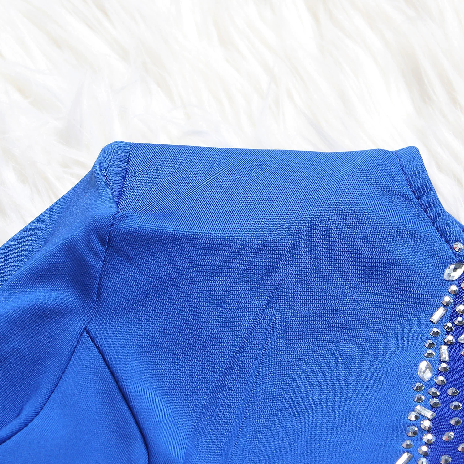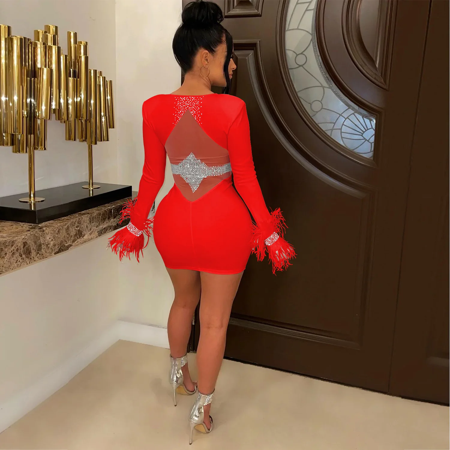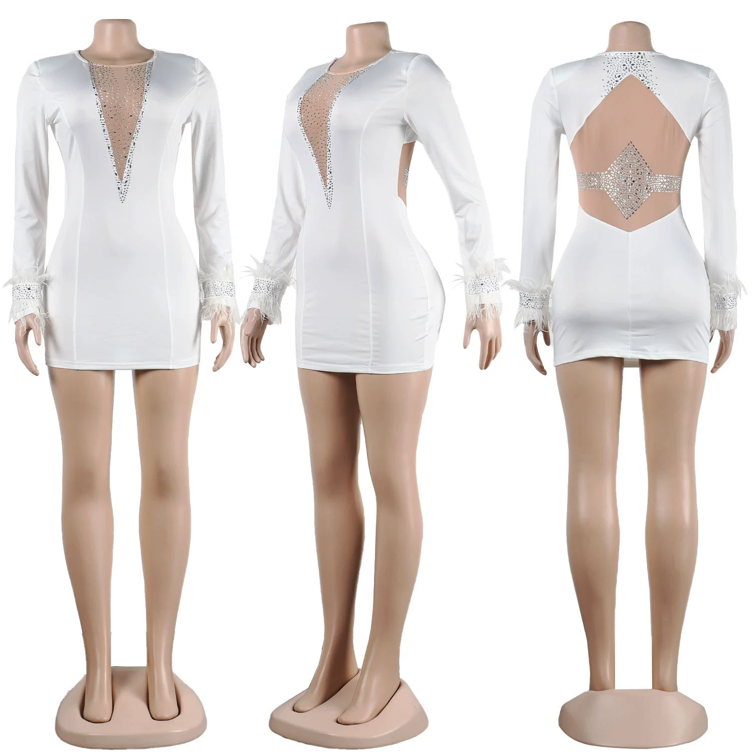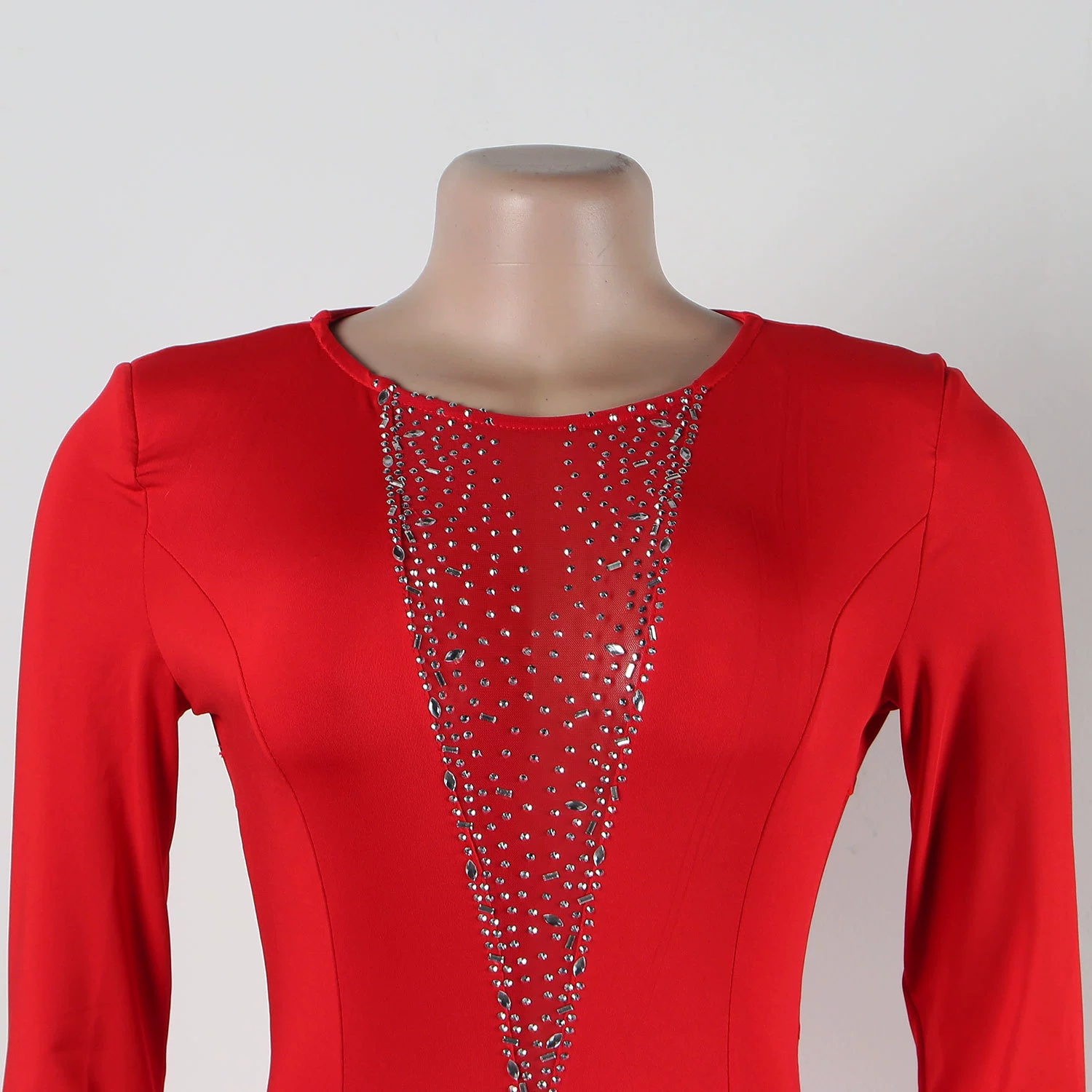 CM.YAYA Women Diamonds Hot Drill Mesh See Though Patchwork Long Sleeve Bodycon Midi Mini Dress Sexy Party Evening Prom Dresses