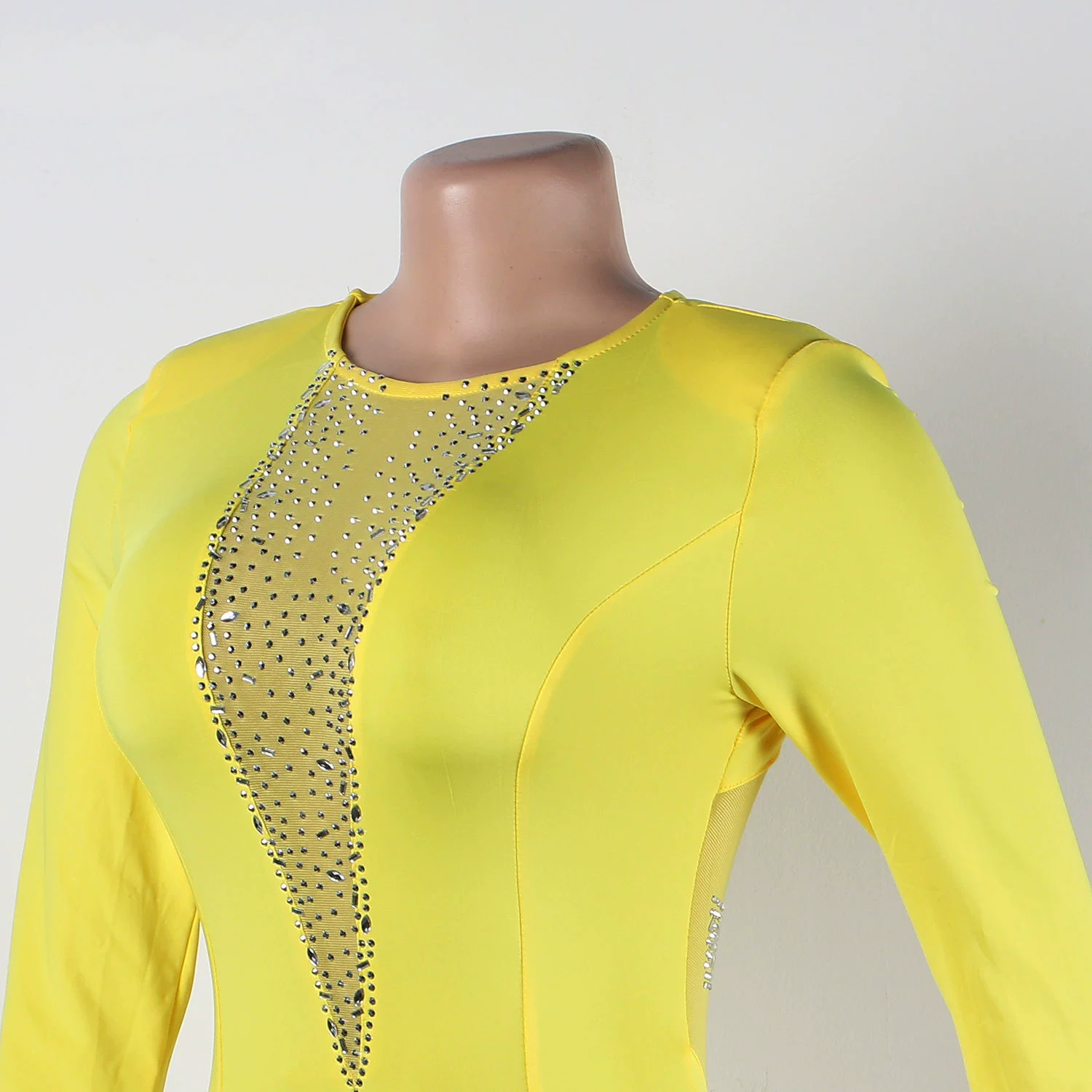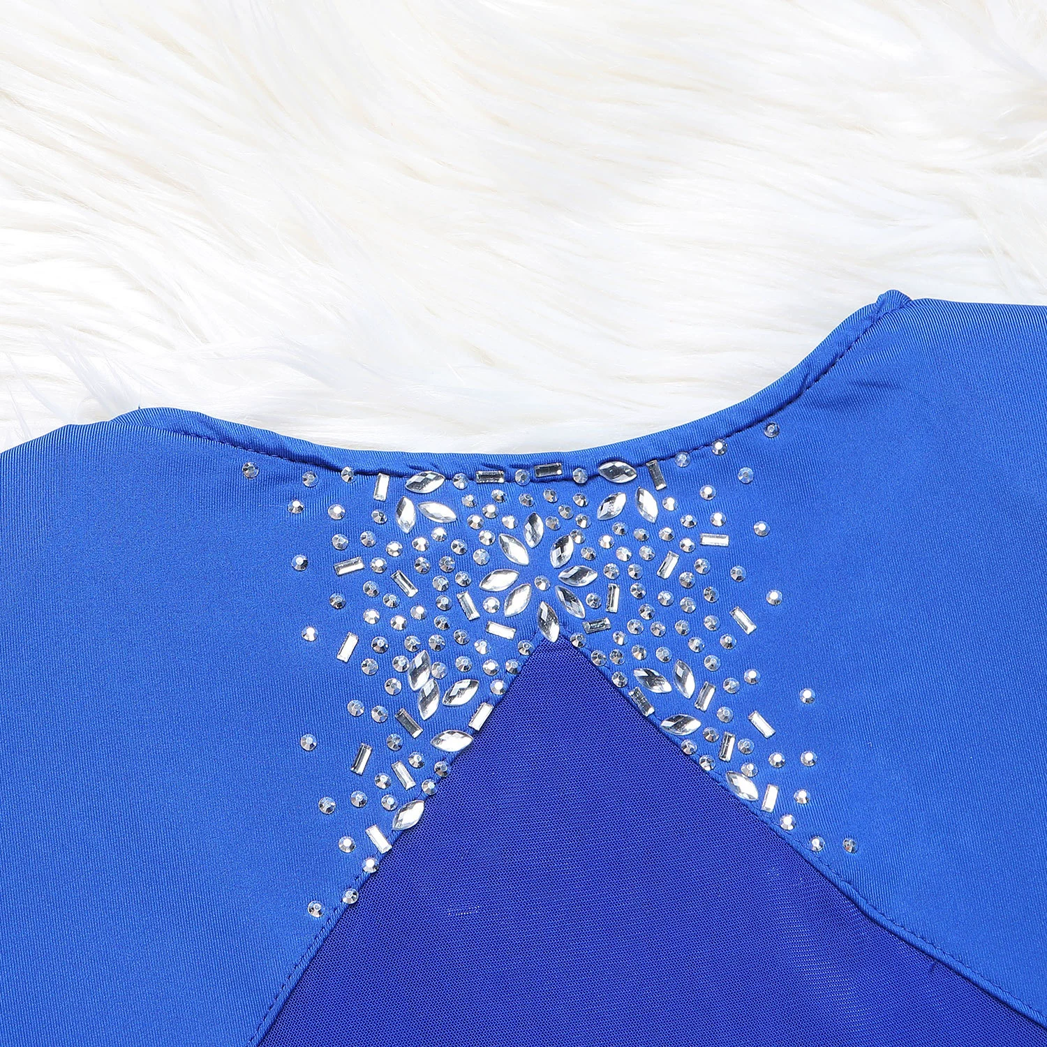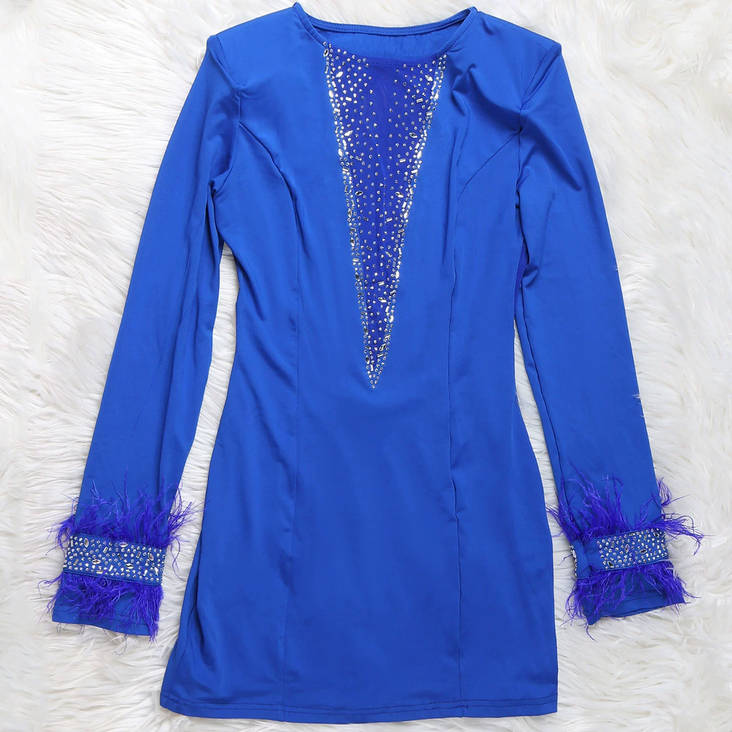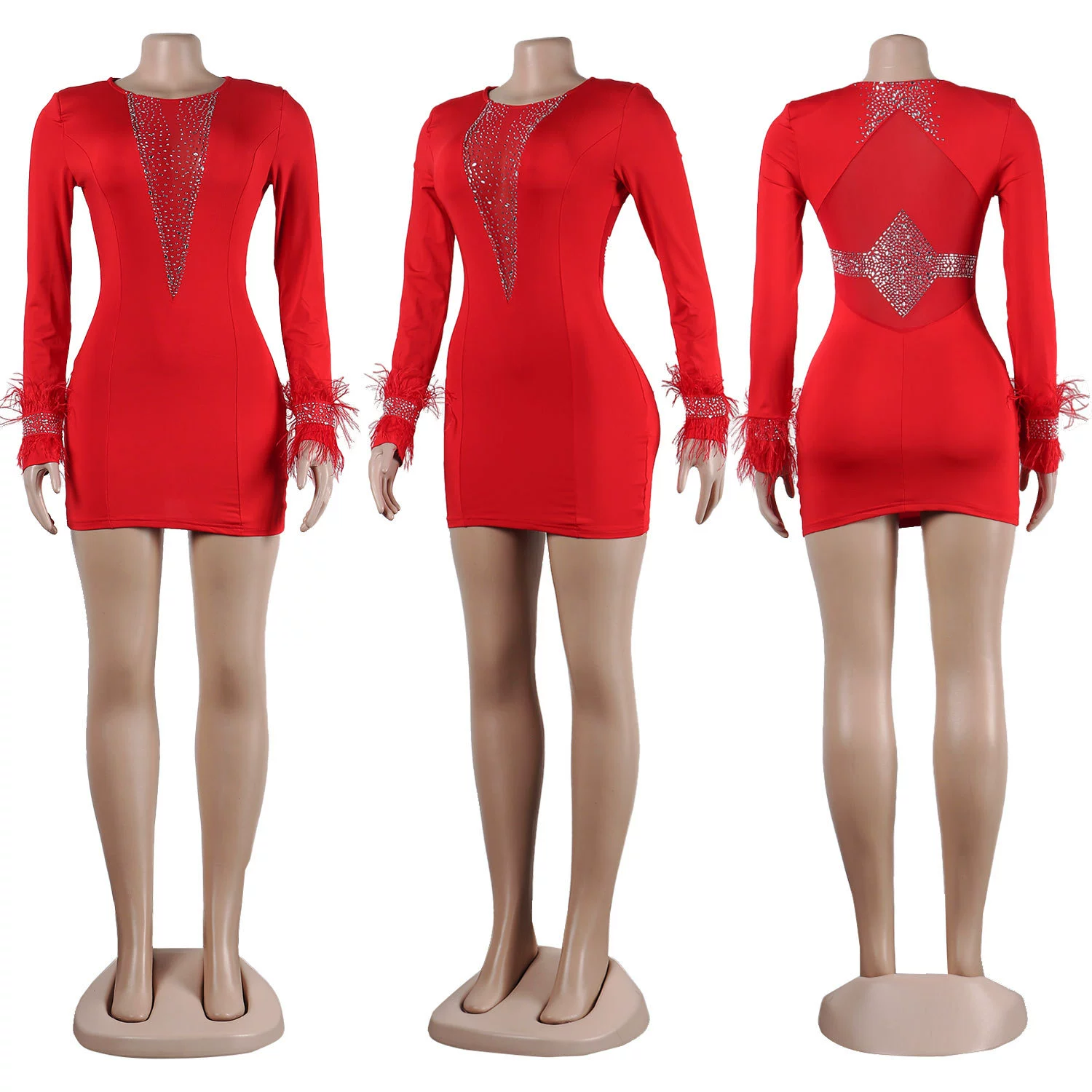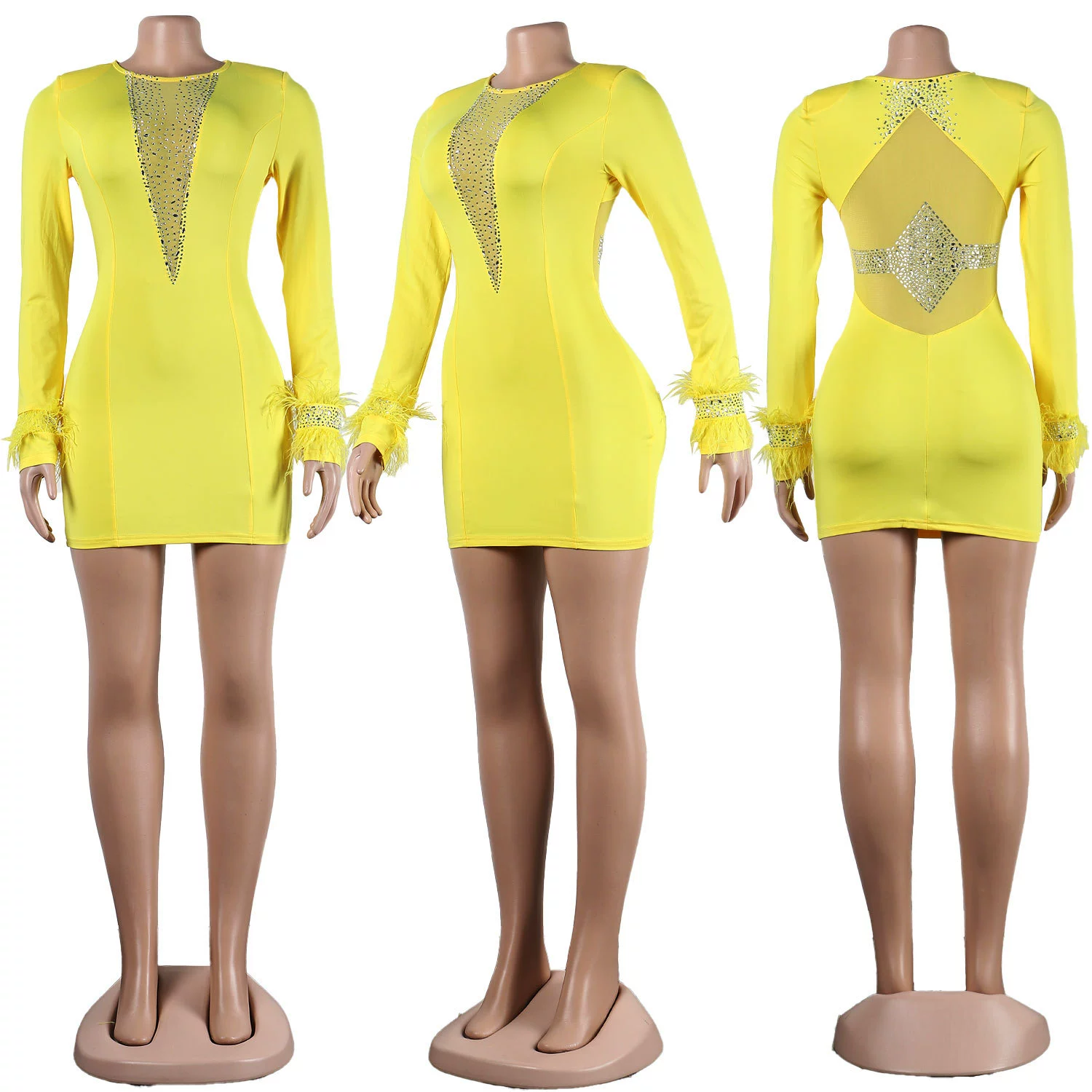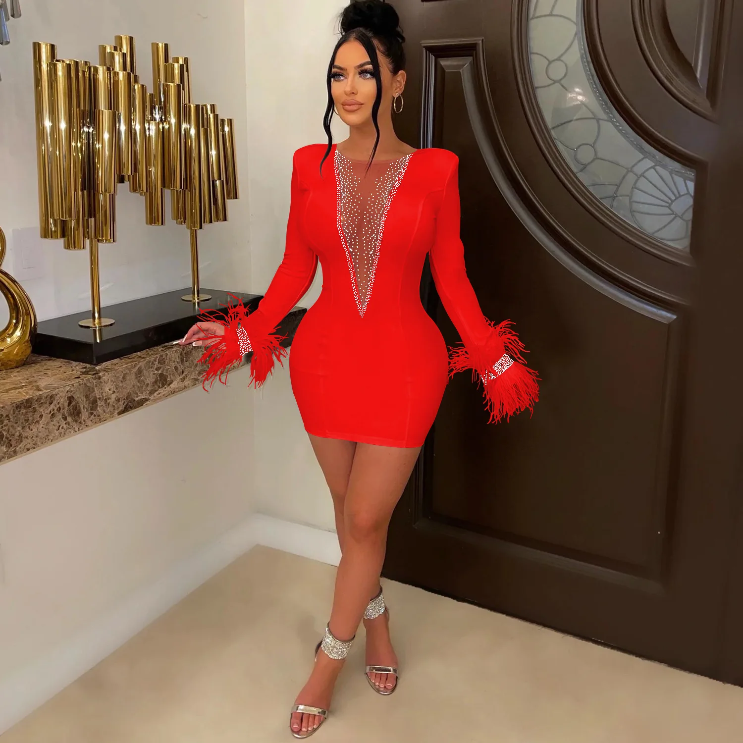 CM.YAYA Women Diamonds Hot Drill Mesh See Though Patchwork Long Sleeve Bodycon Midi Mini Dress Sexy Party Evening Prom Dresses