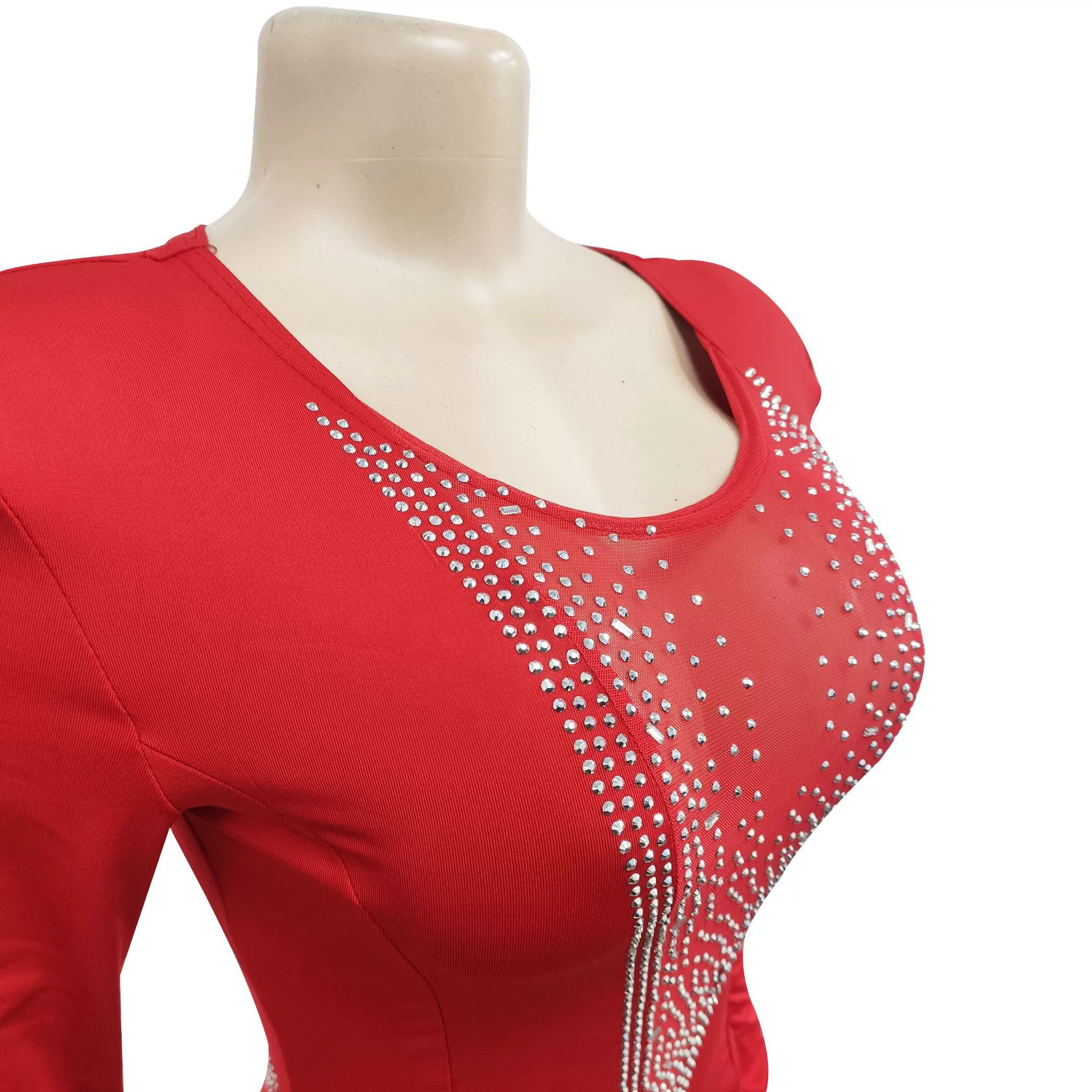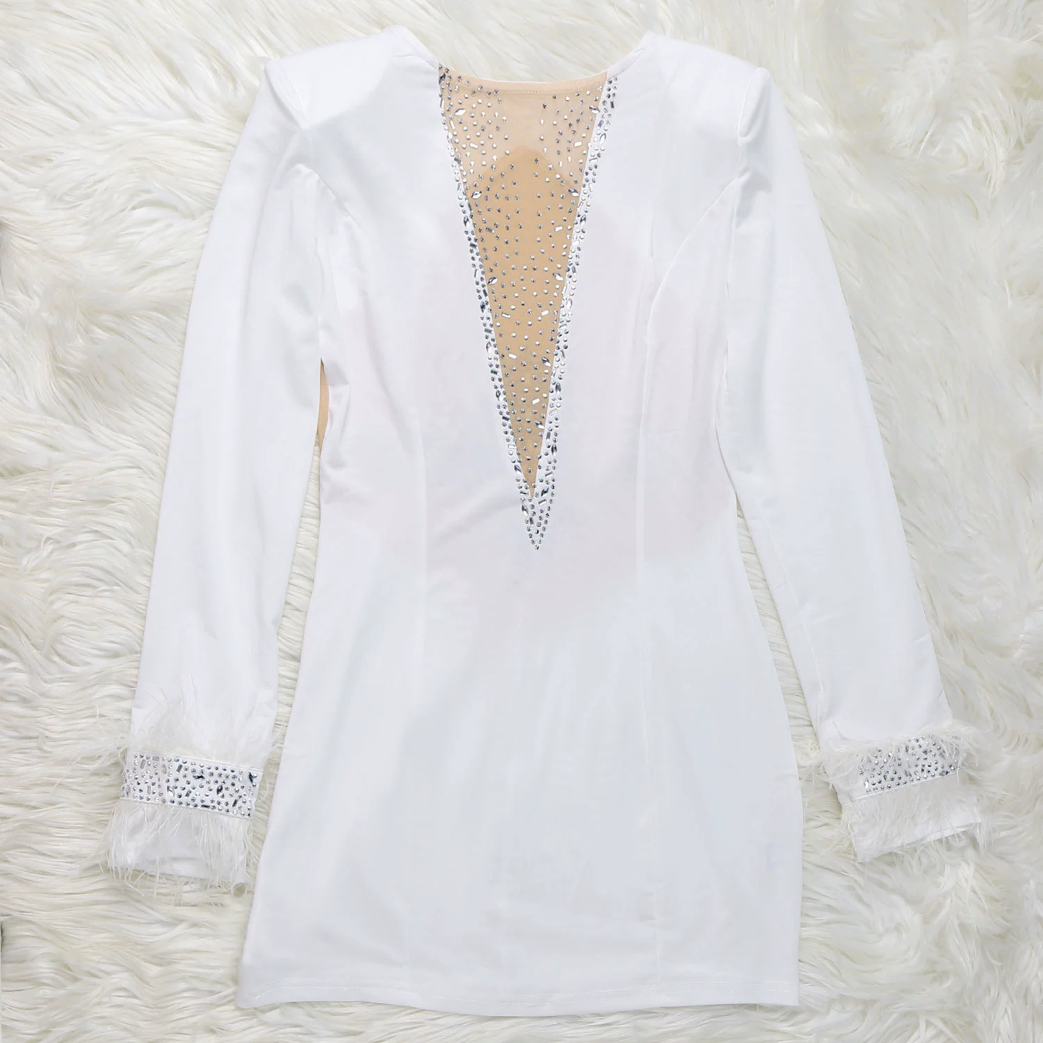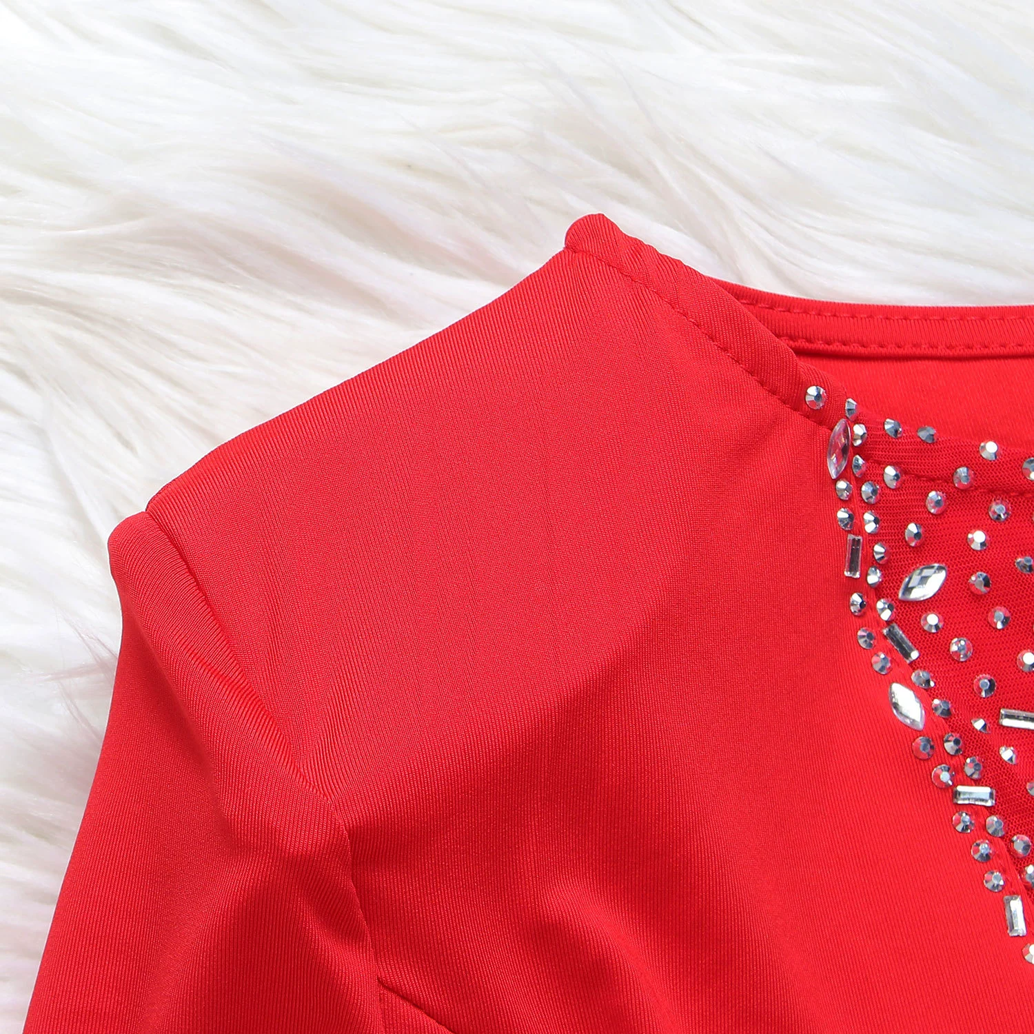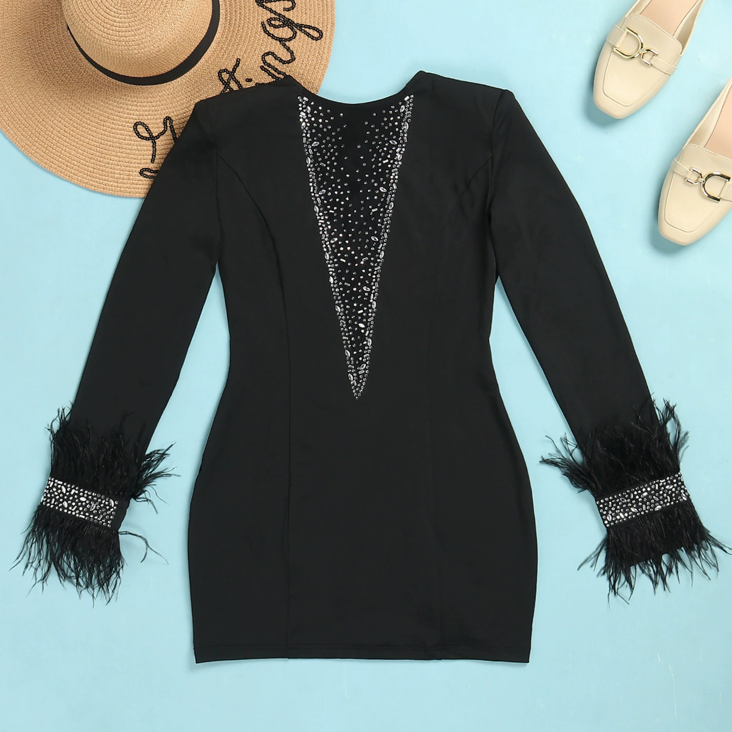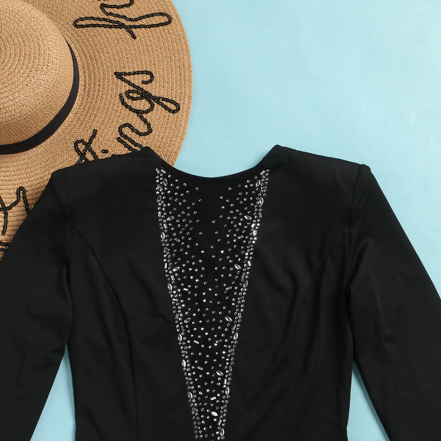 CM.YAYA Women Diamonds Hot Drill Mesh See Though Patchwork Long Sleeve Bodycon Midi Mini Dress Sexy Party Evening Prom Dresses