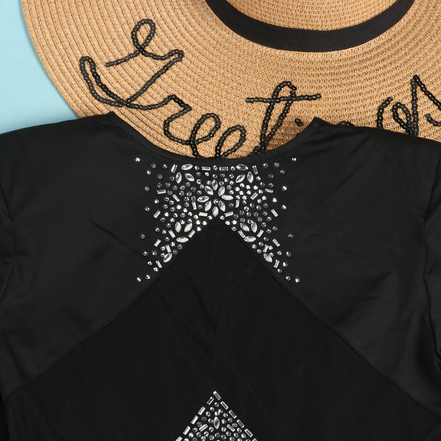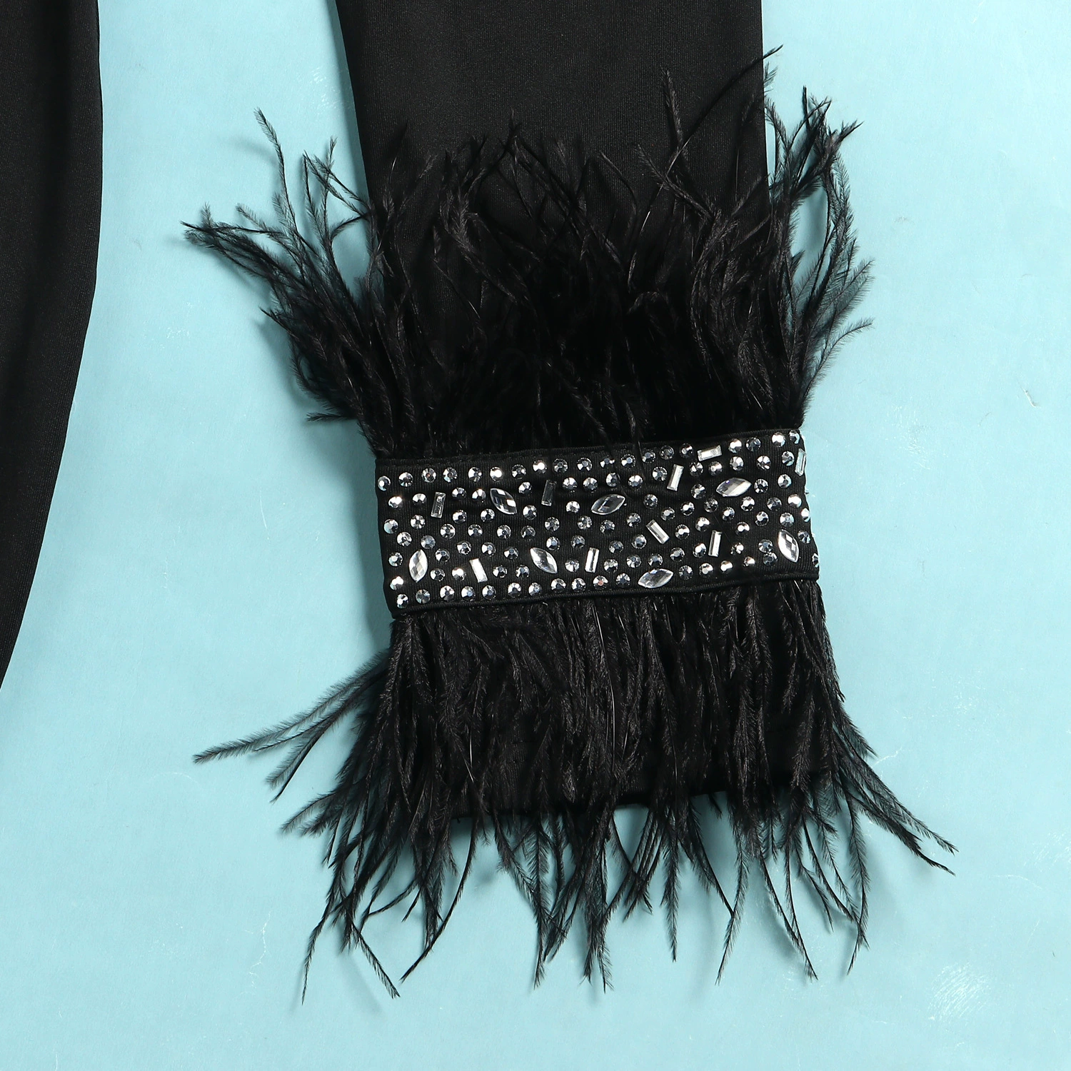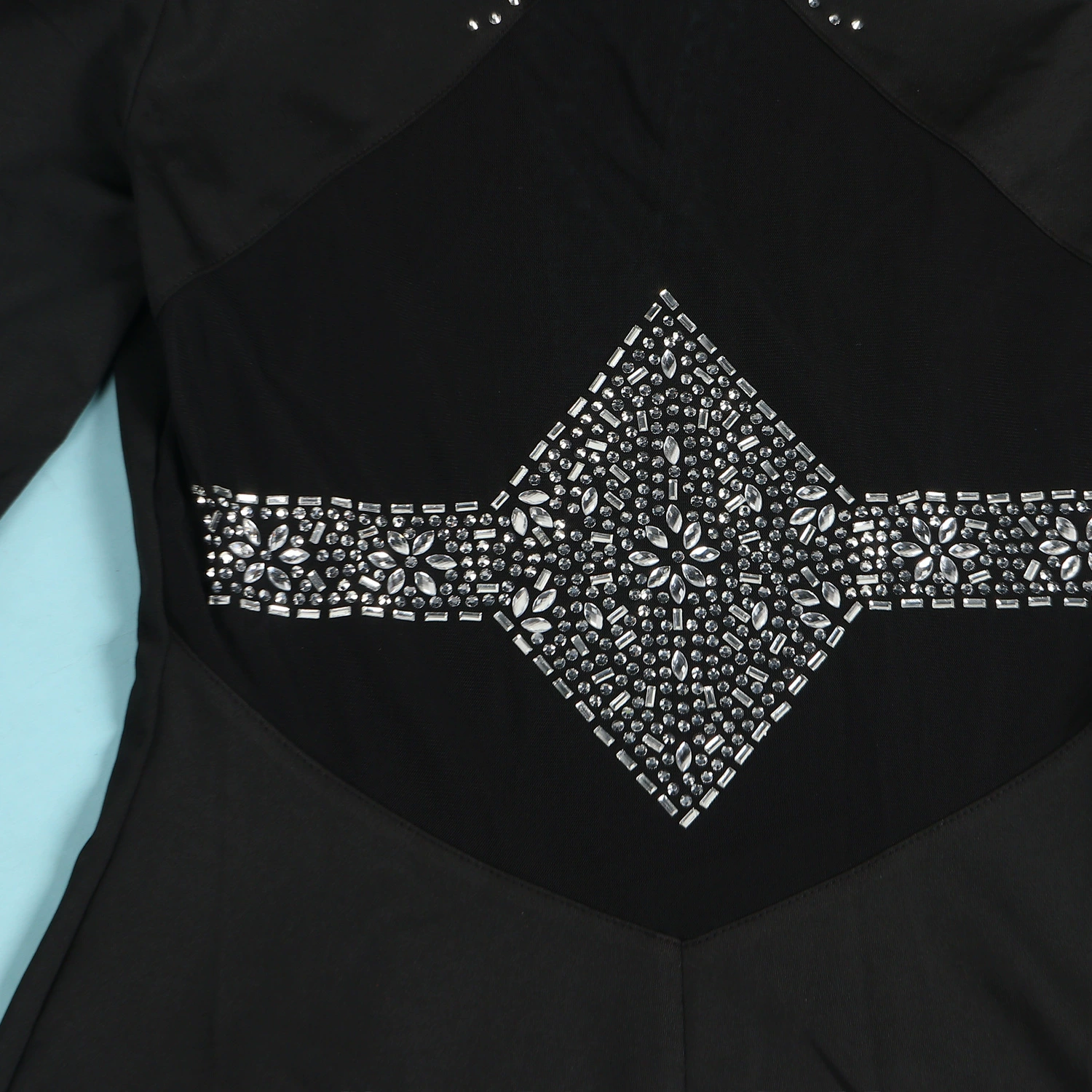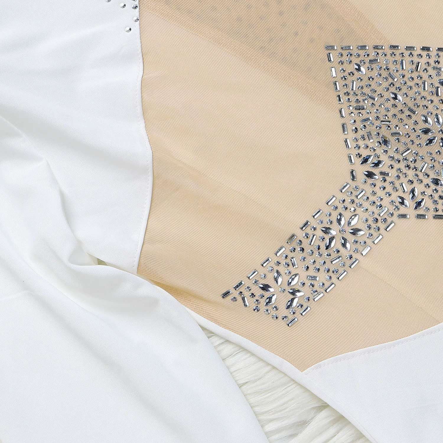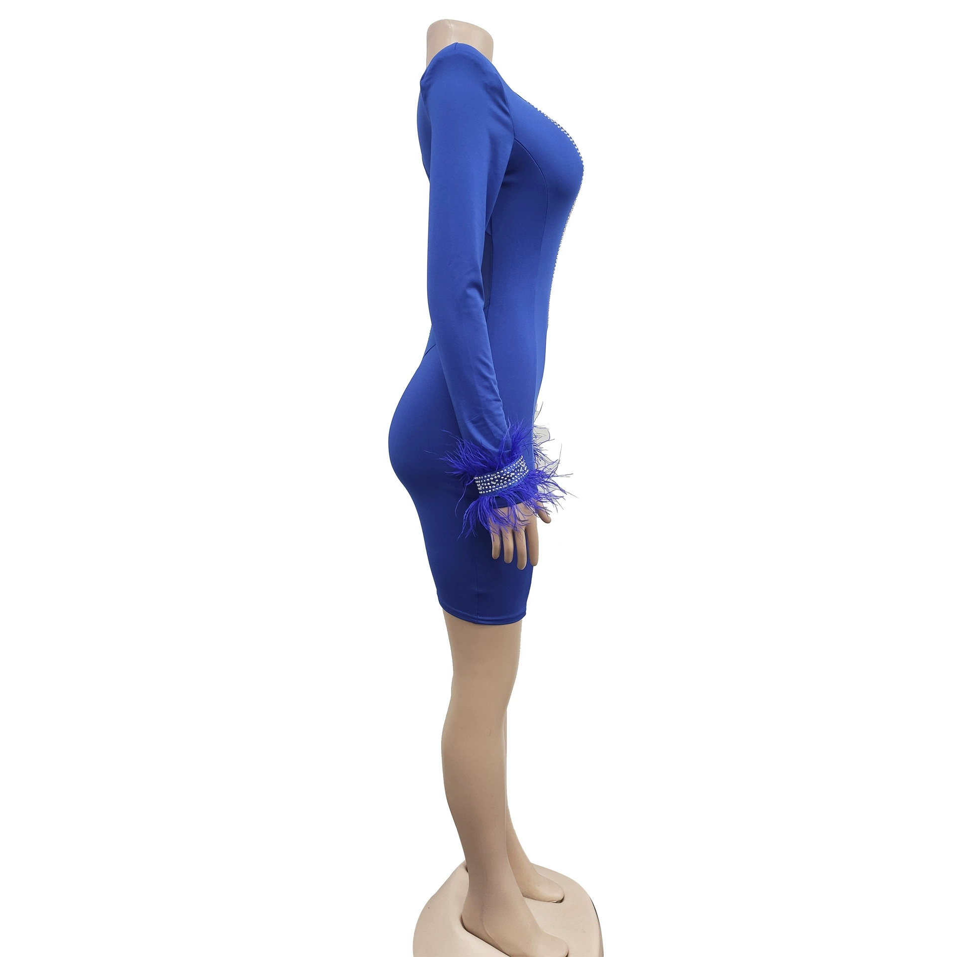 CM.YAYA Women Diamonds Hot Drill Mesh See Though Patchwork Long Sleeve Bodycon Midi Mini Dress Sexy Party Evening Prom Dresses