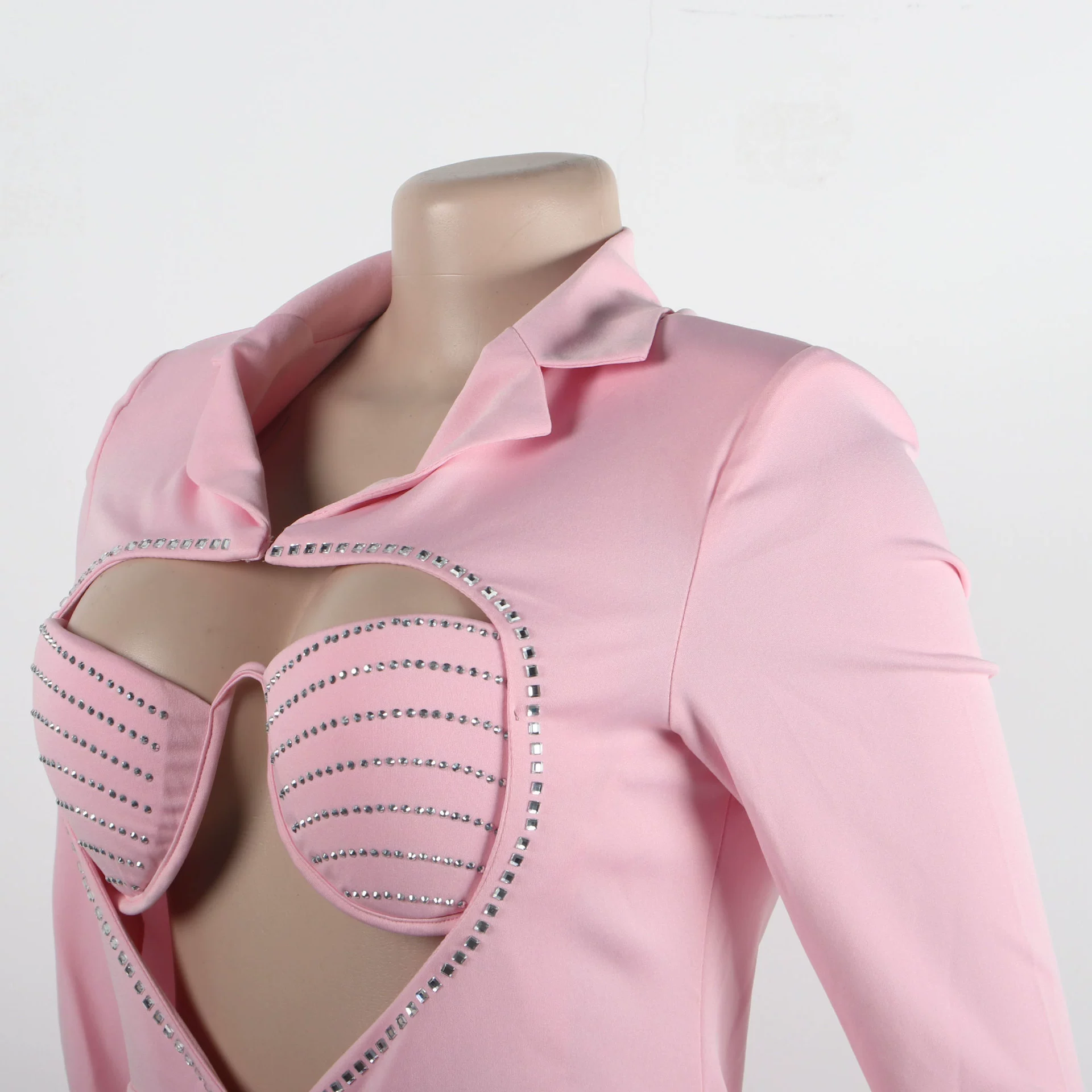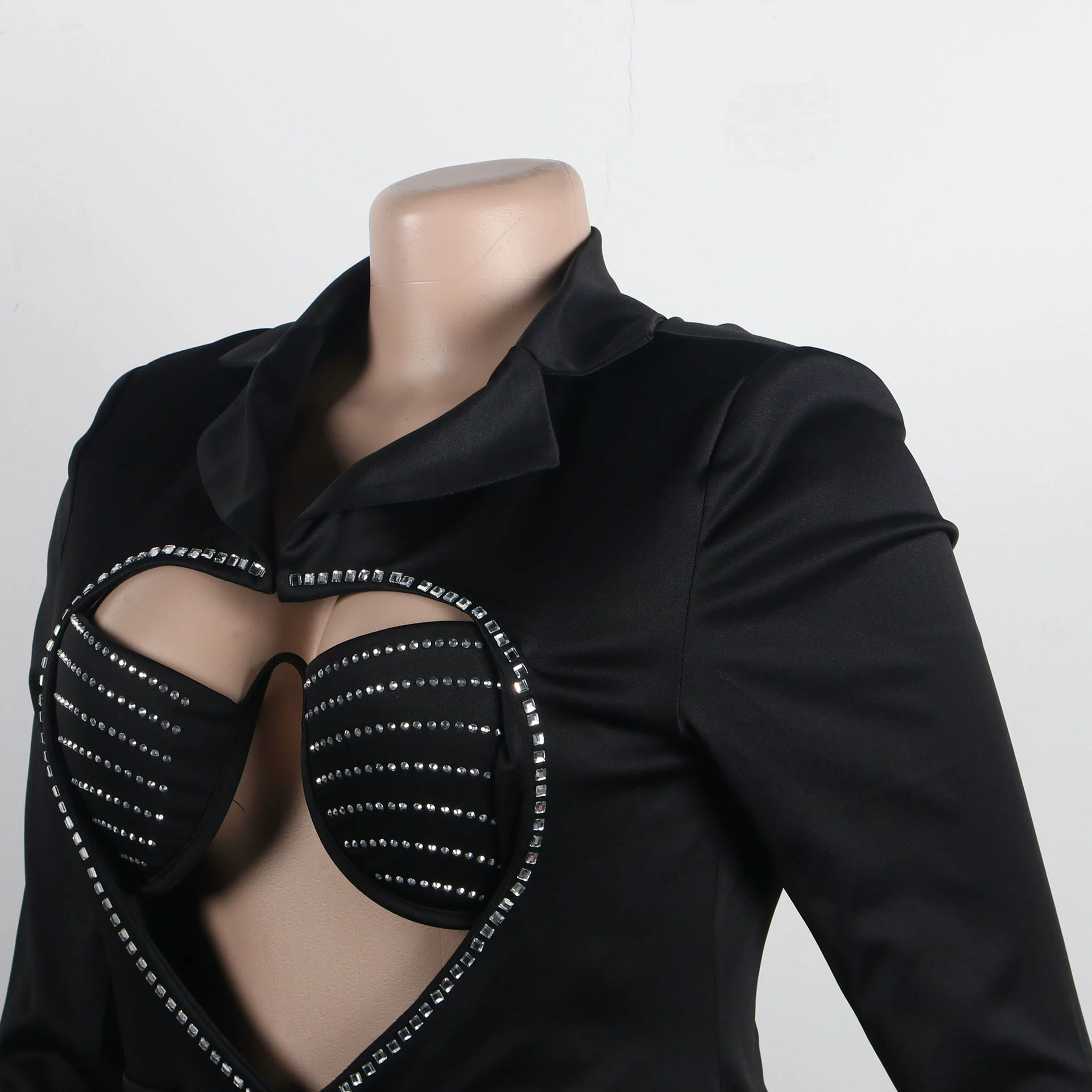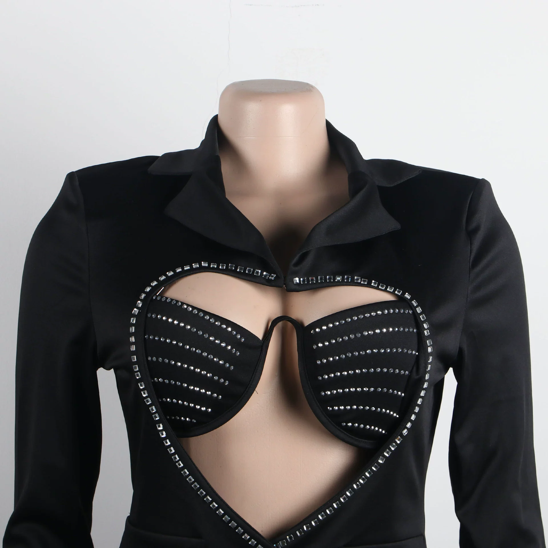 CM.YAYA Women Diamonds Hot Rhinestones Cutout Sweetheart Bodycon Midi Blazer Style Dress with Bra Top Sexy Party Even Dresses