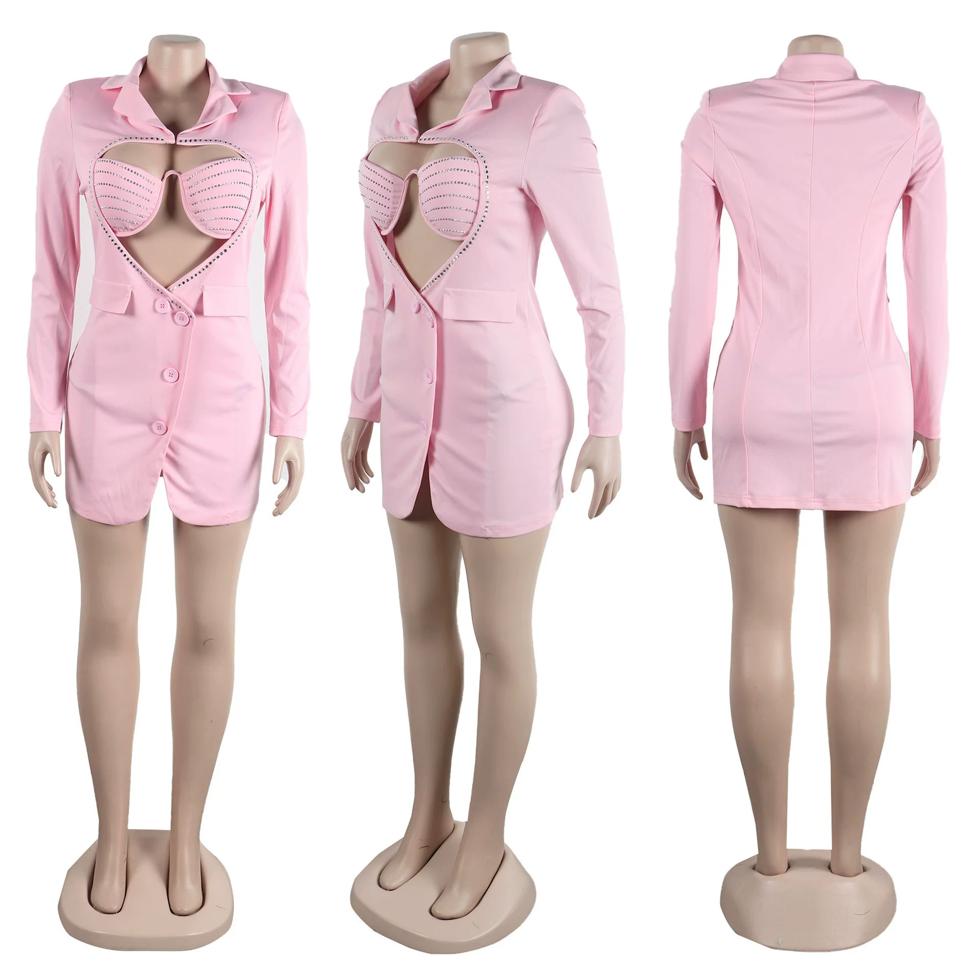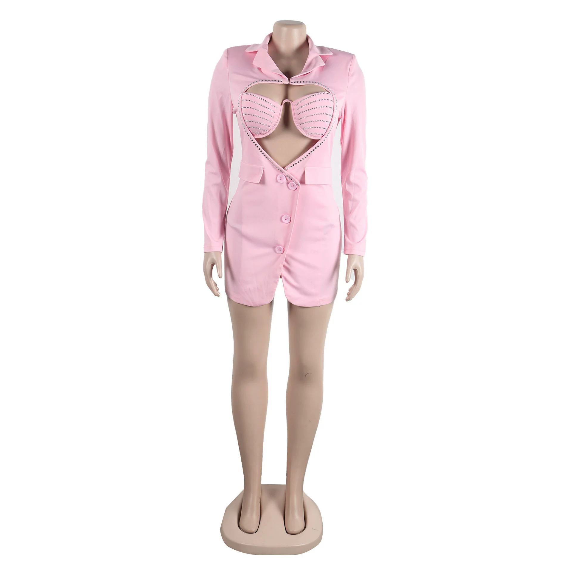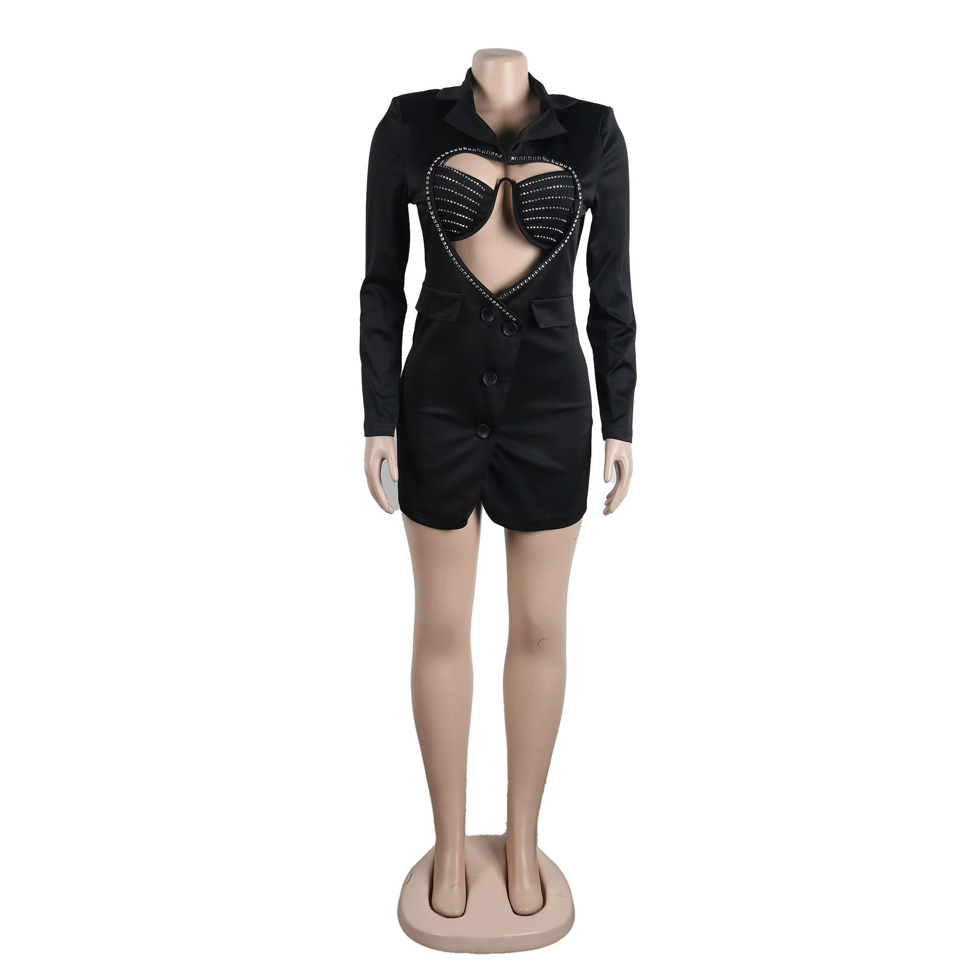 CM.YAYA Women Diamonds Hot Rhinestones Cutout Sweetheart Bodycon Midi Blazer Style Dress with Bra Top Sexy Party Even Dresses