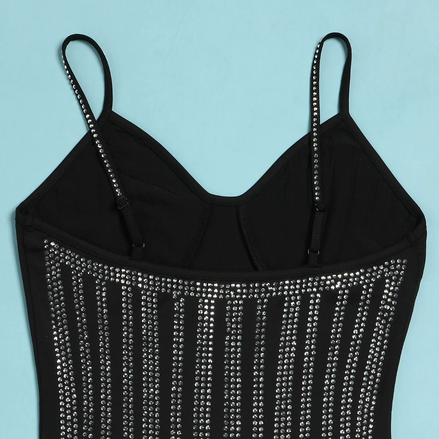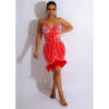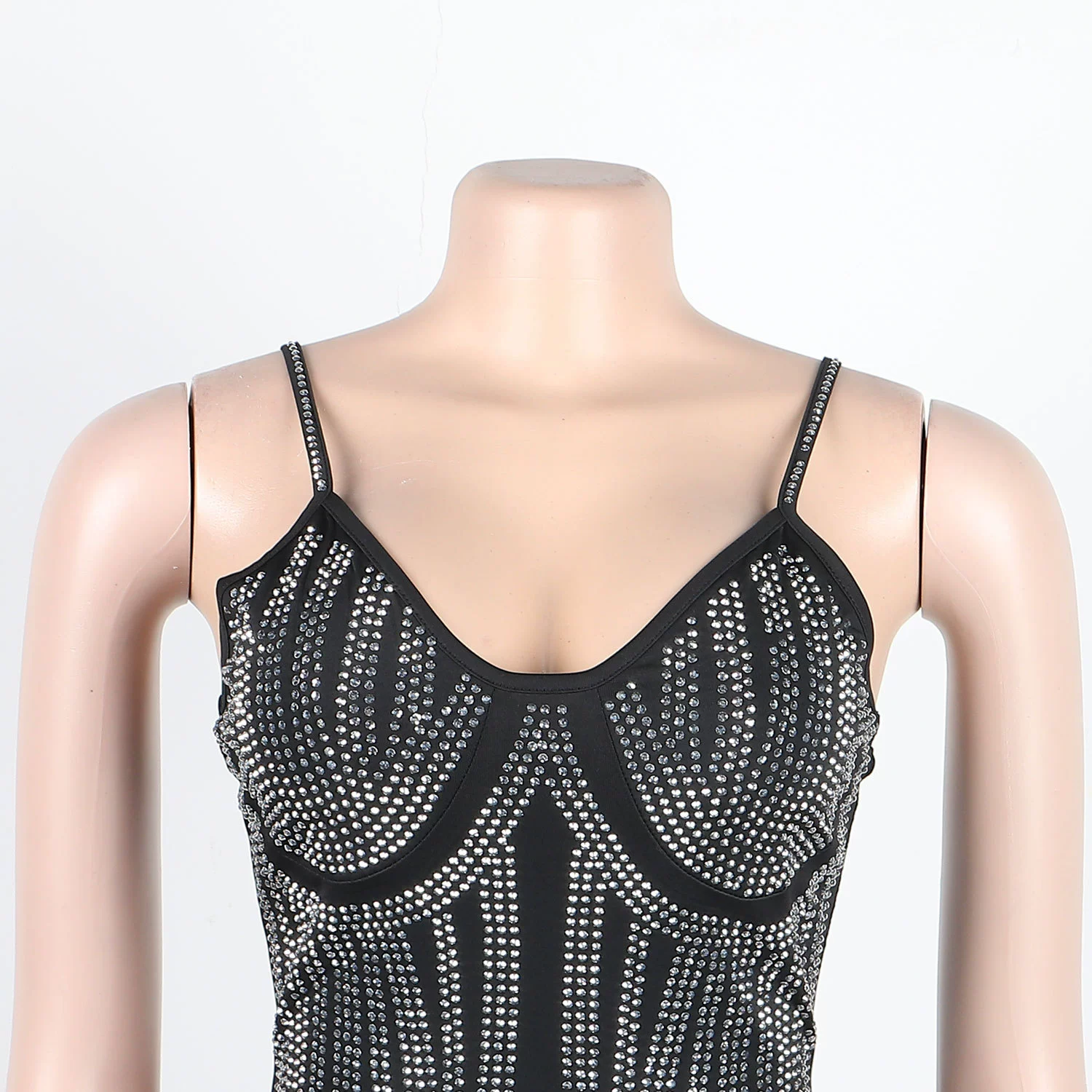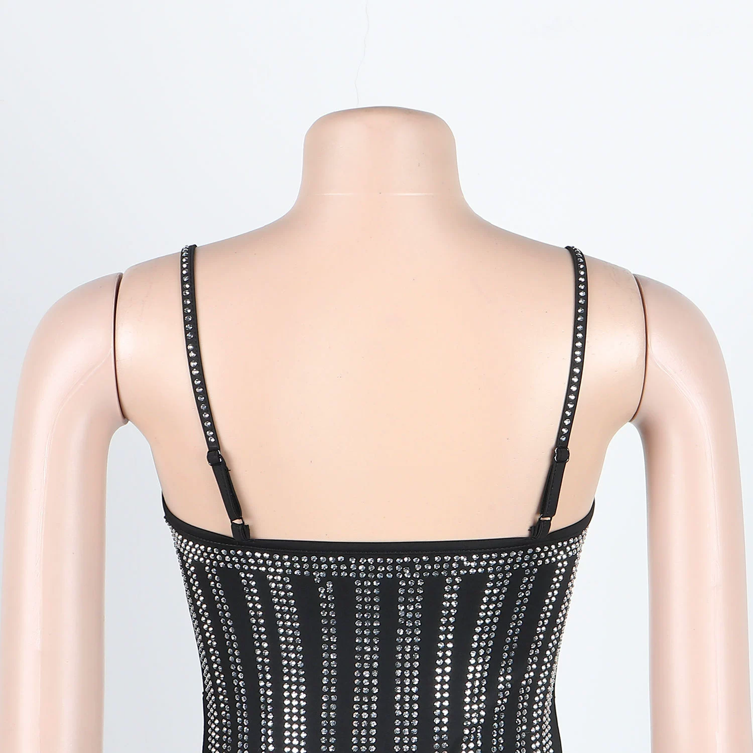 CM.YAYA Women Diamonds Hot Rhinestones Feather Tassel Hem Spaghetti Strap INS Bodycon Midi Sexy Party Club Prom Vestidos Dresses