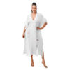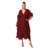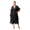 CM.YAYA Women Elegant Short Sleeve Long Midi Dress Knit Hollow Out Tassel 2025 Beach Holiday Holiday Party Vestidos Dresses