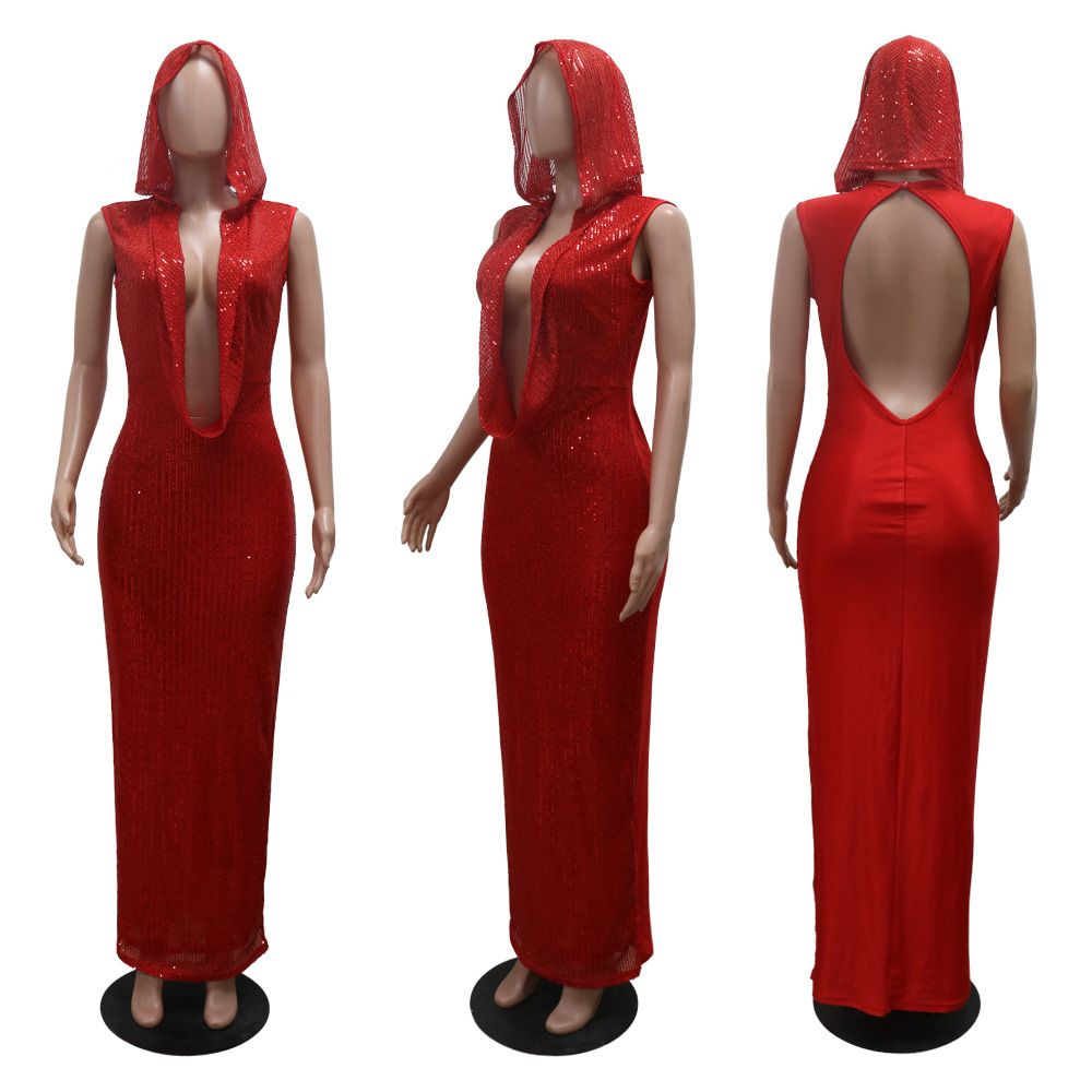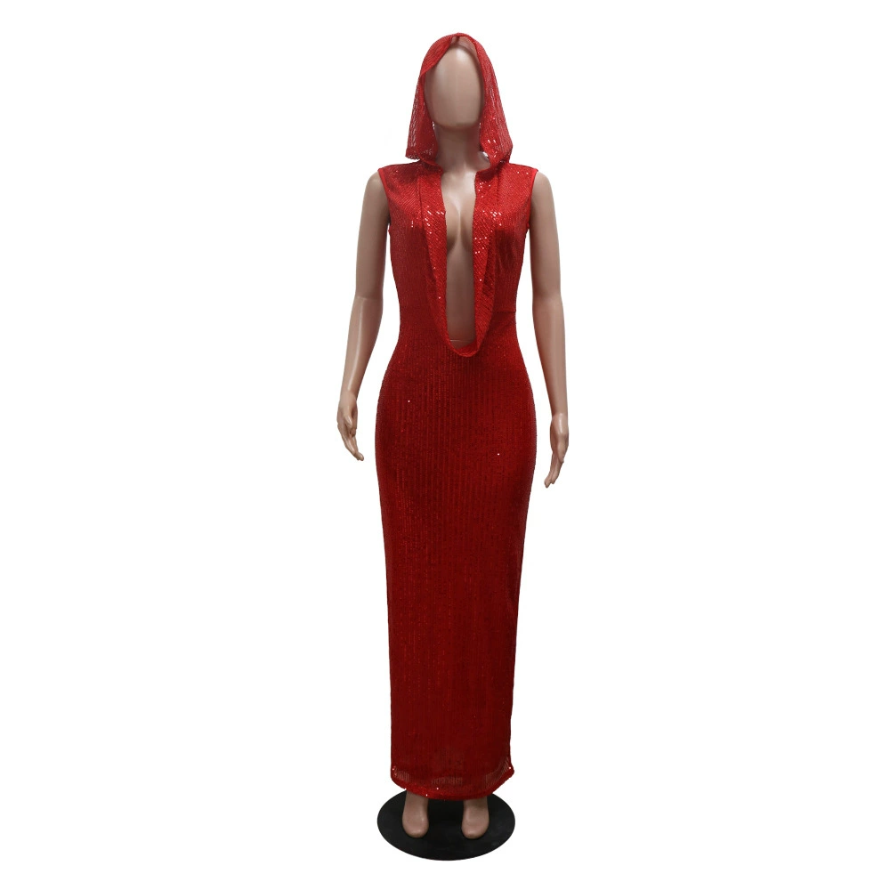 CM.YAYA Women Elegant Sleeveless Long Maxi Dress V-neck Mesh Sequned Hollow Out Tassel Beach Holiday 2024 Party Vestido Dresses