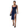 CM.YAYA Women Eyelet Button Split Sleeveless Strapless Bodycon Midi Dress 2025 Summer Birthday Vacation Sexy Party Dresses