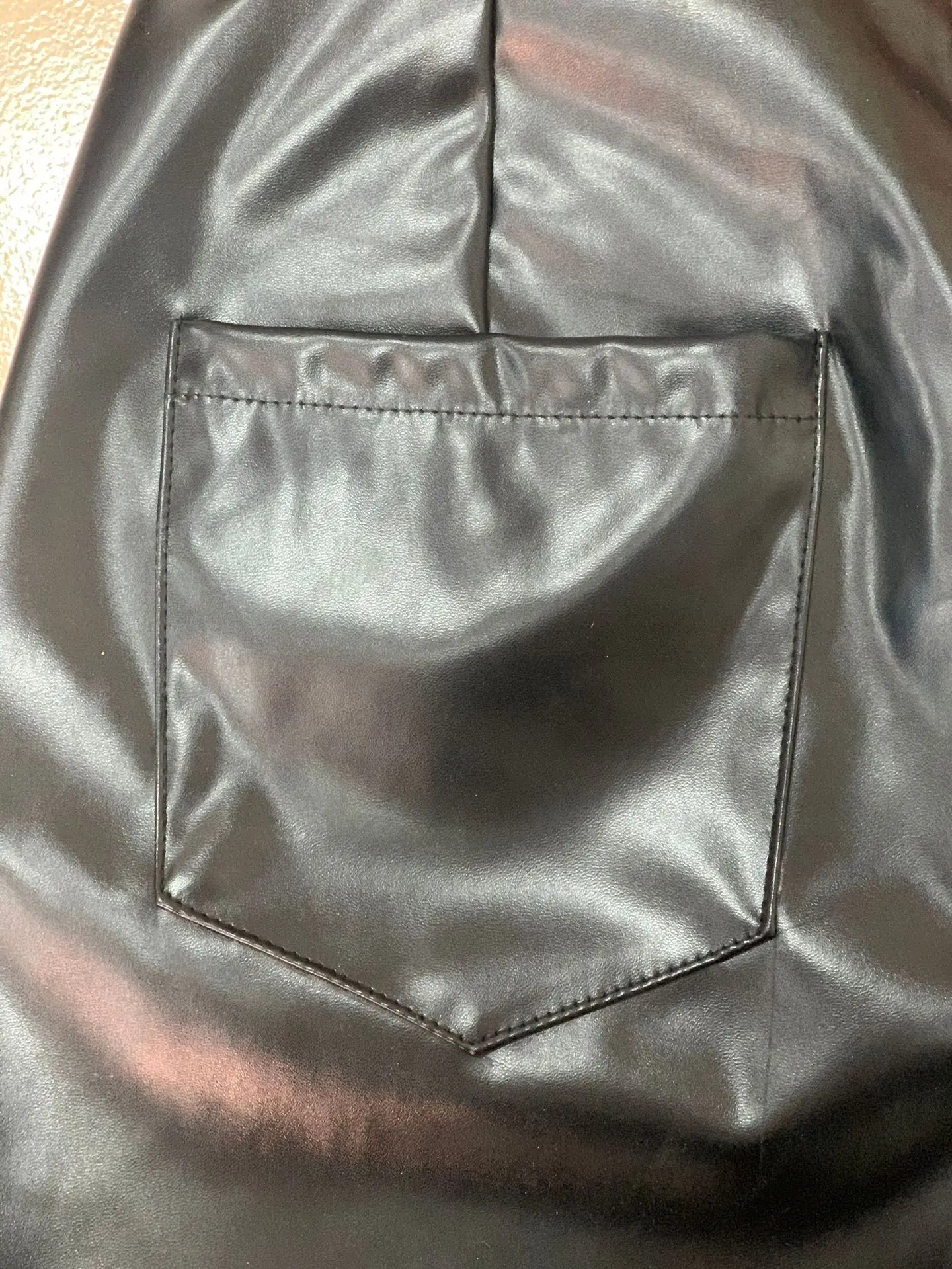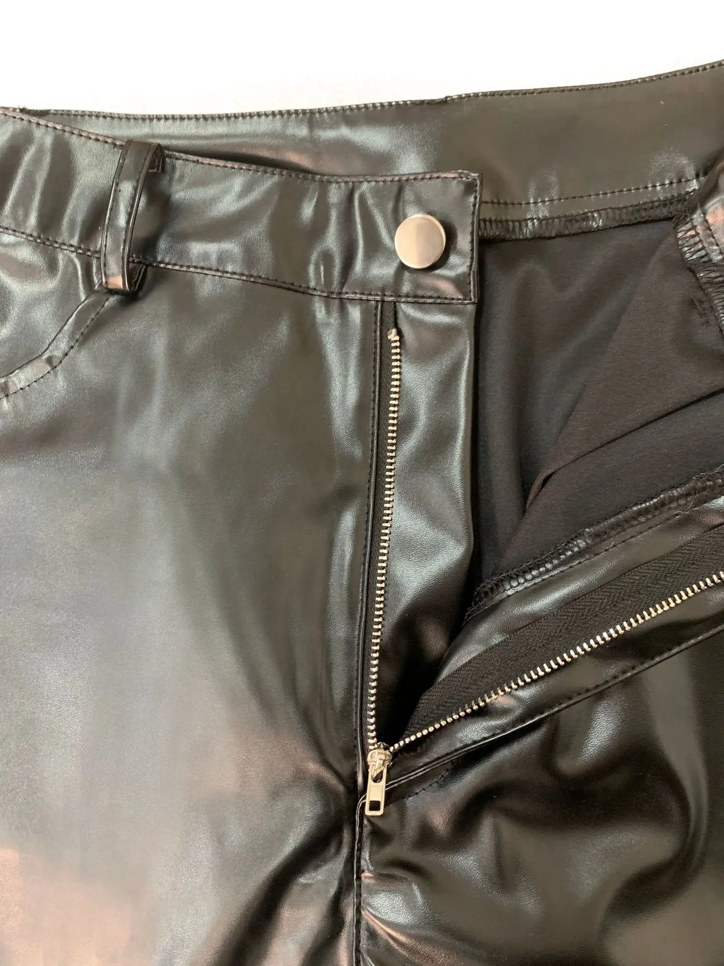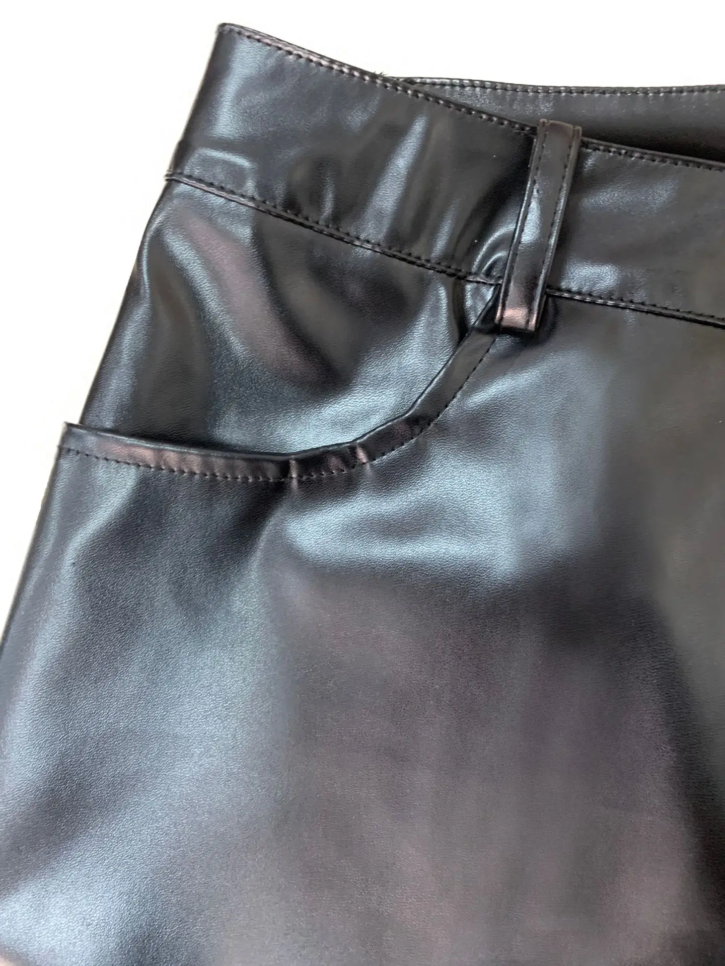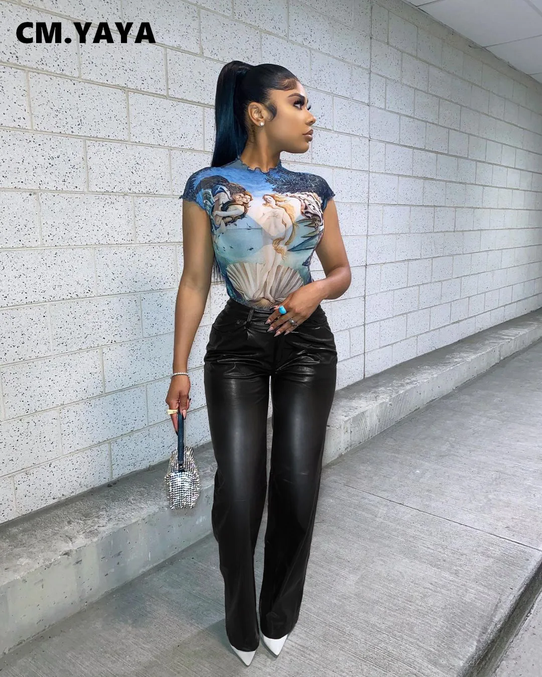CM.YAYA Women Faux Leather Pu Pants Winter Spring Black High Waist Fashion Straight Trousers