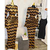 CM.YAYA Women Flare Full Sleeve Wave Striped Ruched Stacked Bodycon Midi Long Maxi Dress 2025 Evening Sexy Party Dresses Vestido