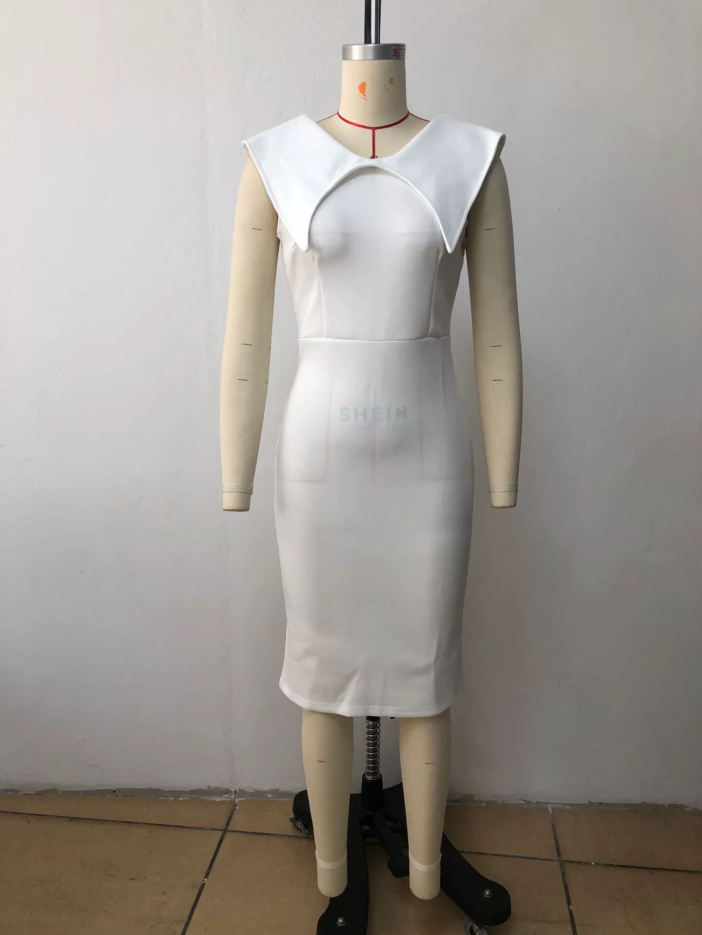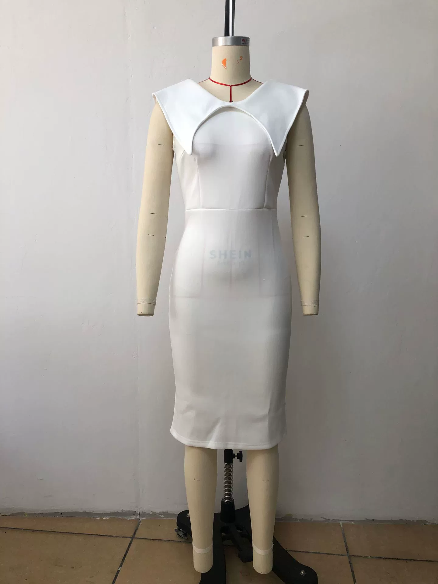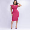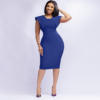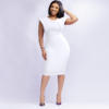 CM.YAYA Women Flare Shoulder O-neck V-back Bodycon Midi Dress 2023 Summer Office Lady Evening Sexy Party Club Dresses Vestidos