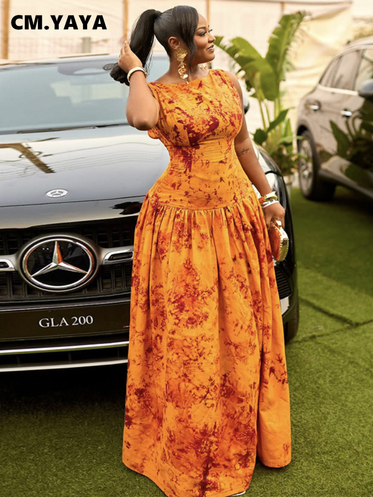 CM.YAYA Women Floral Print Sleeveless Big Swing High Waist Long Maxi Dress 2025 Chic Evening Sexy Party Vintage Dresses Vestidos