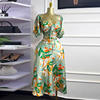 CM.YAYA Women Floral Printed Lantern Half Sleeve Tie Up Long Maxi Dress 2025 Birthday Evening Sexy club Party Dresses Vestidos