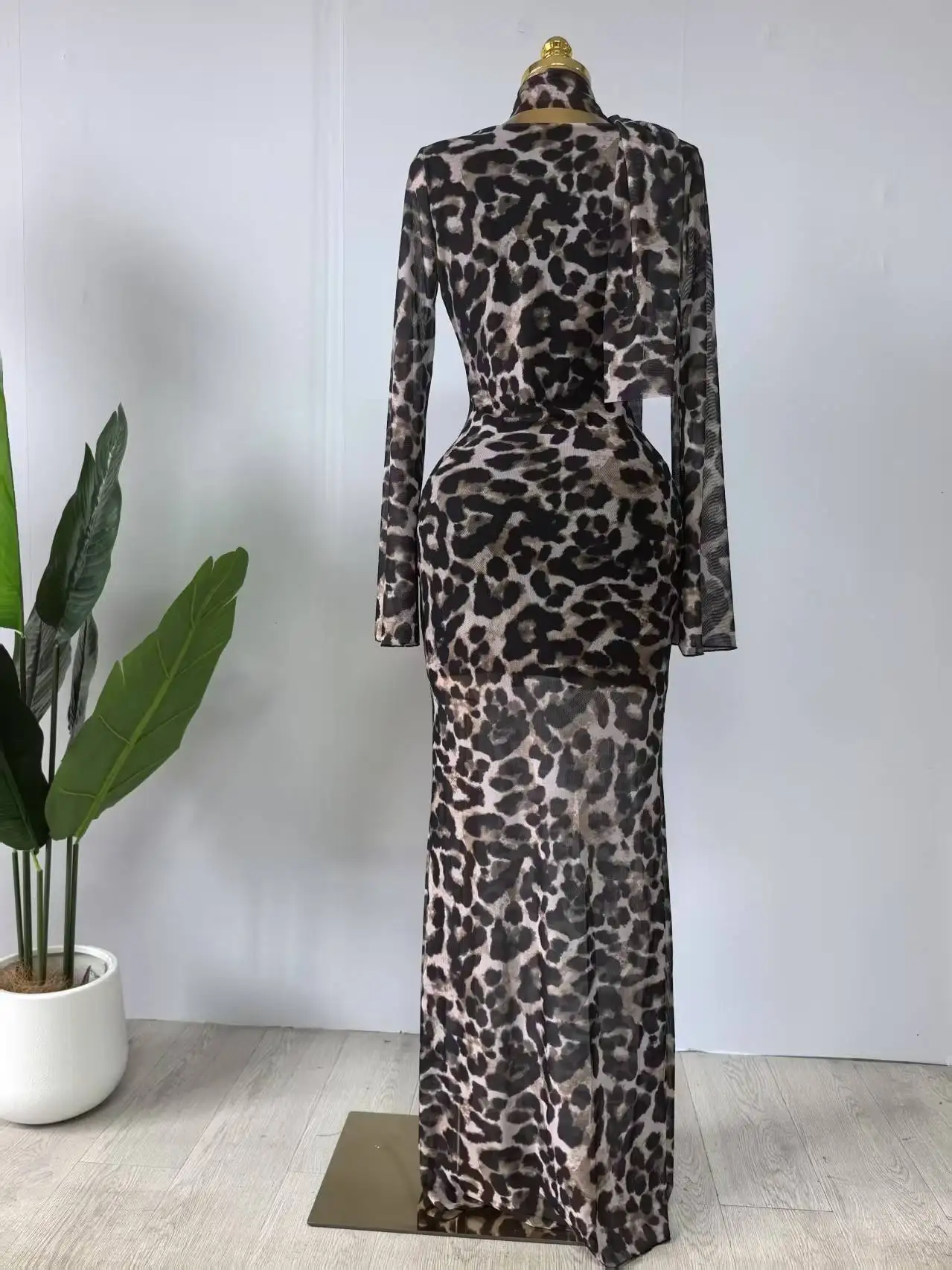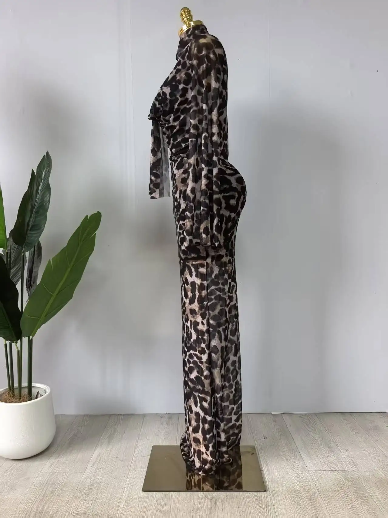 CM.YAYA Women Full Sleeve Pile Collar leopard print Long Maxi Dress Holiday Beach Birthday Evening Sexy Party Dresses Vestidos
