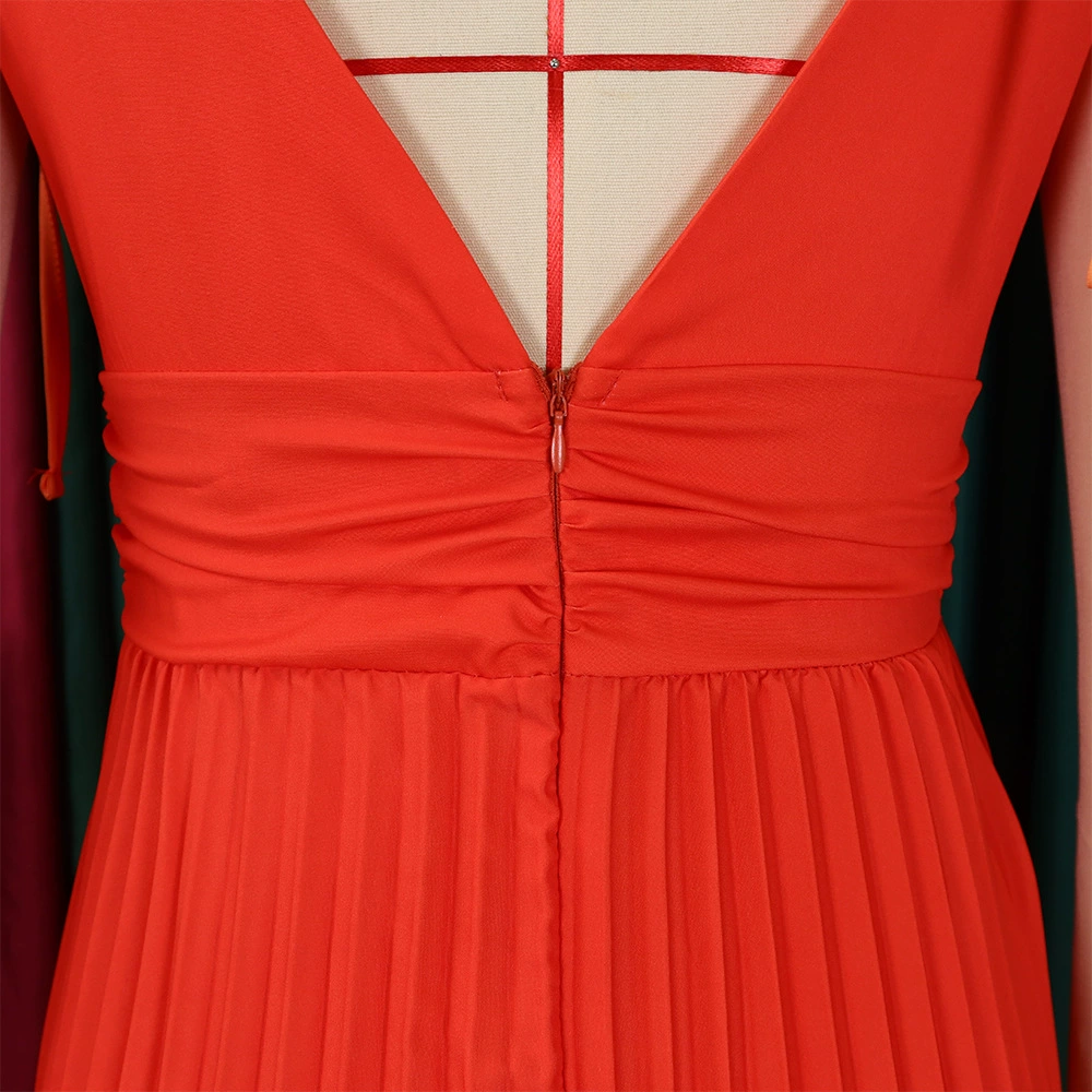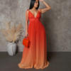 CM.YAYA Women Gradient Color Tie Up Stap Sleeveless Pleated Backless V-neck Maxi Dress 2023 Fashion Street Vestidos Sexy Dresses