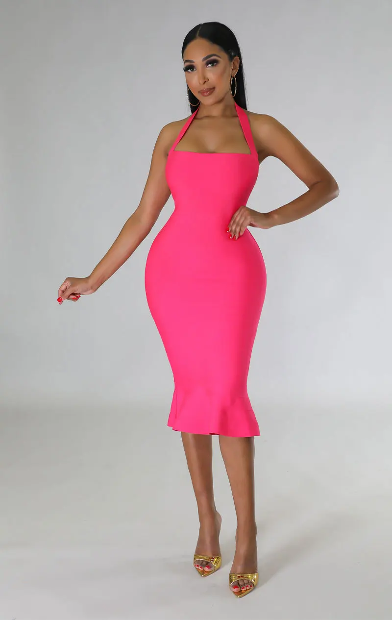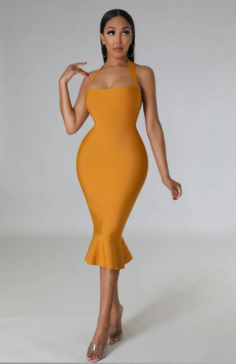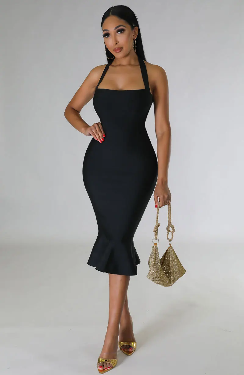 CM.YAYA Women Halter Sleeveless Ruffles Mermaid Bodycon Midi Dress 2023 Vestidos Summer Sexy Clubwear Party Evening Dresses