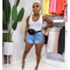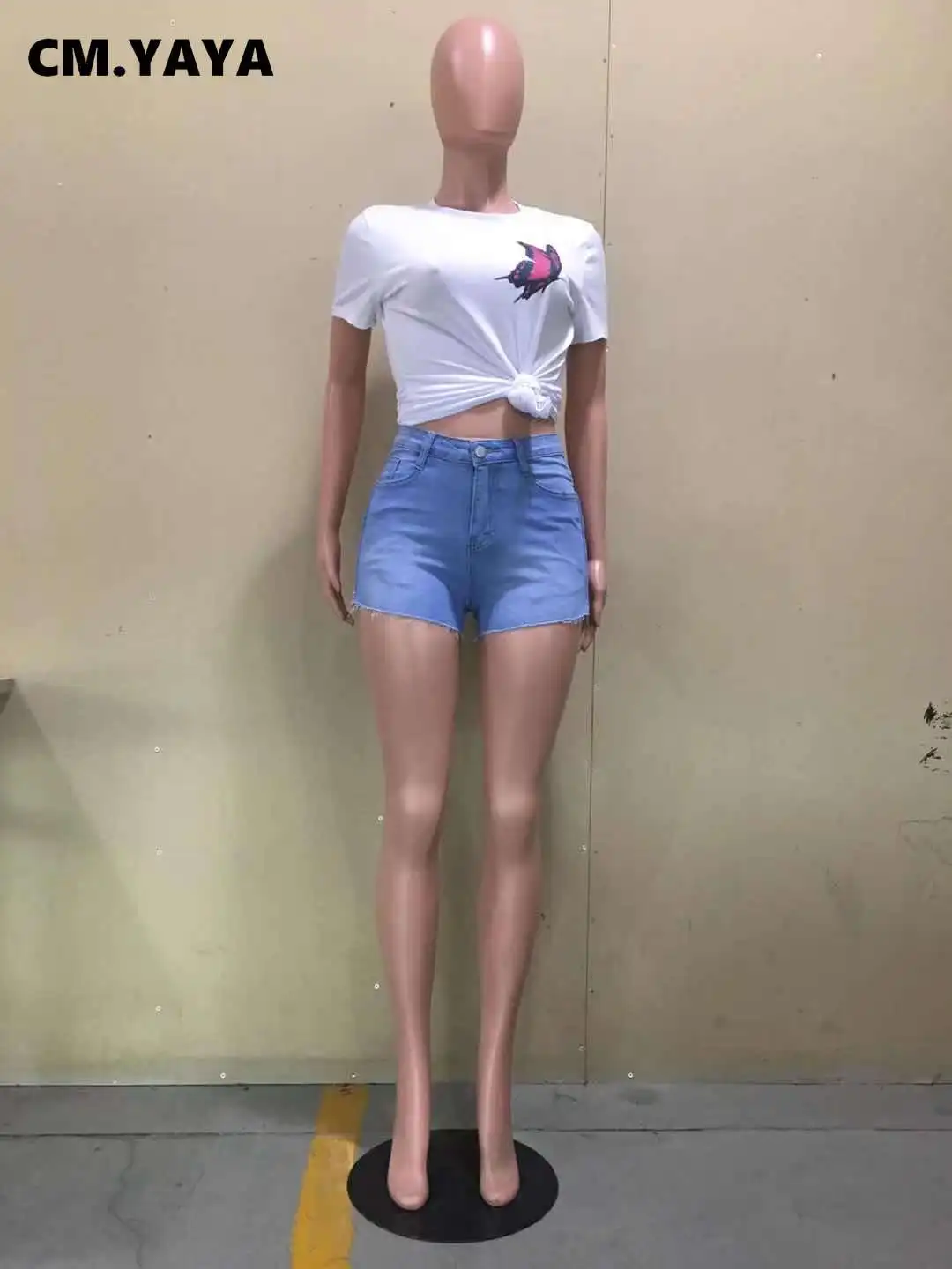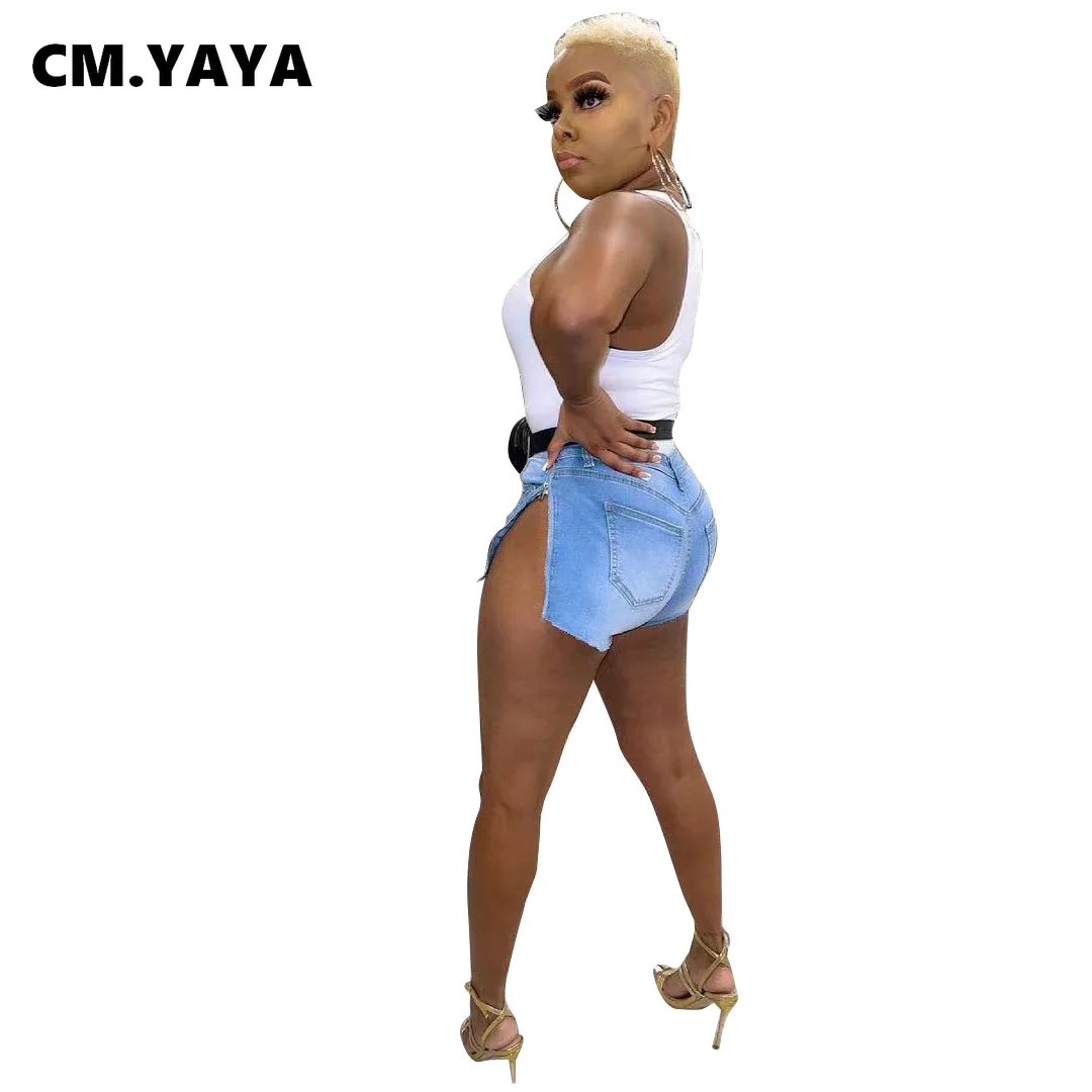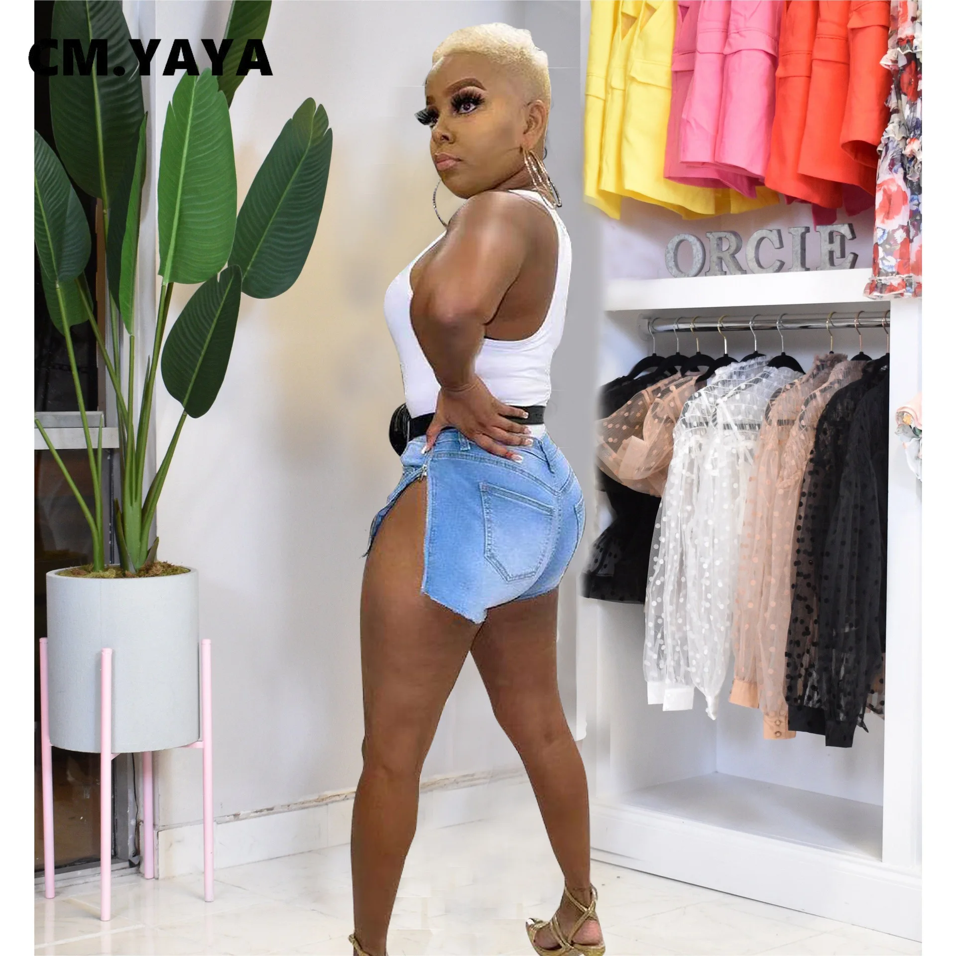 CM.YAYA Women Jeans Solid Mid Waist Zipper Pockets Side Zip Stretchy Straight Denim Shorts Sexy Fashion High Streetwear Summer