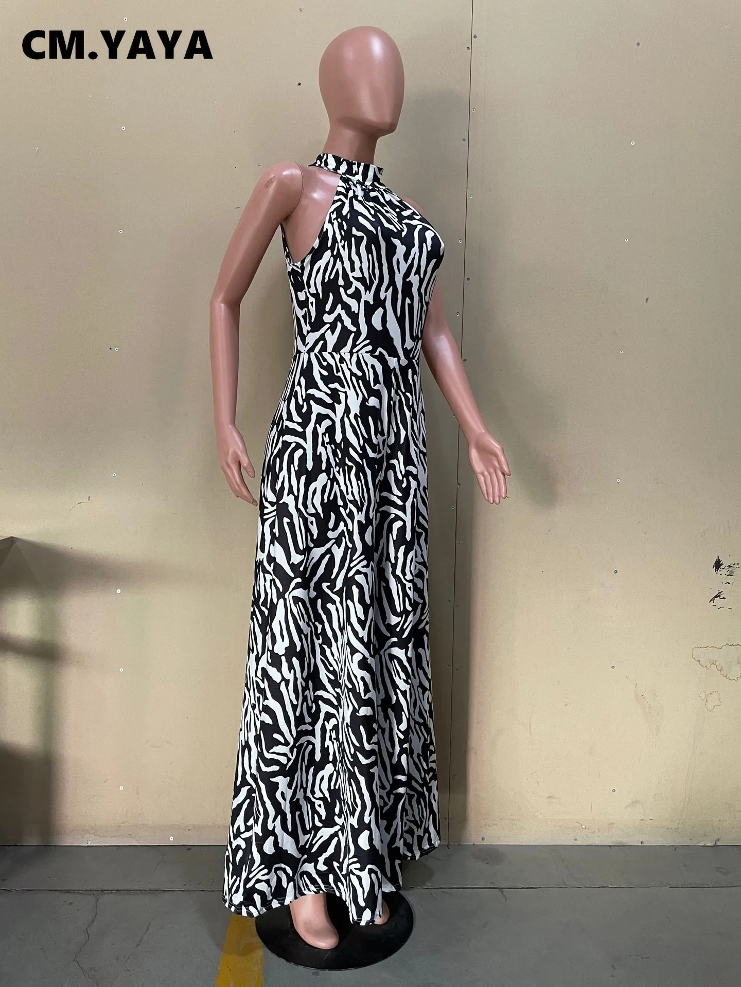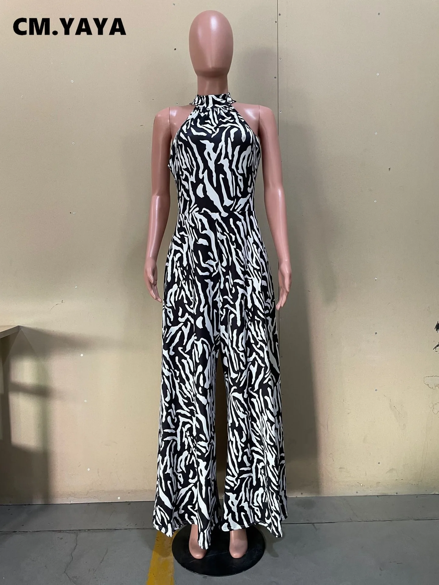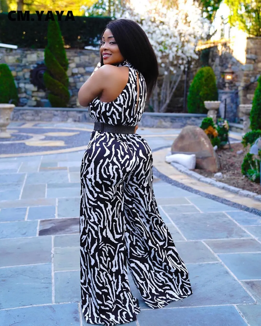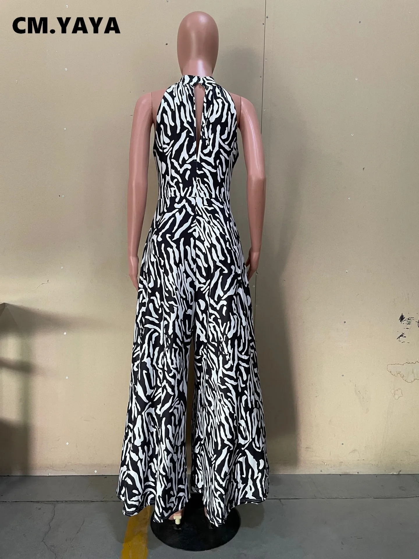 CM.YAYA Women Jumpsuit Striped Sleeveless Hollow Out Empire Loose Long Jumpsuits One Piece Overalls Summer Outfit Without Sashes