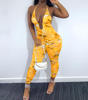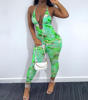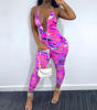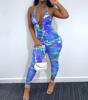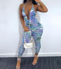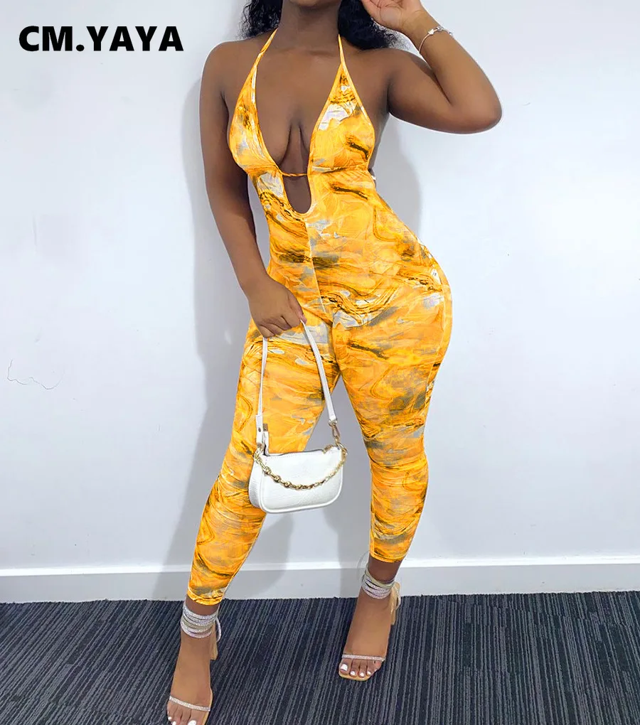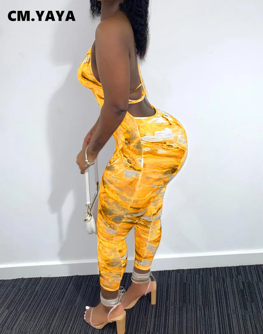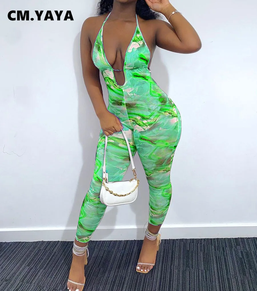 CM.YAYA Women Jumpsuit Tie Dye Bandage Halter Hollow Out Stretchy Skinny Bodycon Jumpsuits Sexy One Piece Overalls Summer Outfit