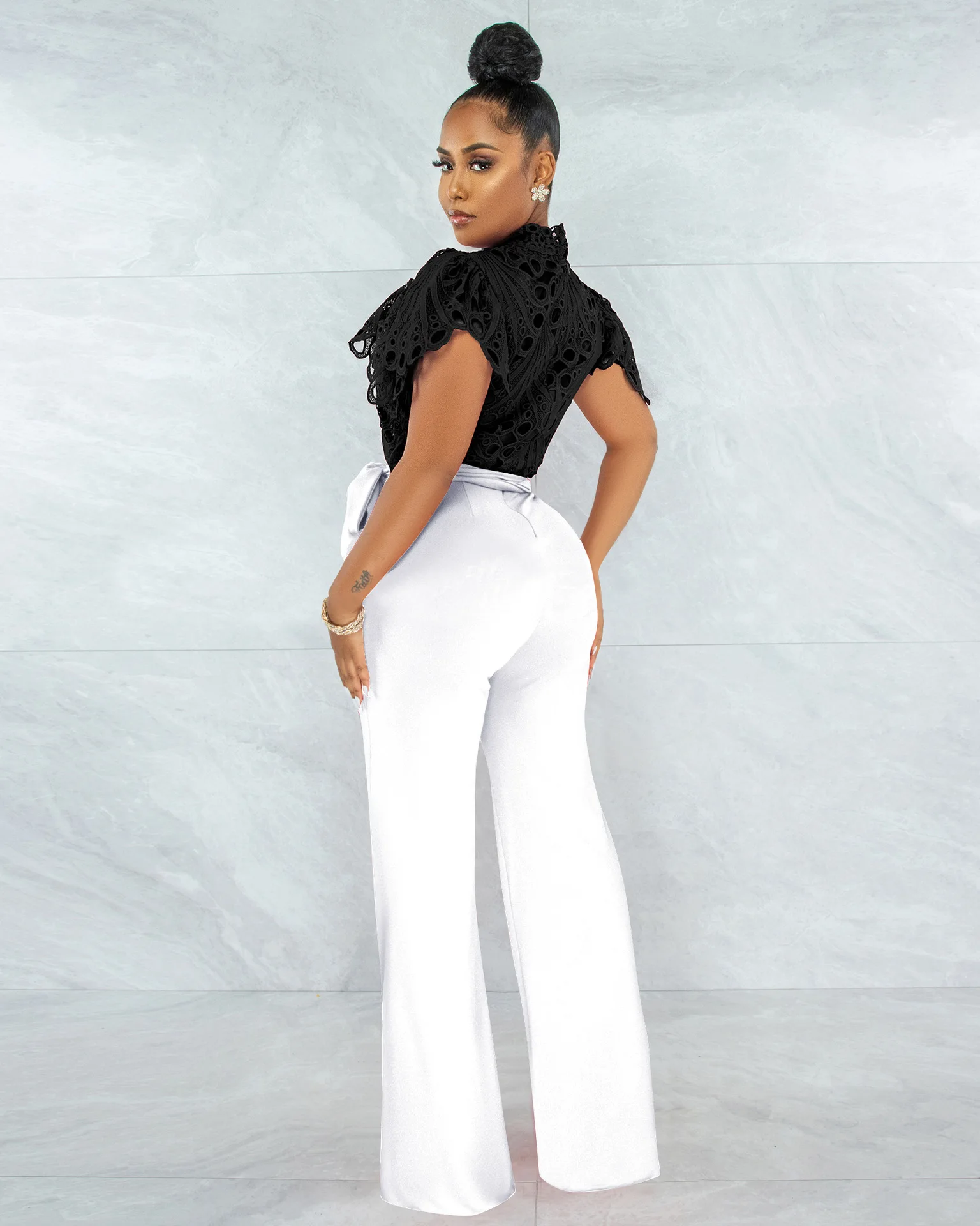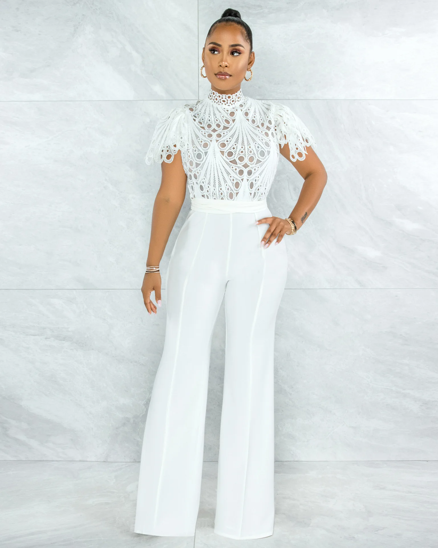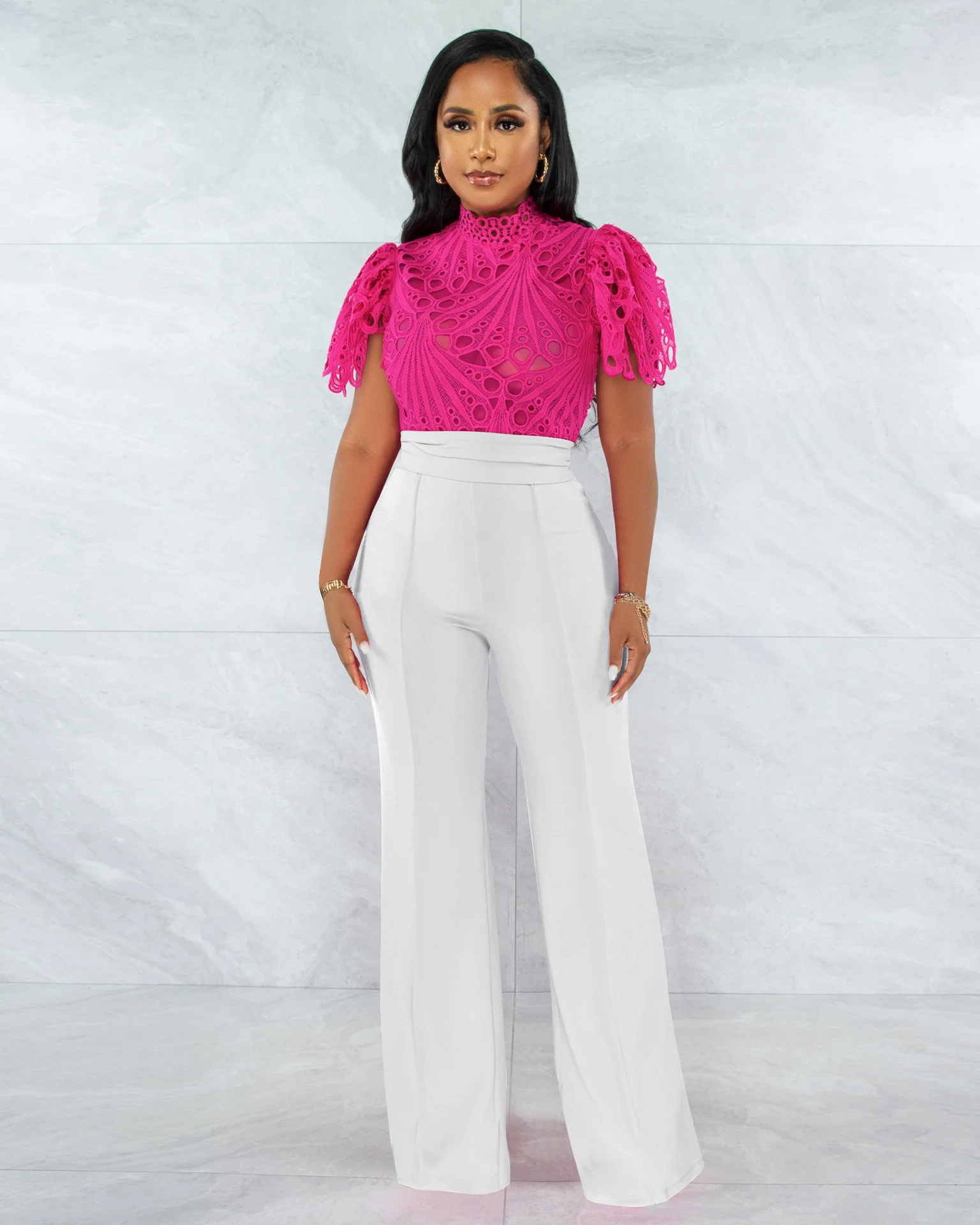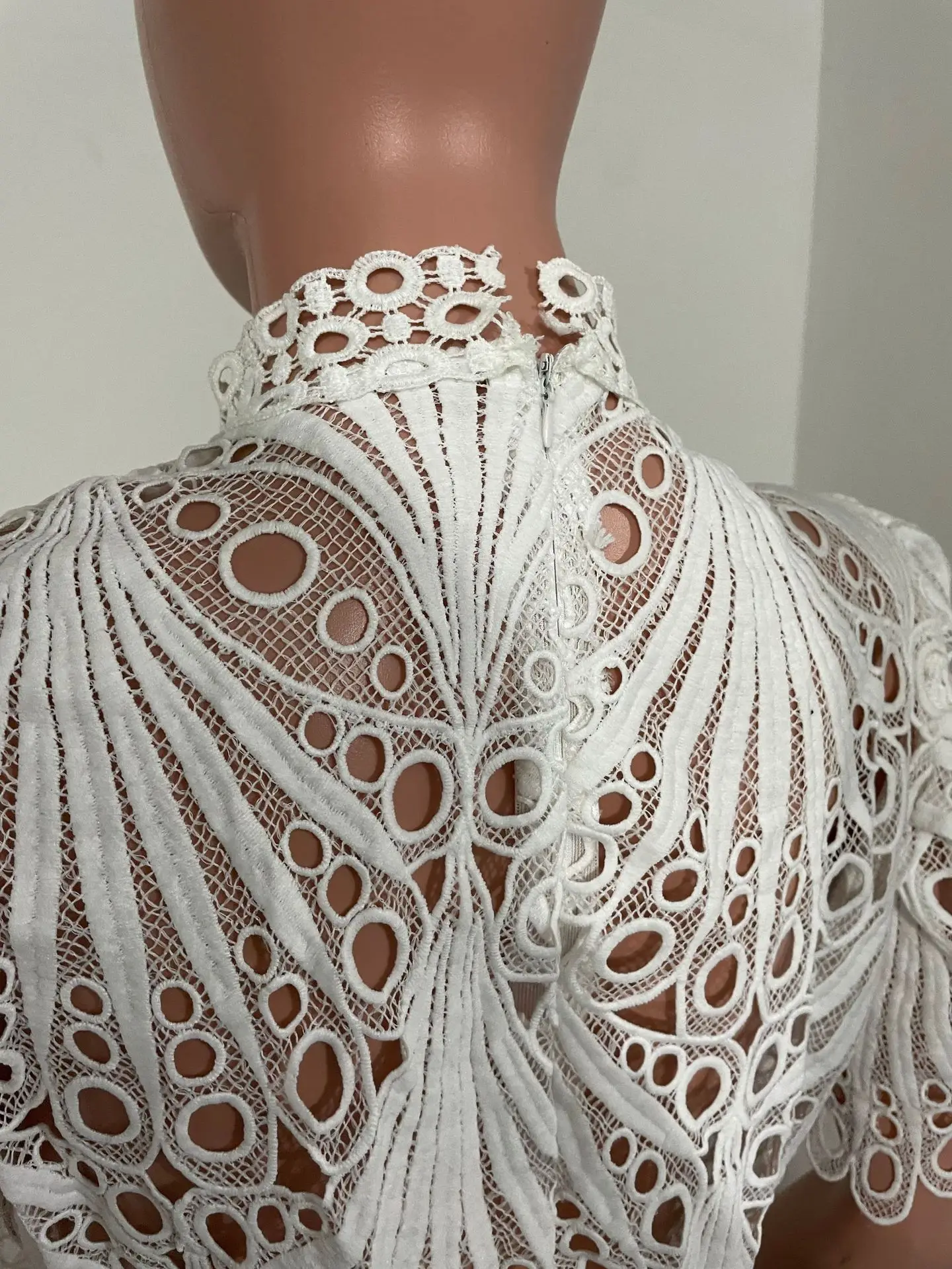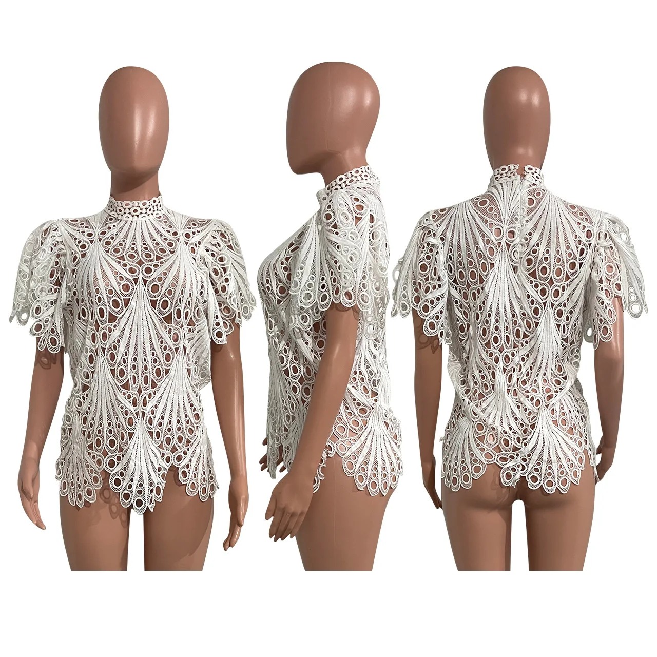 CM.YAYA Women Lace Crochet Hollow Out Short Sleeve Shirt Blouse Tops 2022 Summer Elegant Party Club Top