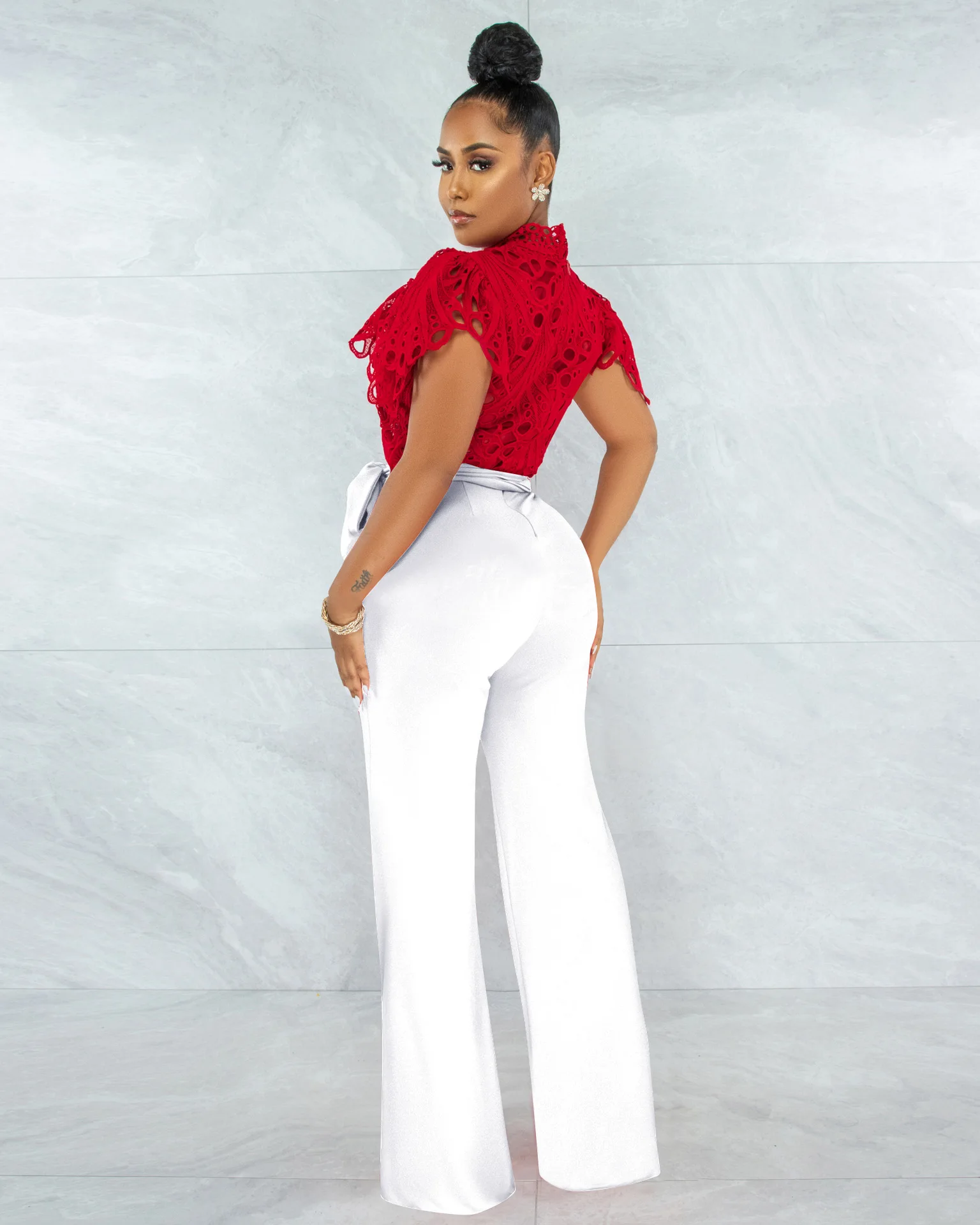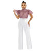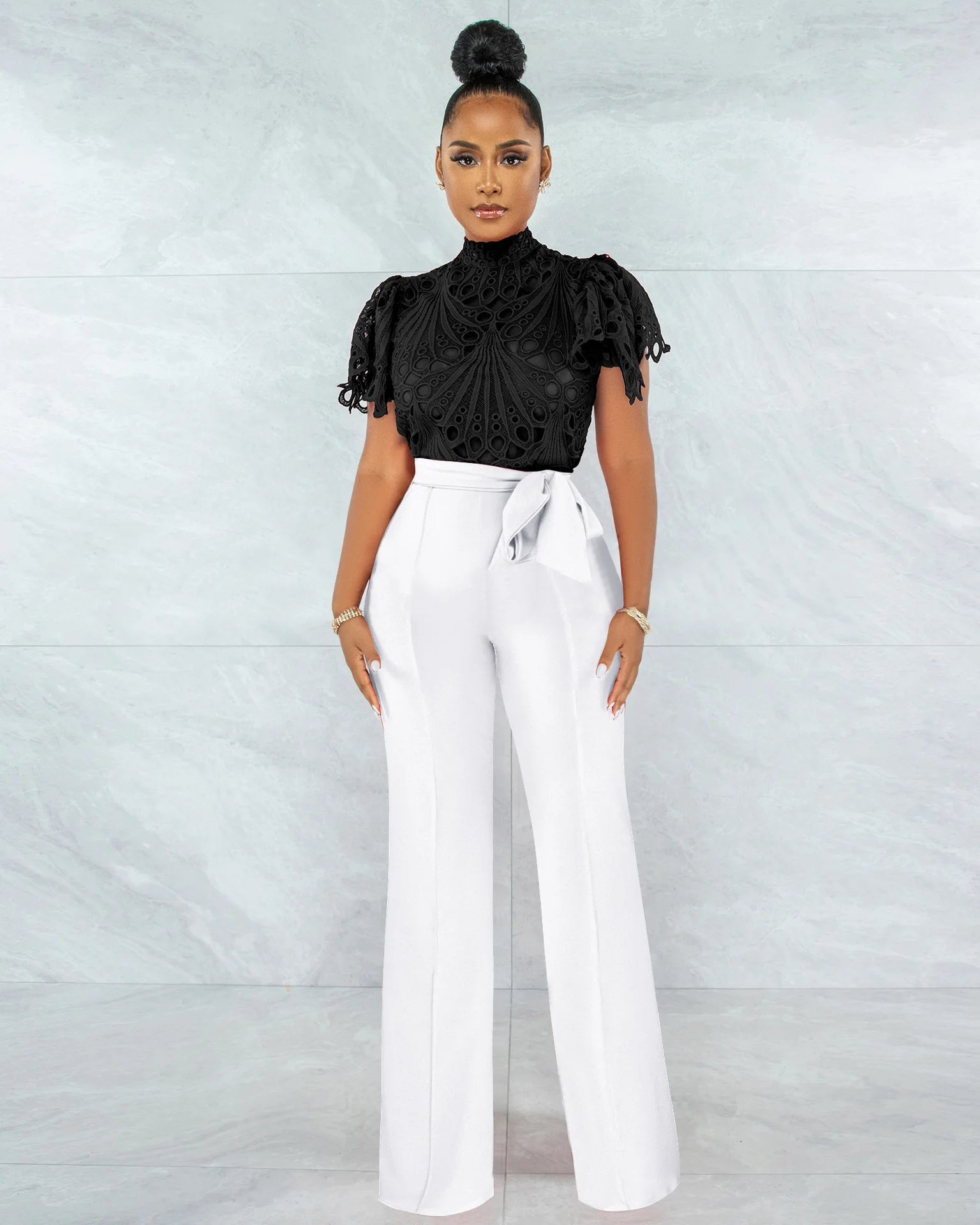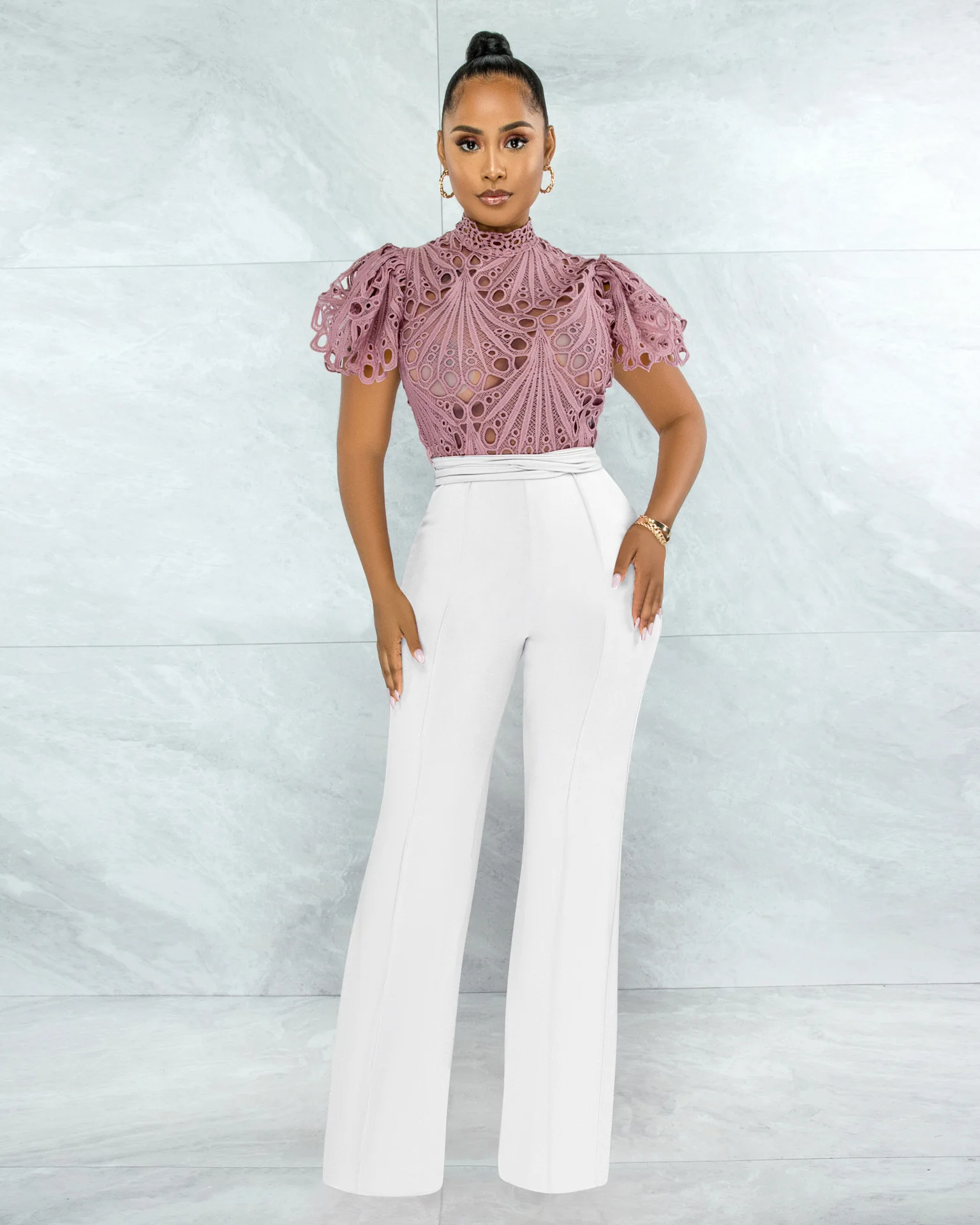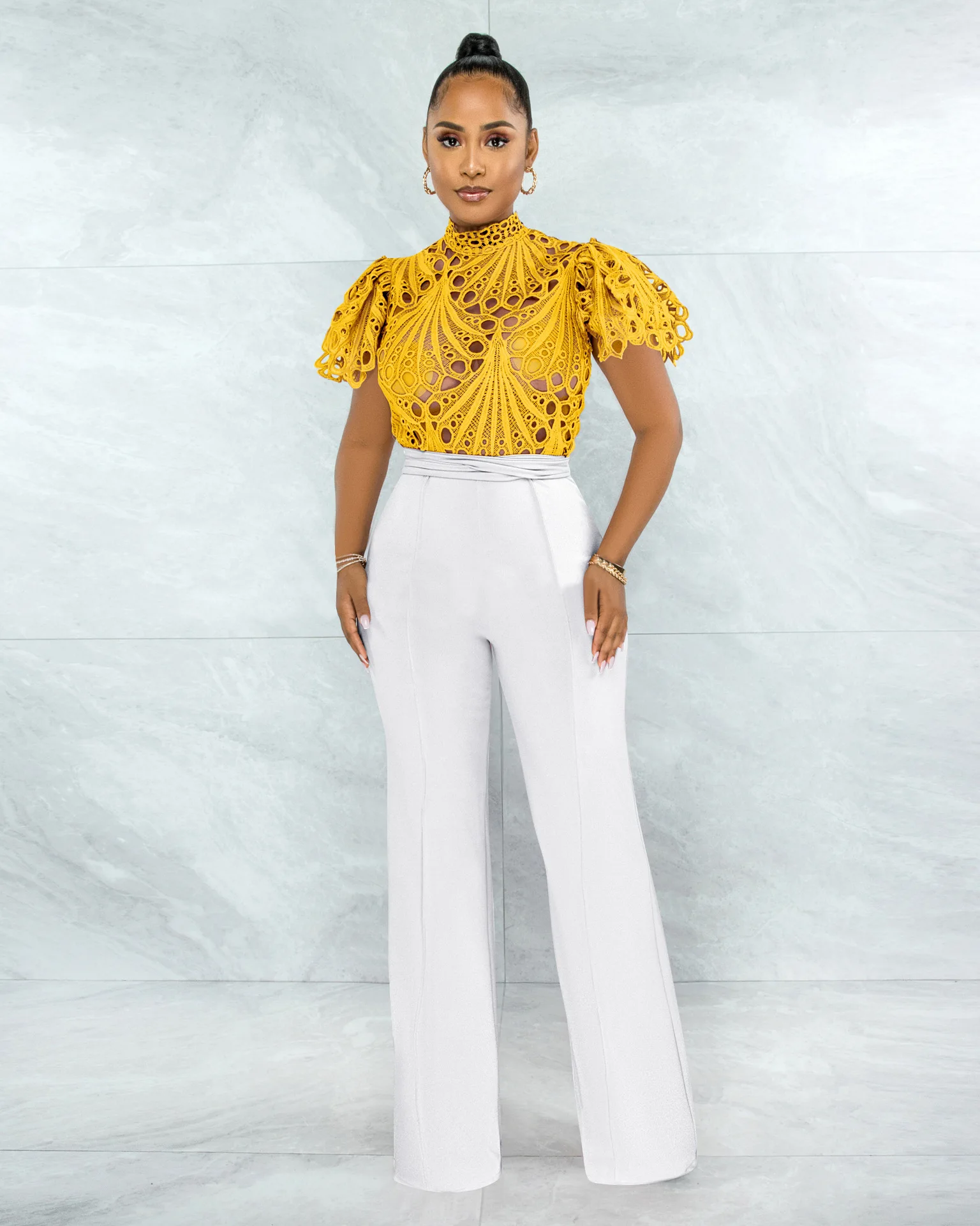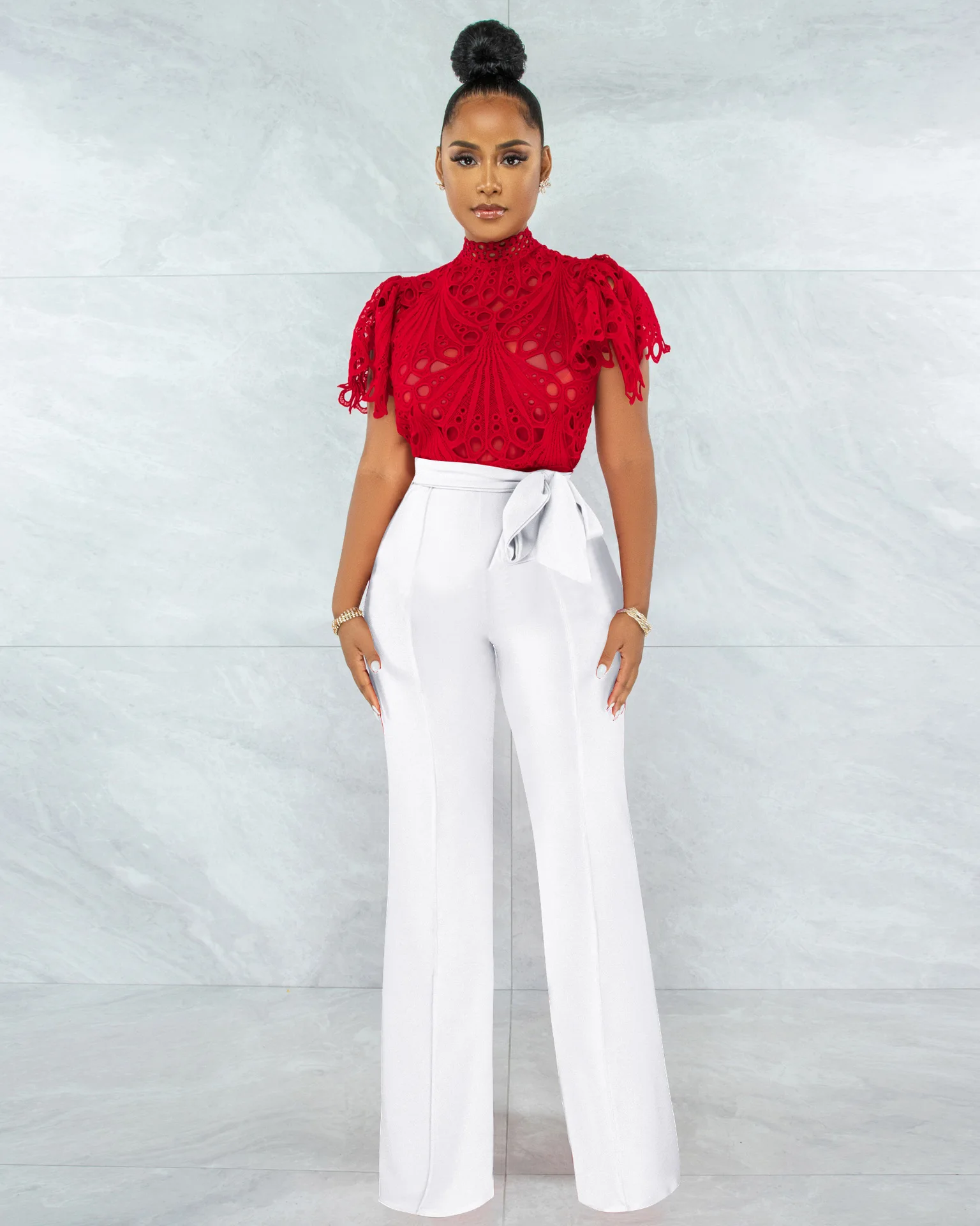 CM.YAYA Women Lace Crochet Hollow Out Short Sleeve Shirt Blouse Tops 2022 Summer Elegant Party Club Top