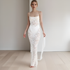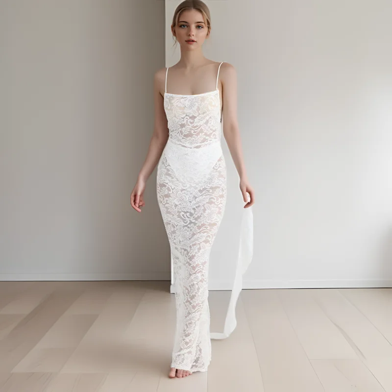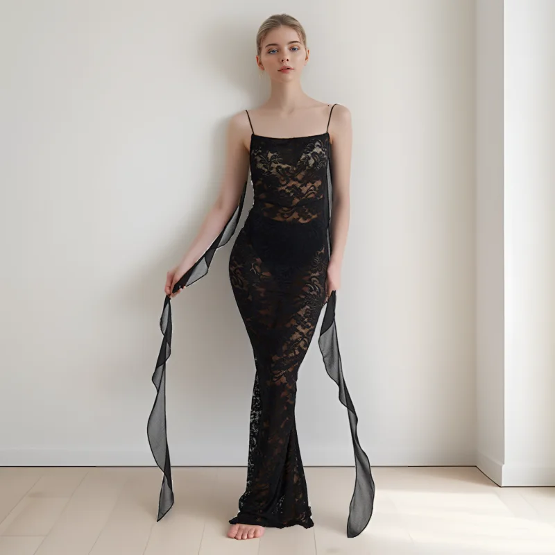CM.YAYA Women lace Sleeveless Strap Floral Backless Sleeveless Sexy Party Bodycon Midi Maxi Long Dress 2025 Dresses Vestidos