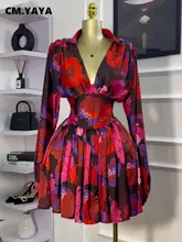 CM.YAYA Women Lantern Half Sleeve Embriodery Patchwork Button Up A-line Dress 2025 Birthday Vacation Sexy Party Elegant Dresses